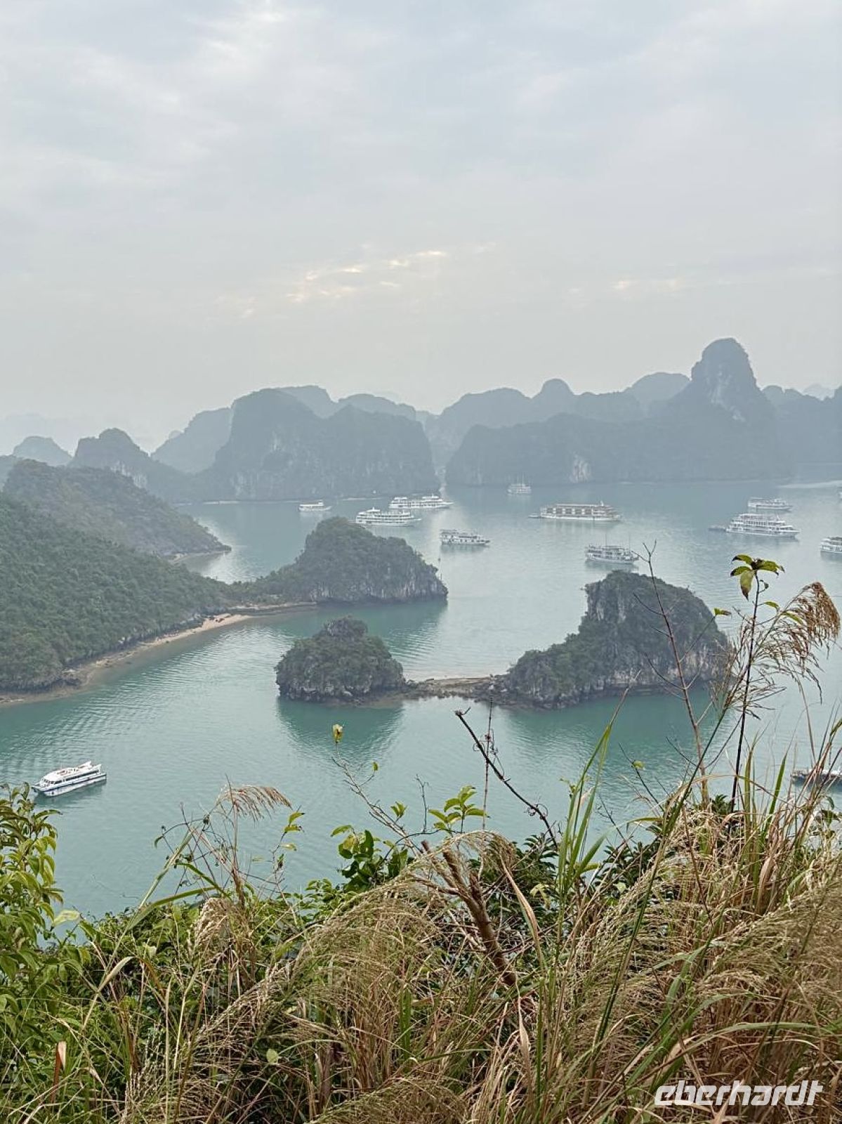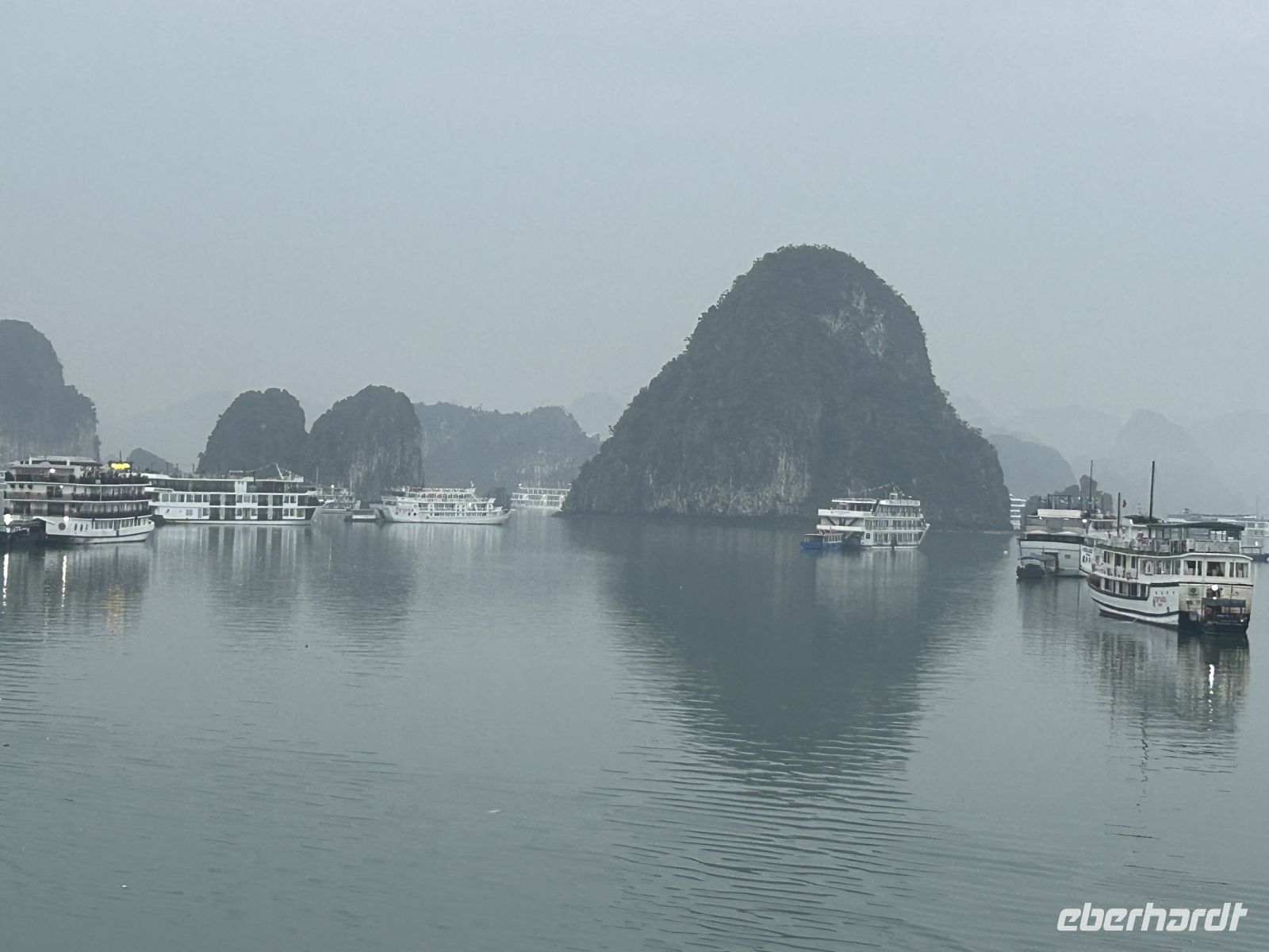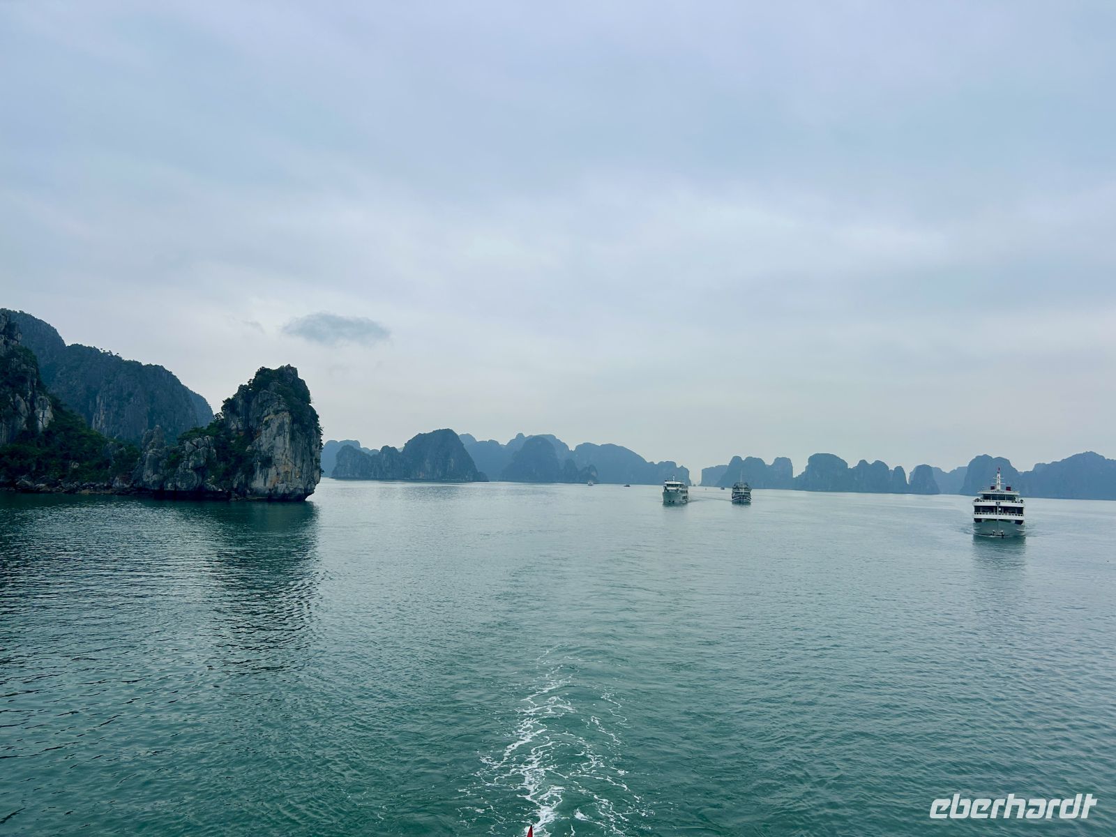 Früh am Morgen brechen wir auf – noch liegt ein leichter Nieselregen über Hanoi, die Stadt wirkt geheimnisvoll im Dunst. Unsere Reise führt uns hinaus zur weltberühmten Halong-Bucht, einem UNESCO-Weltnaturerbe mit über 1.600 Kalksteinfelsen, die spektakulär aus dem smaragdgrünen Wasser ragen.