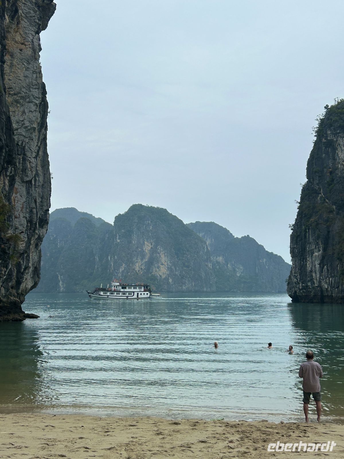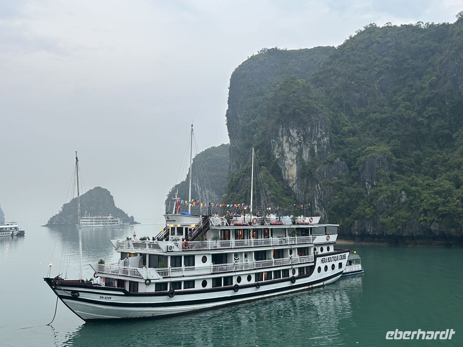 Der Morgen beginnt mit Tai Chi an Deck – eine ruhige, fast meditative Erfahrung inmitten dieser einzigartigen Landschaft. Nebel liegt über dem Wasser, als würde die Bucht noch schlafen.