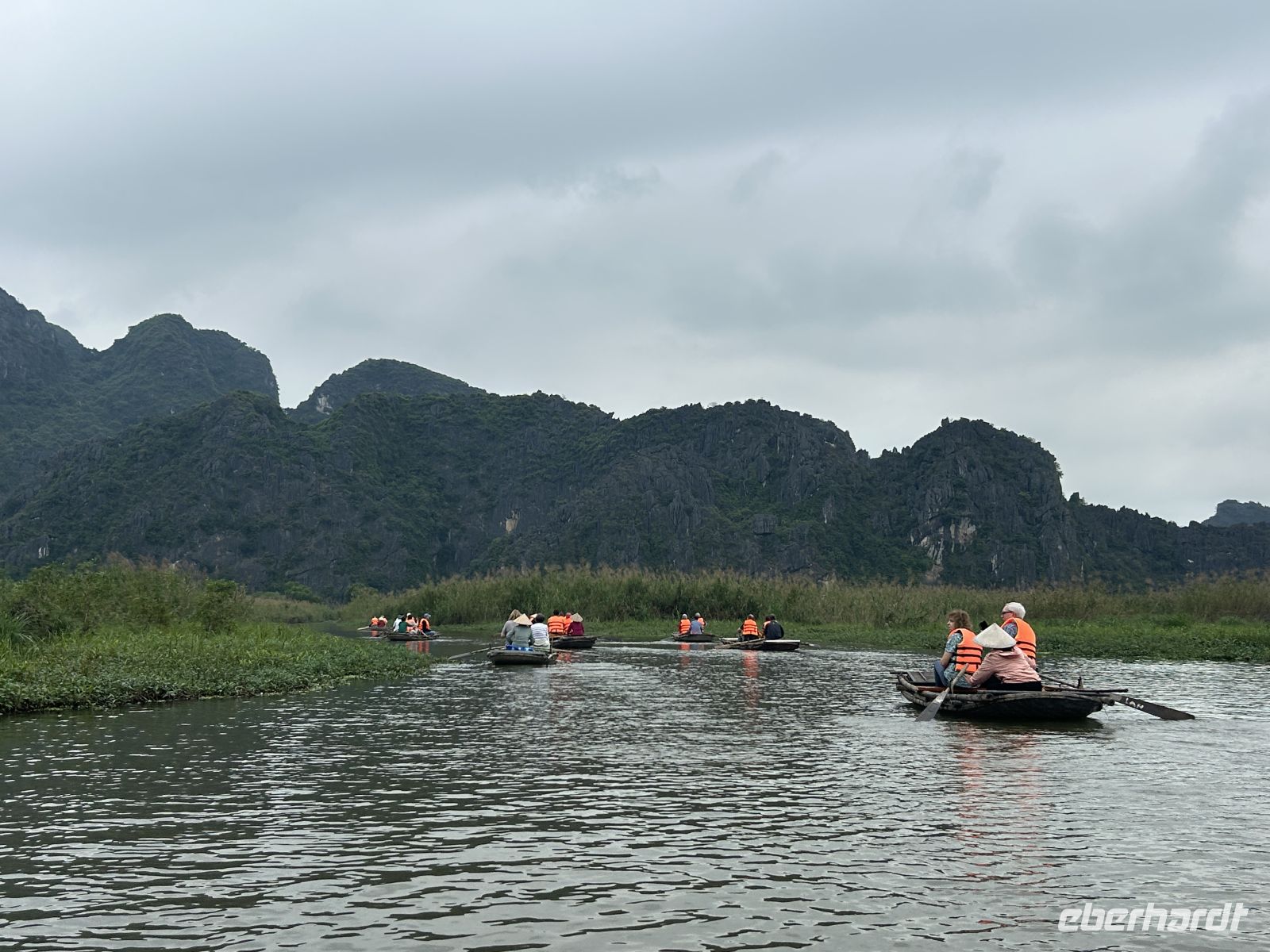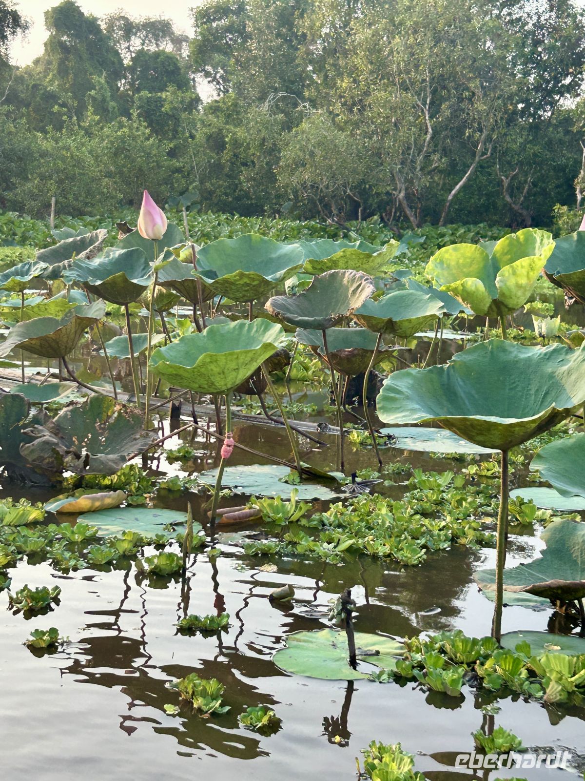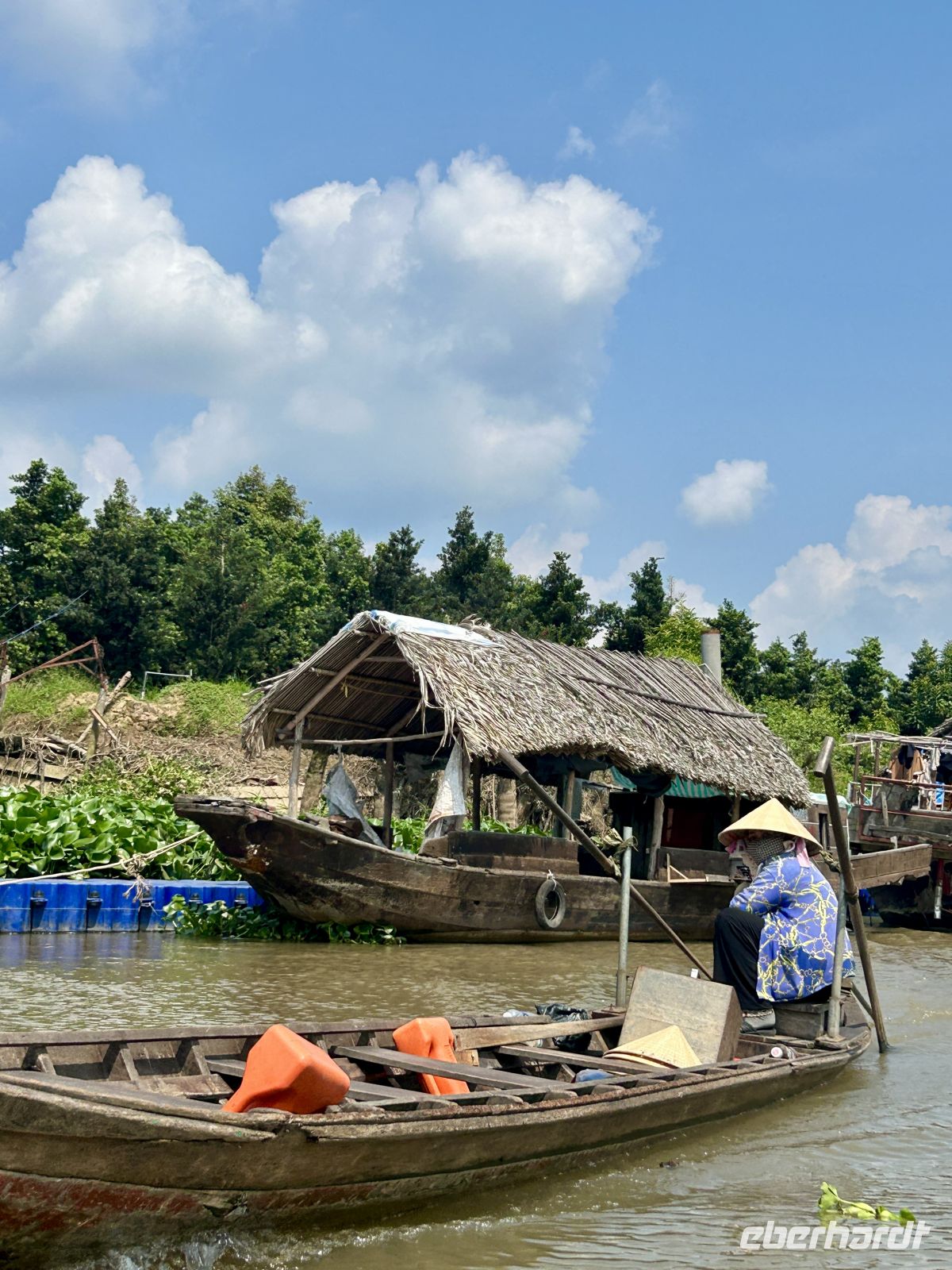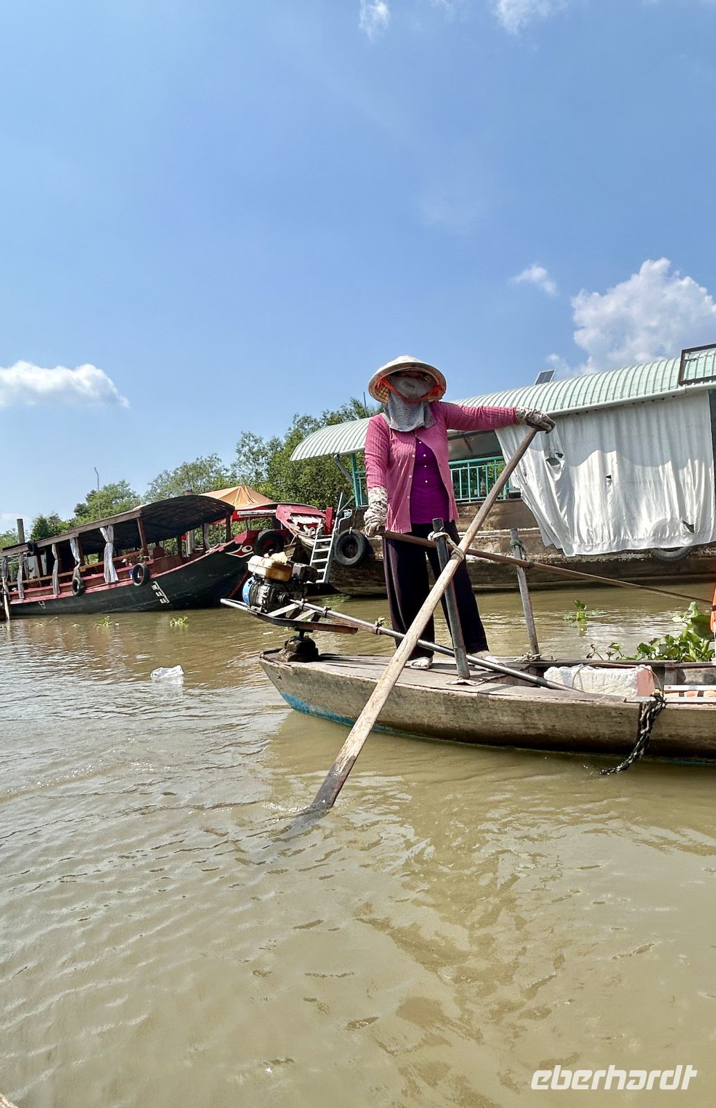 Ein weiteres Highlight ist die gemächliche Fahrt mit kleinen Ruder-Sampans durch enge Wasserwege. Umgeben von dichter Vegetation fühlen wir uns wie in einer anderen Welt.