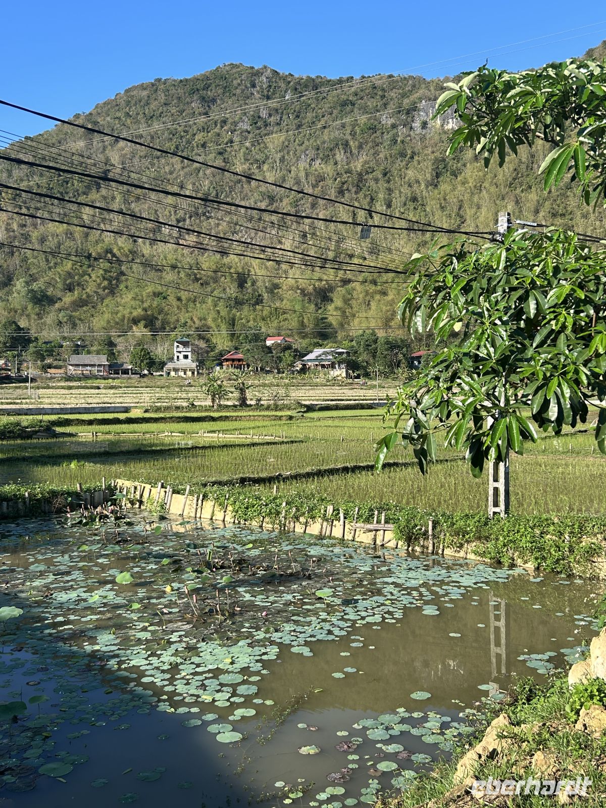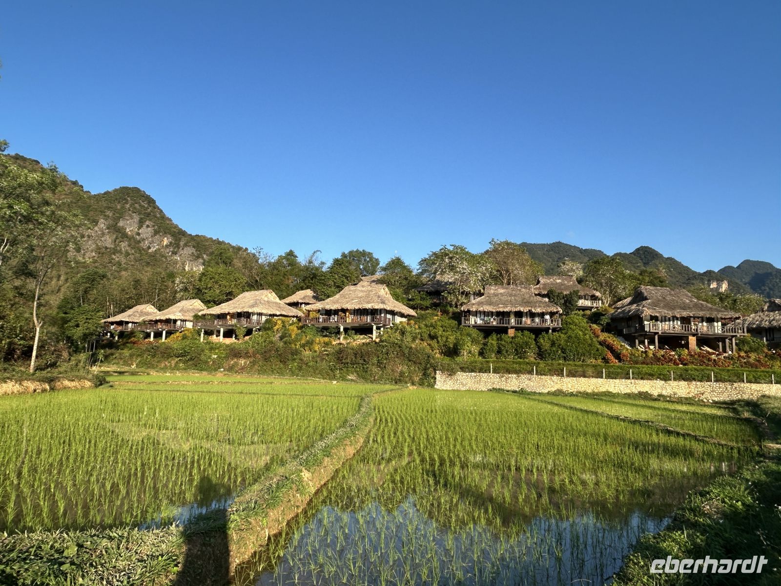 Nach dem Check-in in unserer wunderschönen Mai Chau EcoLodge bleibt Zeit zum Entspannen, bevor wir am Nachmittag zu einem Dorfspaziergang aufbrechen. Wir besuchen ein traditionelles Stelzenhaus und erfahren mehr über den Reisanbau – die Grundlage des Lebens in dieser Region.