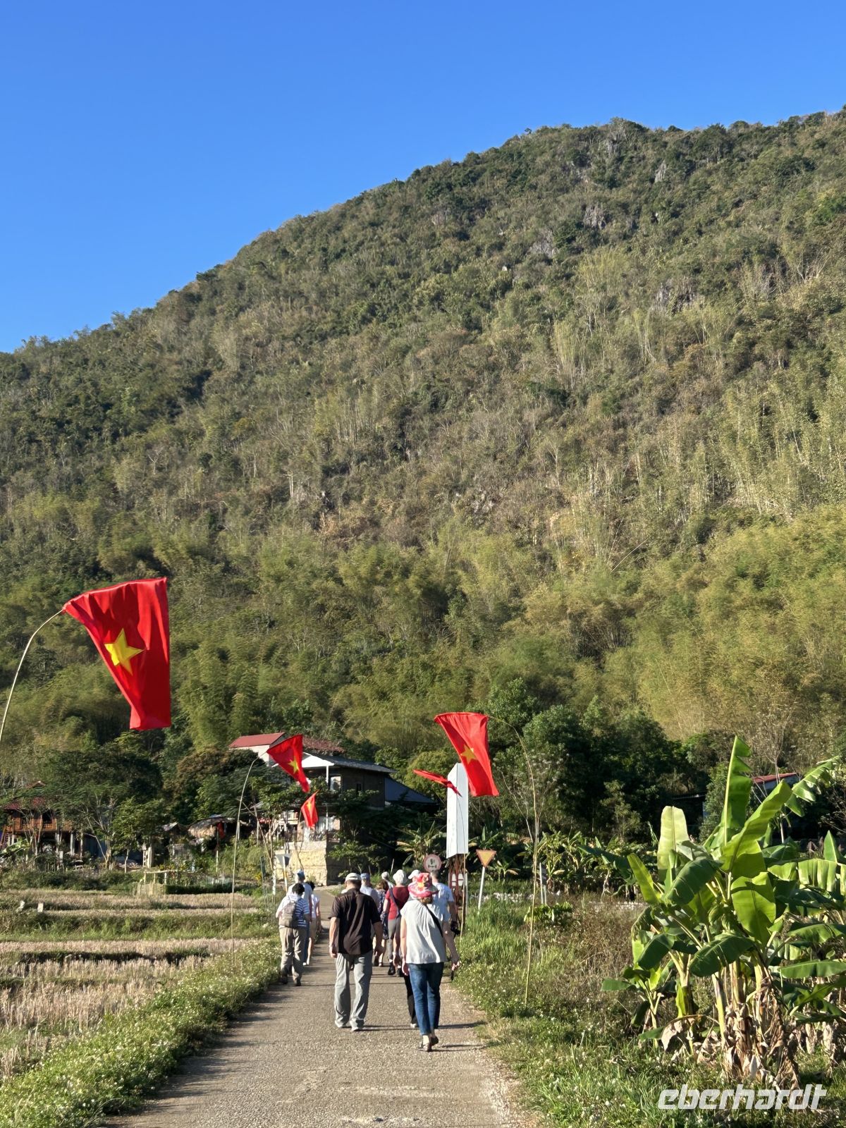 Unsere Reise führt uns weiter ins grüne Bergland Nordvietnams. Die Landschaft verändert sich – sanfte Hügel, dichte Vegetation und kleine Dörfer prägen das Bild.