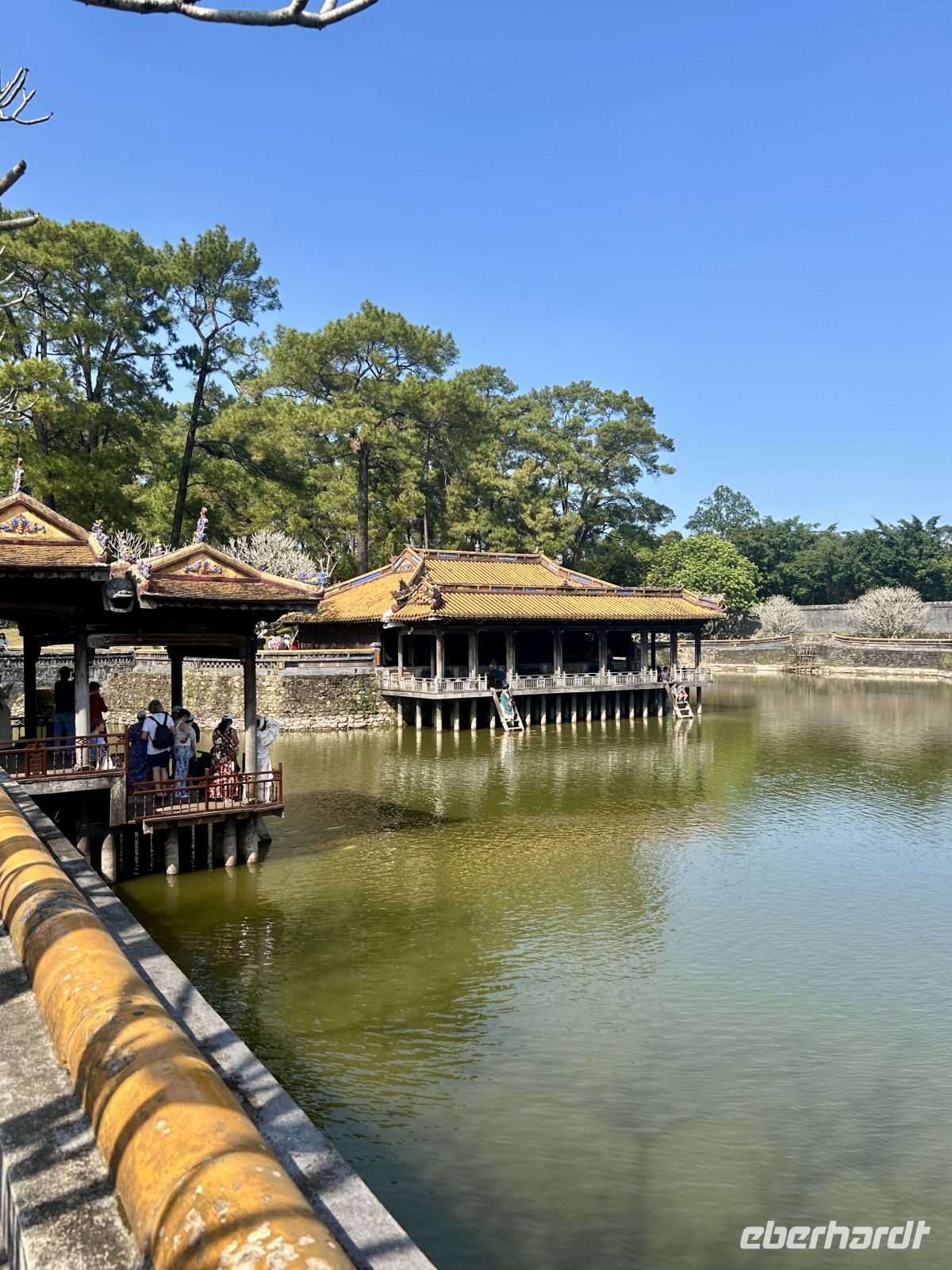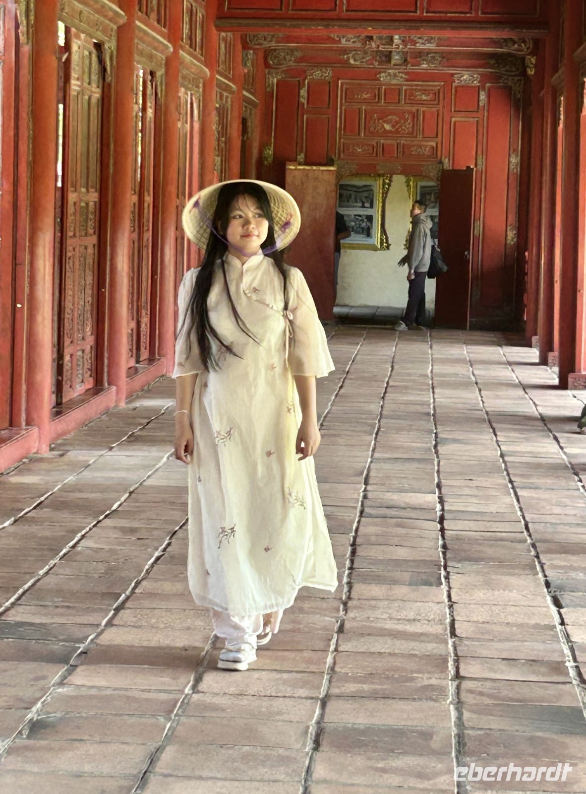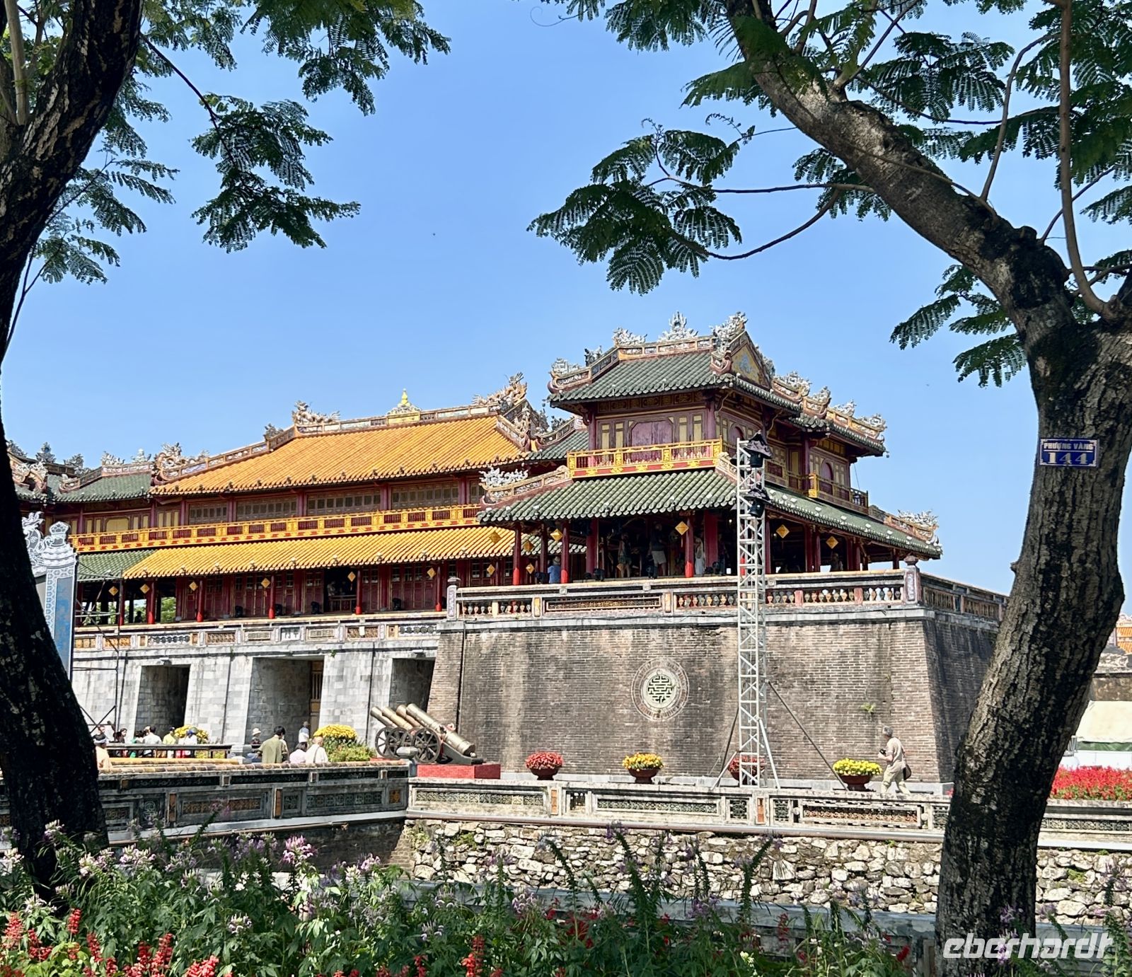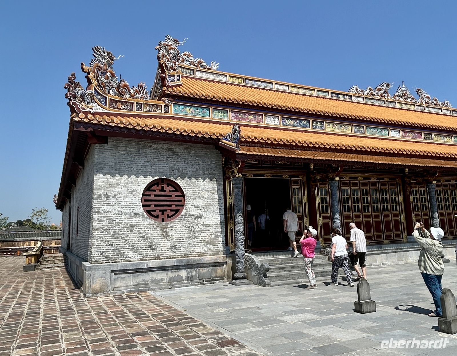 Dann betreten wir die gewaltige Zitadelle von Hue. Diese ehemalige Kaiserresidenz wurde im frühen 19. Jahrhundert unter der Nguyen-Dynastie erbaut und ist von einer mächtigen Mauer umgeben. Innerhalb der Anlage liegt die Verbotene Purpurstadt – einst ausschließlich dem Kaiser und seiner Familie vorbehalten. Viele Teile wurden im Vietnamkrieg zerstört, doch bis heute spürt man die einstige Pracht. Eifrig wird auch restauriert und man ahnt, in welchem Prunk die Kaiser und ihre zahlreichen Konkubinen hier gelebt haben.