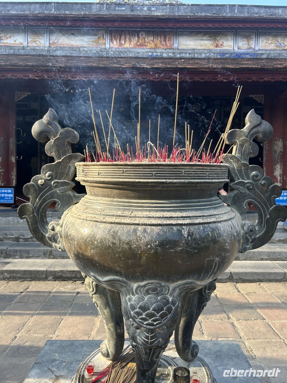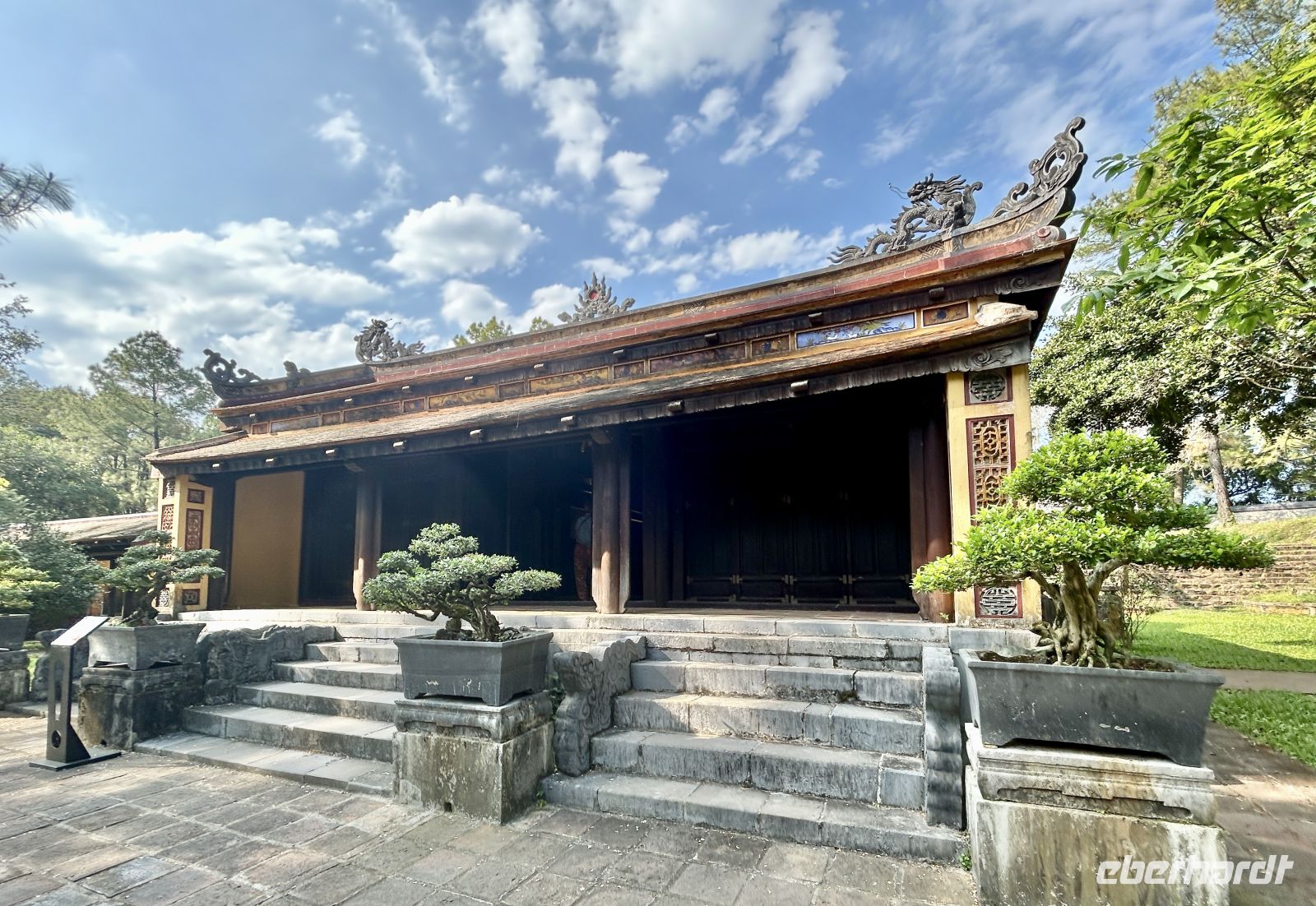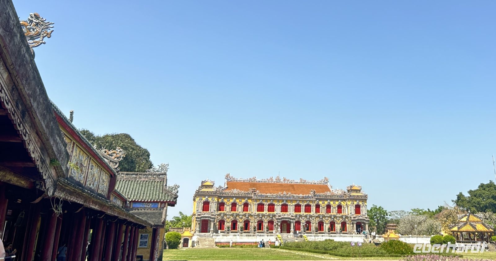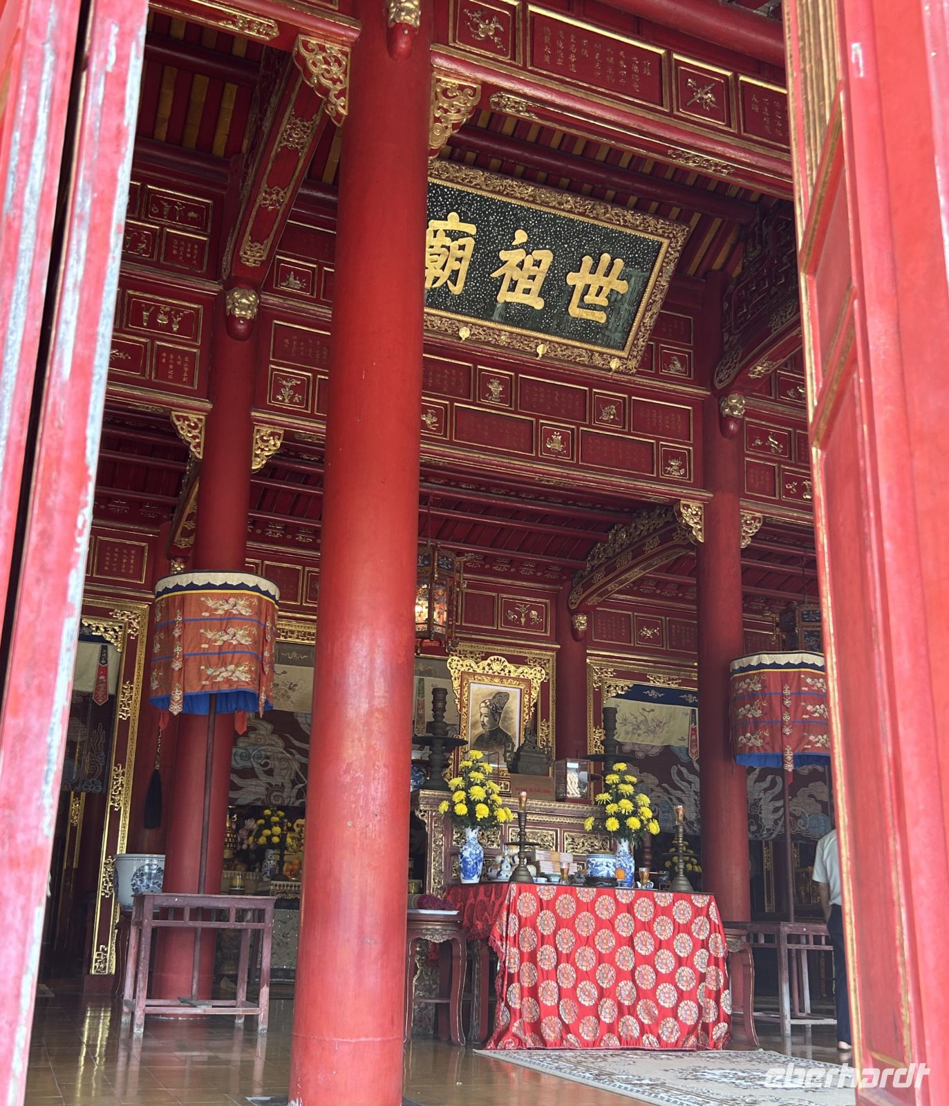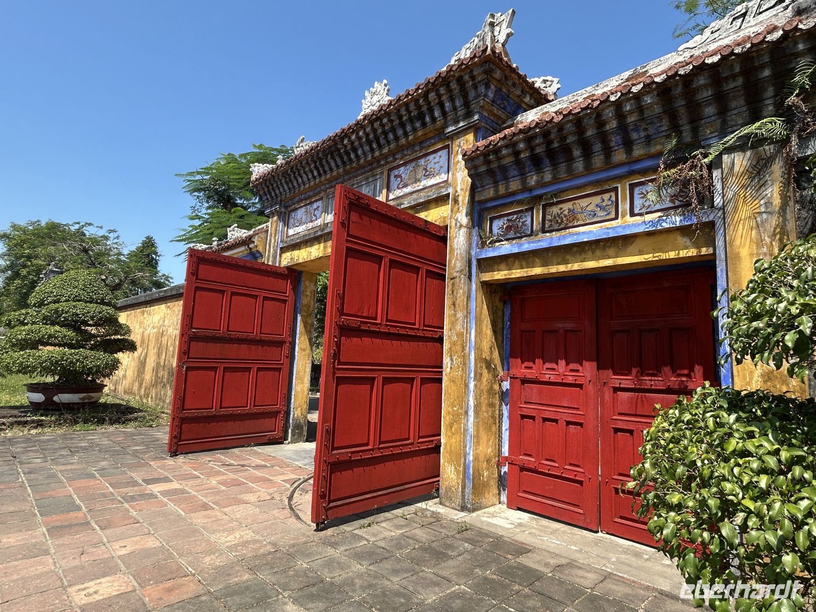 Dann betreten wir die gewaltige Zitadelle von Hue. Diese ehemalige Kaiserresidenz wurde im frühen 19. Jahrhundert unter der Nguyen-Dynastie erbaut und ist von einer mächtigen Mauer umgeben. Innerhalb der Anlage liegt die Verbotene Purpurstadt – einst ausschließlich dem Kaiser und seiner Familie vorbehalten. Viele Teile wurden im Vietnamkrieg zerstört, doch bis heute spürt man die einstige Pracht. Eifrig wird auch restauriert und man ahnt, in welchem Prunk die Kaiser und ihre zahlreichen Konkubinen hier gelebt haben.
