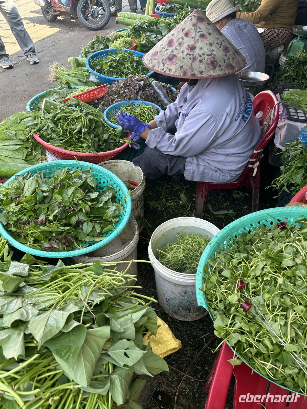 Am Morgen besuchen wir einen der berühmten schwimmenden Märkte des Mekong-Deltas. Händler verkaufen ihre Waren direkt von Boot zu Boot – ein faszinierender Einblick in eine jahrhundertealte Handelsform.