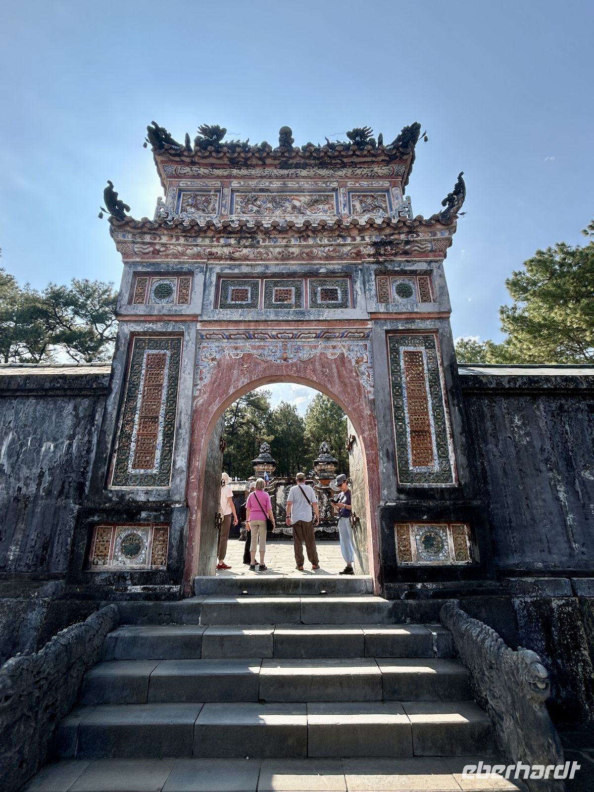 Am Nachmittag besuchen wir das Grab des Kaisers Tu Duc. Die Anlage ist eingebettet in eine ruhige Landschaft und vereint Architektur und Natur auf harmonische Weise. Viele Kaiser erbauten sich schon zu Lebzeiten ihr späteres Mausoleum und genossen die Pracht zeitweise.