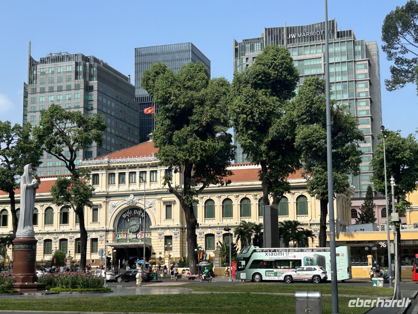 Weiter geht es zur lebhaften Markthalle – ein Ort voller Düfte, Geräusche und exotischer Speisen. Danach bestaunen wir das prachtvolle Hauptpostamt von Saigon, ein Meisterwerk aus der französischen Kolonialzeit. Gegenüber steht die berühmte Kathedrale Notre-Dame von Saigon – leider eingerüstet, aber dennoch beeindruckend.