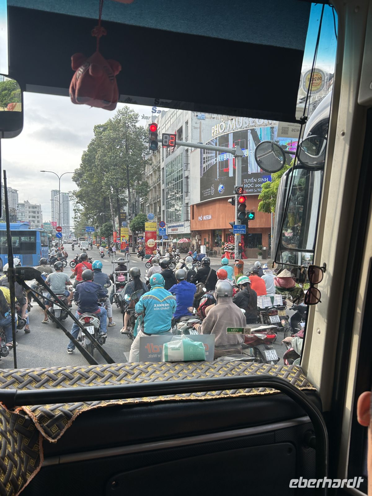 Am Ausgang begrüßt uns unser lokaler Guide Chau – ein erster persönlicher Kontakt mit Vietnam. Schon auf der Fahrt zum Hotel spüren wir: Wir sind angekommen. Die Luft ist warm, feucht, fast greifbar – mit rund 90 % Luftfeuchtigkeit legt sich das tropische Klima sofort auf unsere Haut.