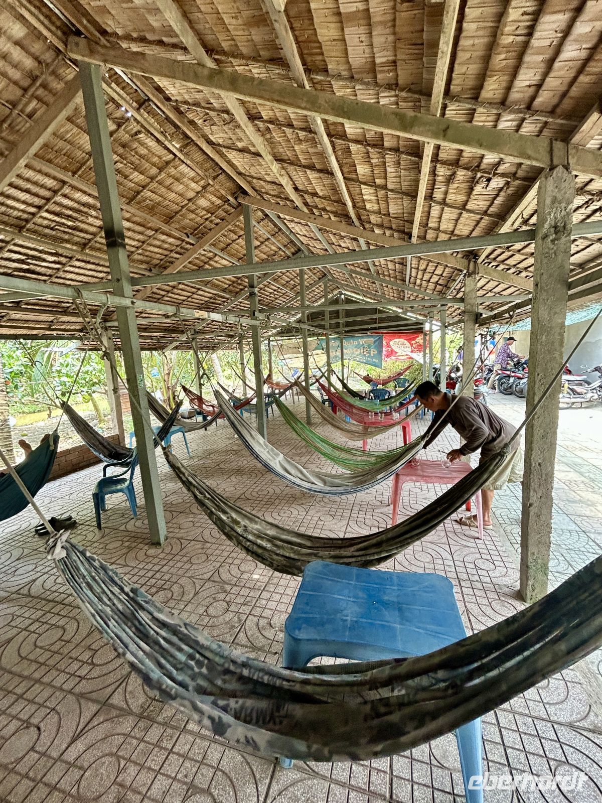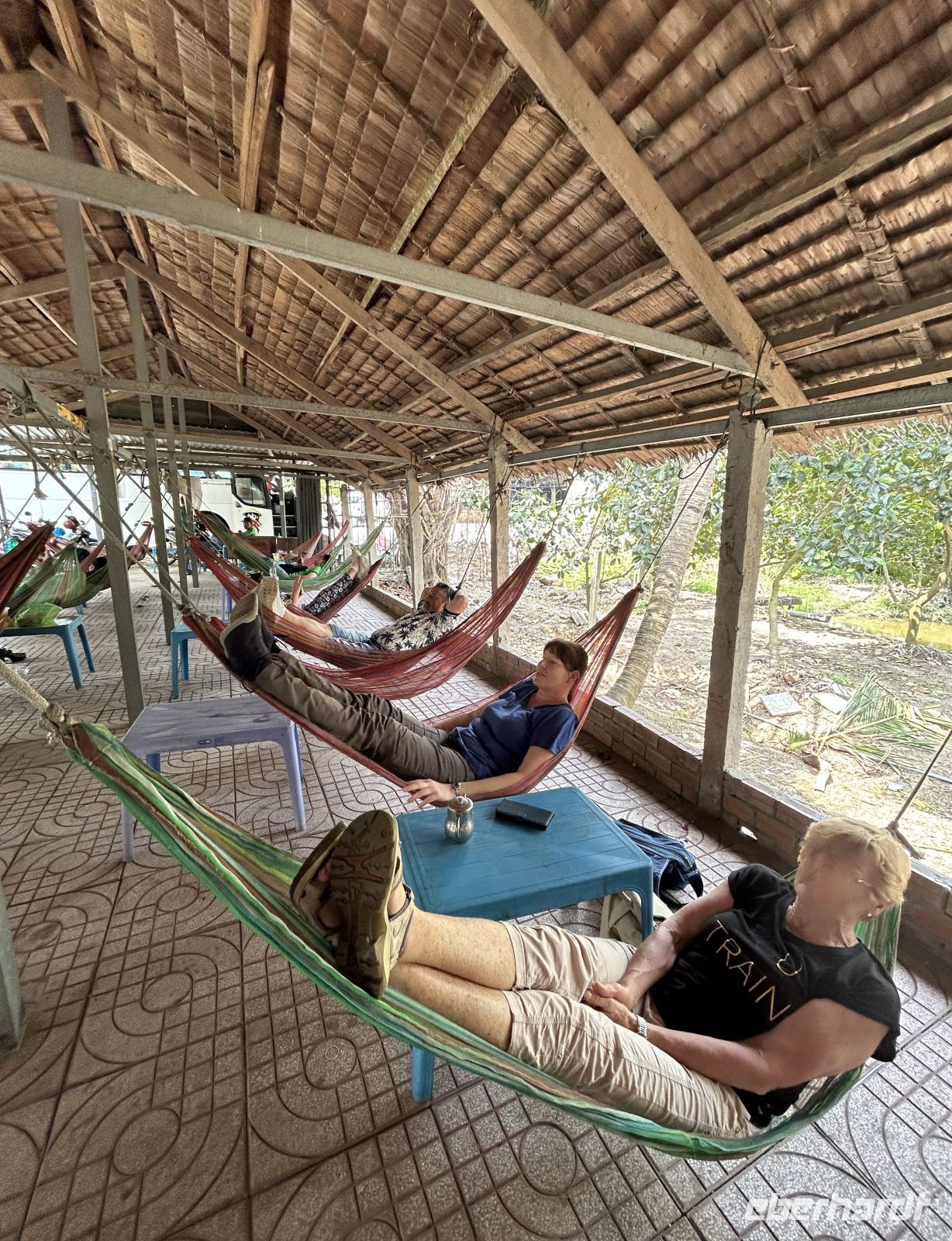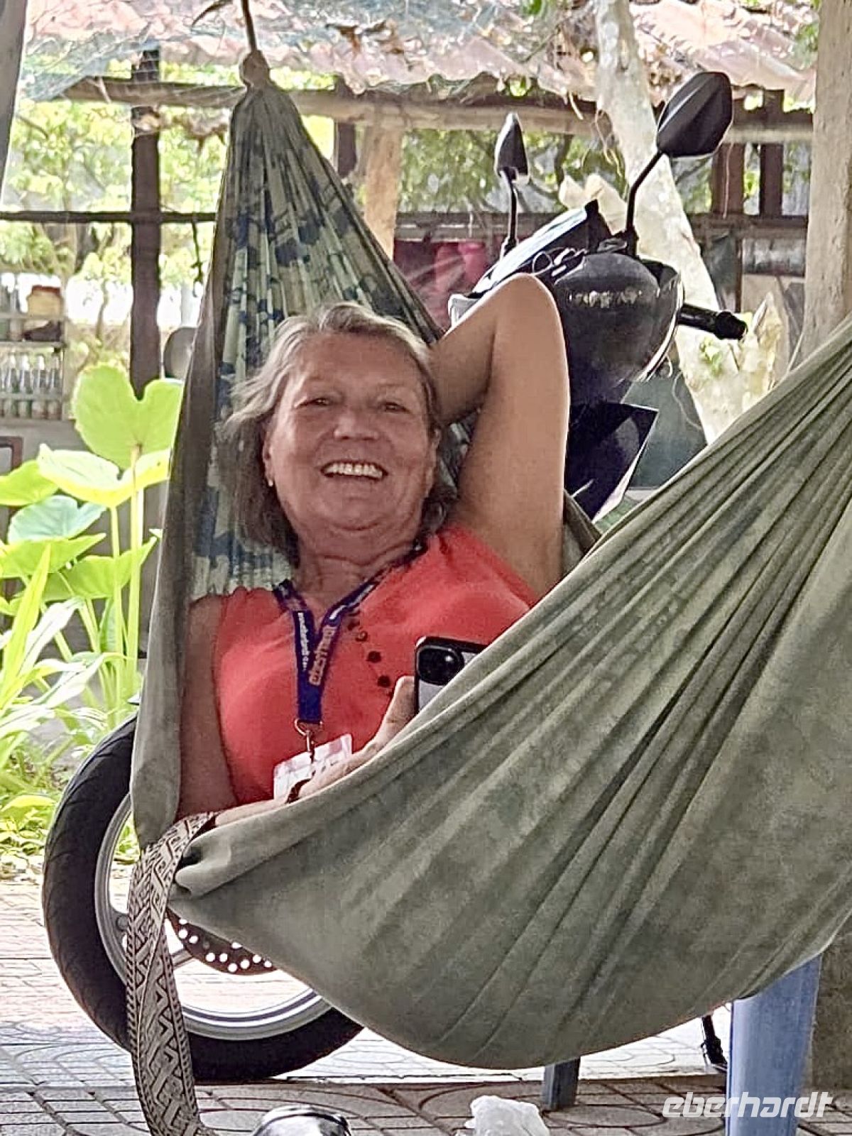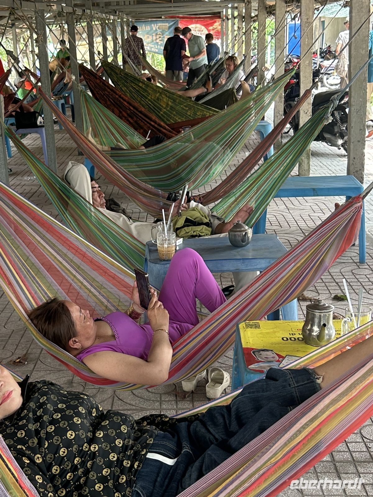 Später besuchen wir ein Hängemattencafé, wo wir entspannt Kaffee trinken und die Seele baumeln lassen.