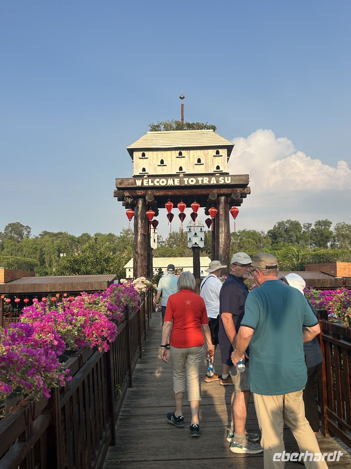 Am Nachmittag erreichen wir den Tra-Su-Nationalpark. Mit kleinen Booten gleiten wir durch eine grüne Wasserlandschaft, umgeben von Mangroven, Lotusblumen und Vogelstimmen – ein stiller, fast magischer Ort. Die Sonne versinkt am Horizont und taucht alles in ein besonders stimmungsvolles Licht.