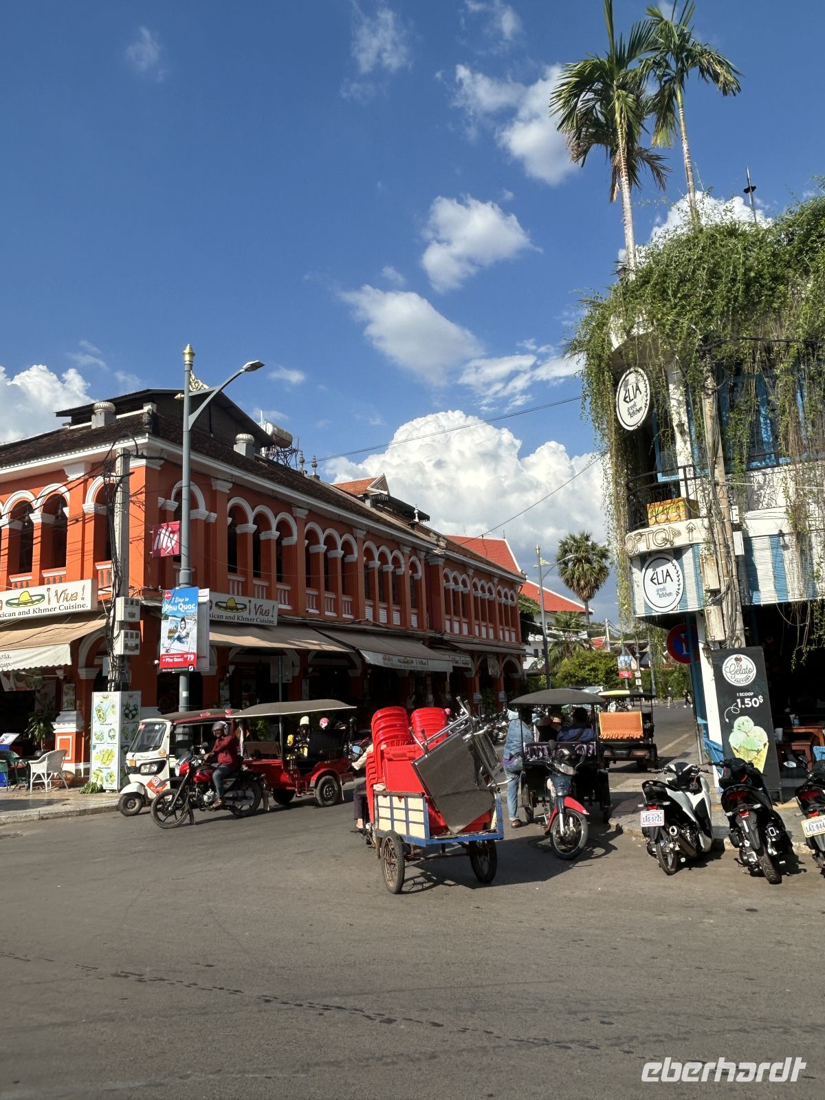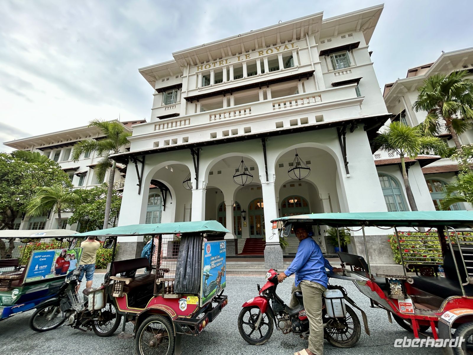 Am Nachmittag erkunden wir die Stadt per „Tuktuk“ und sehen den prunkvollen Bahnhof (mit nur einer täglichen Zugverbindung), das koloniale Postamt und das noble Raffles Hotel Le Royal in kolonialer Tradition.