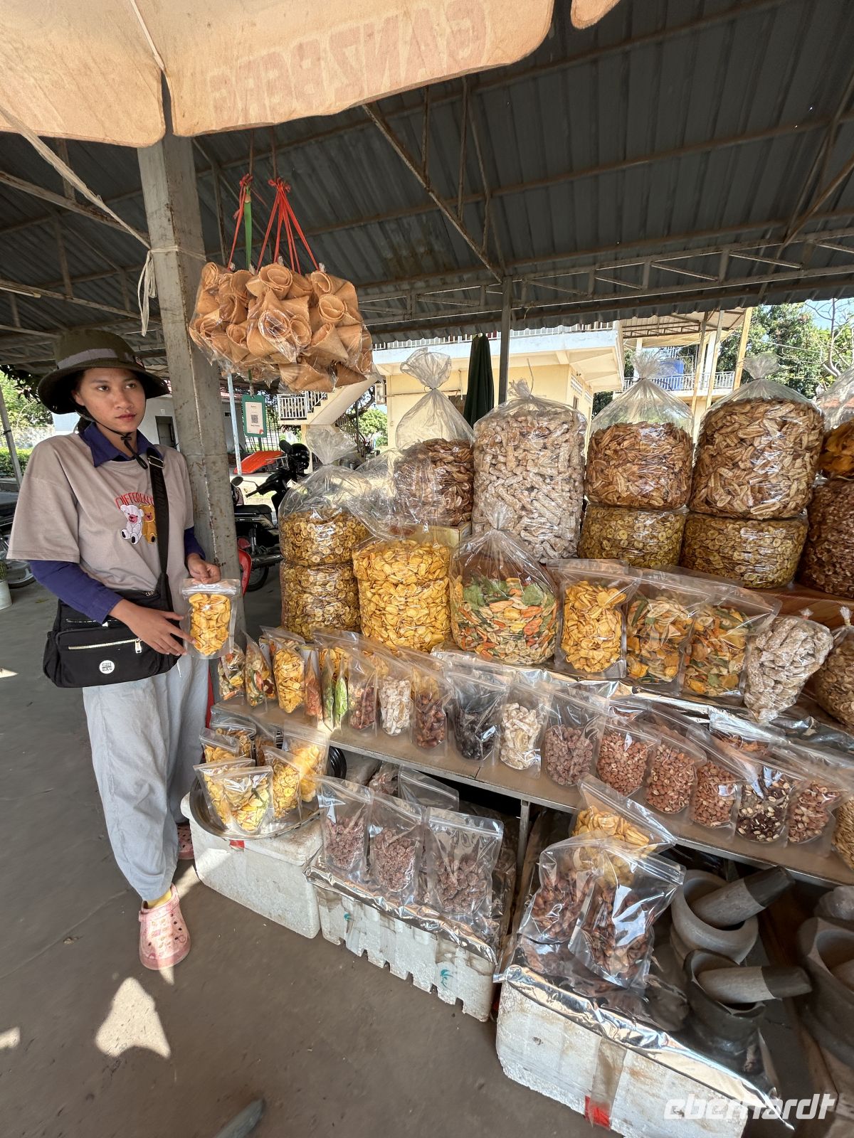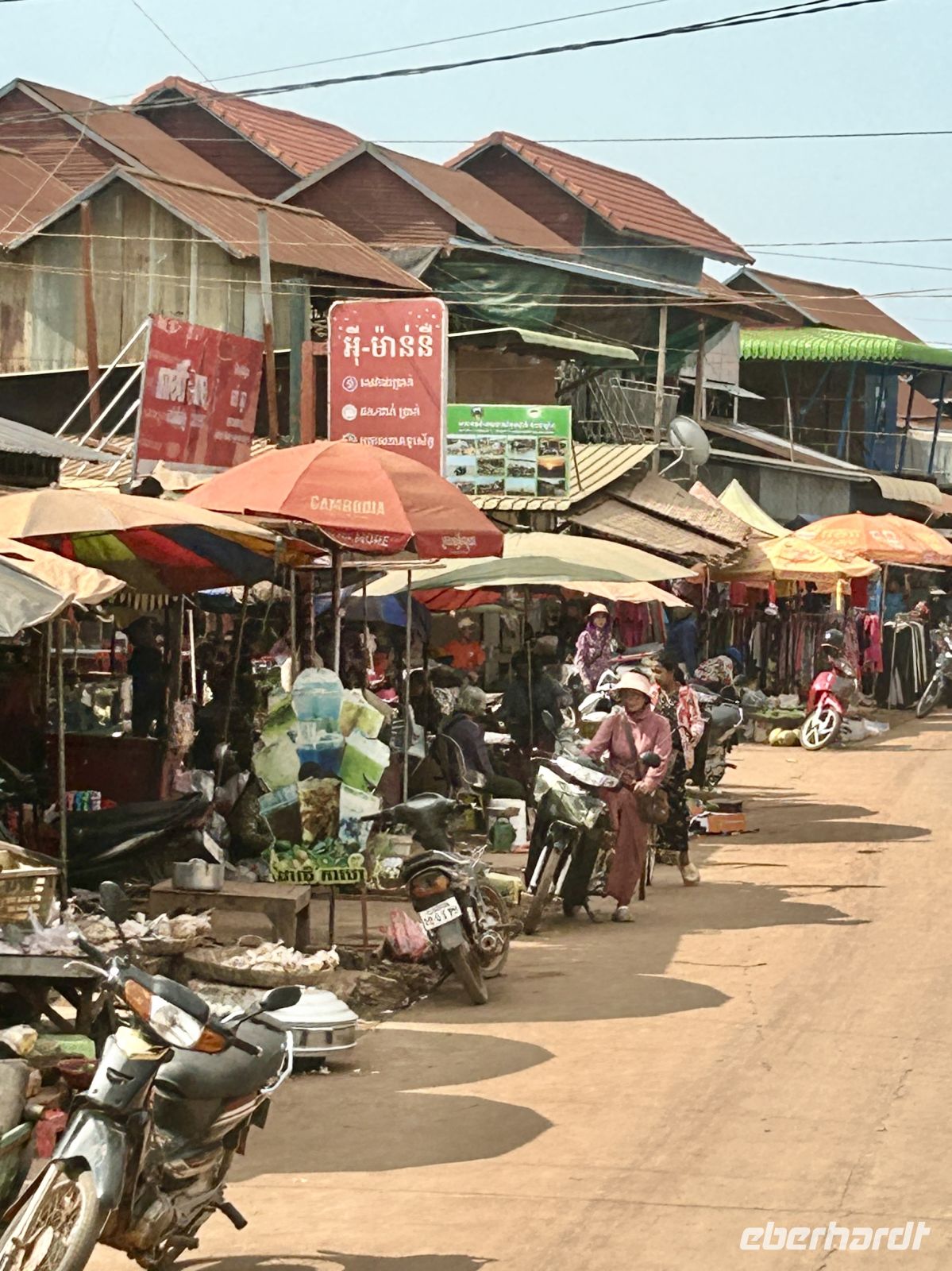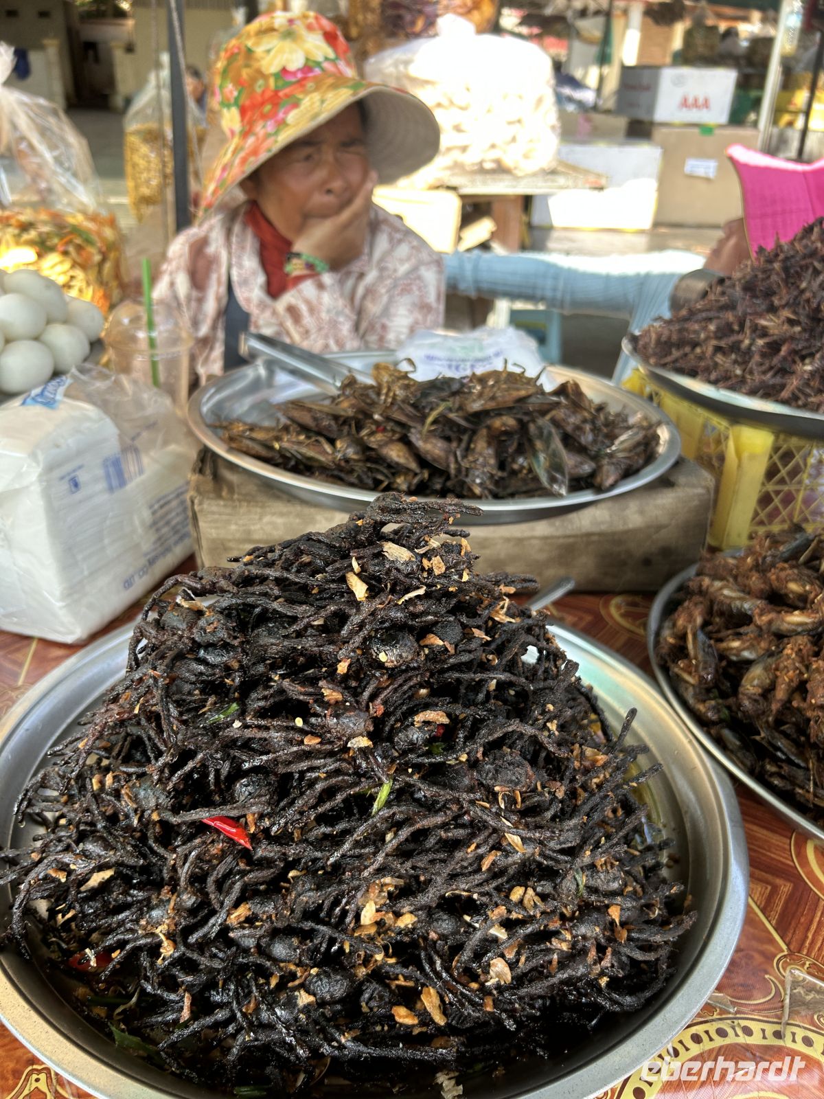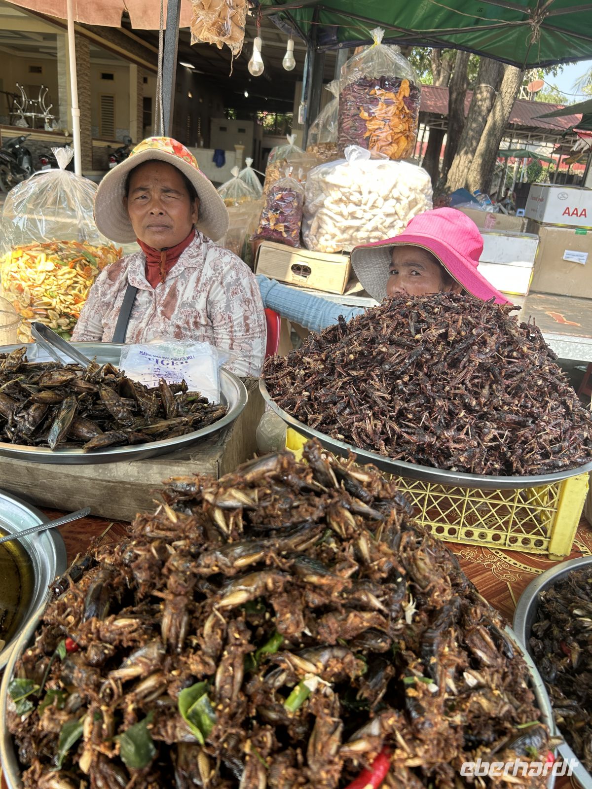 Unterwegs erleben wir das ländliche Kambodscha, mit Märkten, sehen exotische Snacks (frittierte Spinnen und Larven) und begegnen dem Alltag der Menschen.
