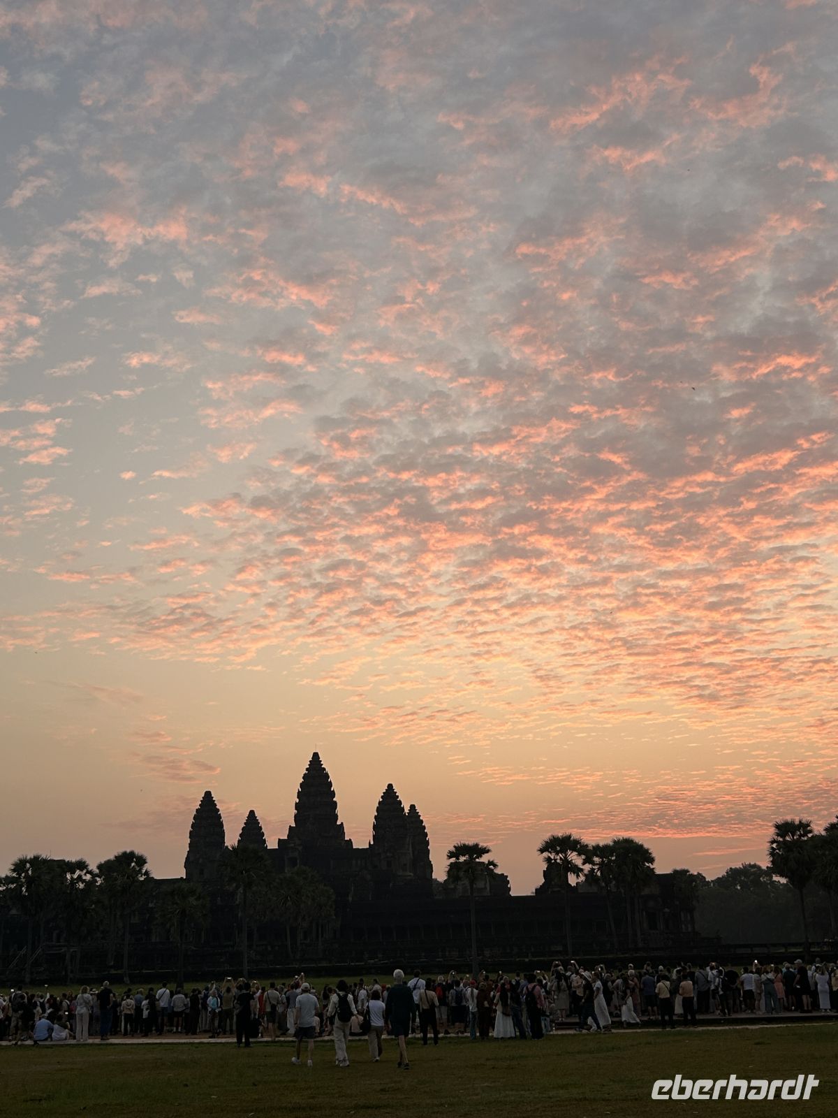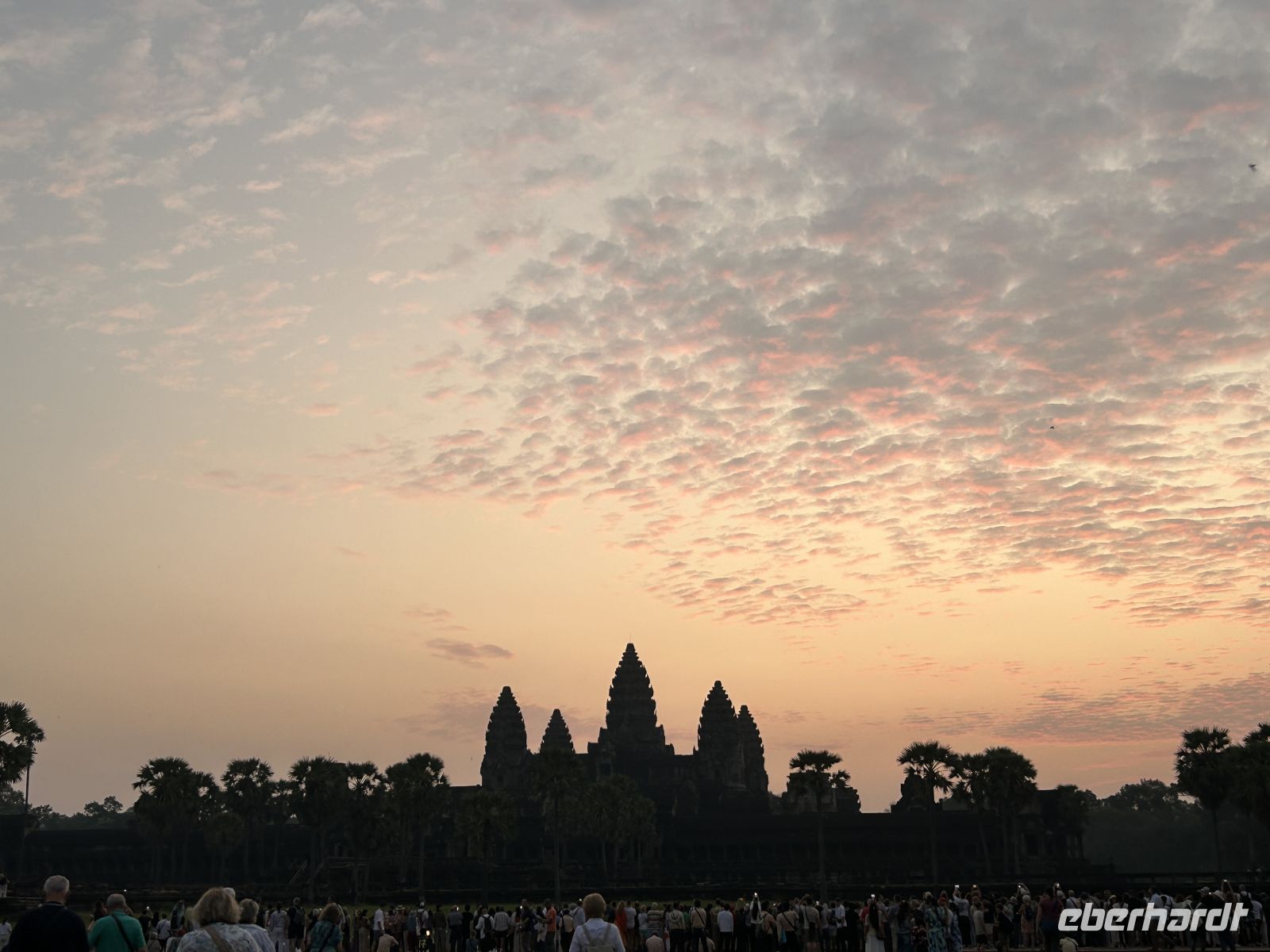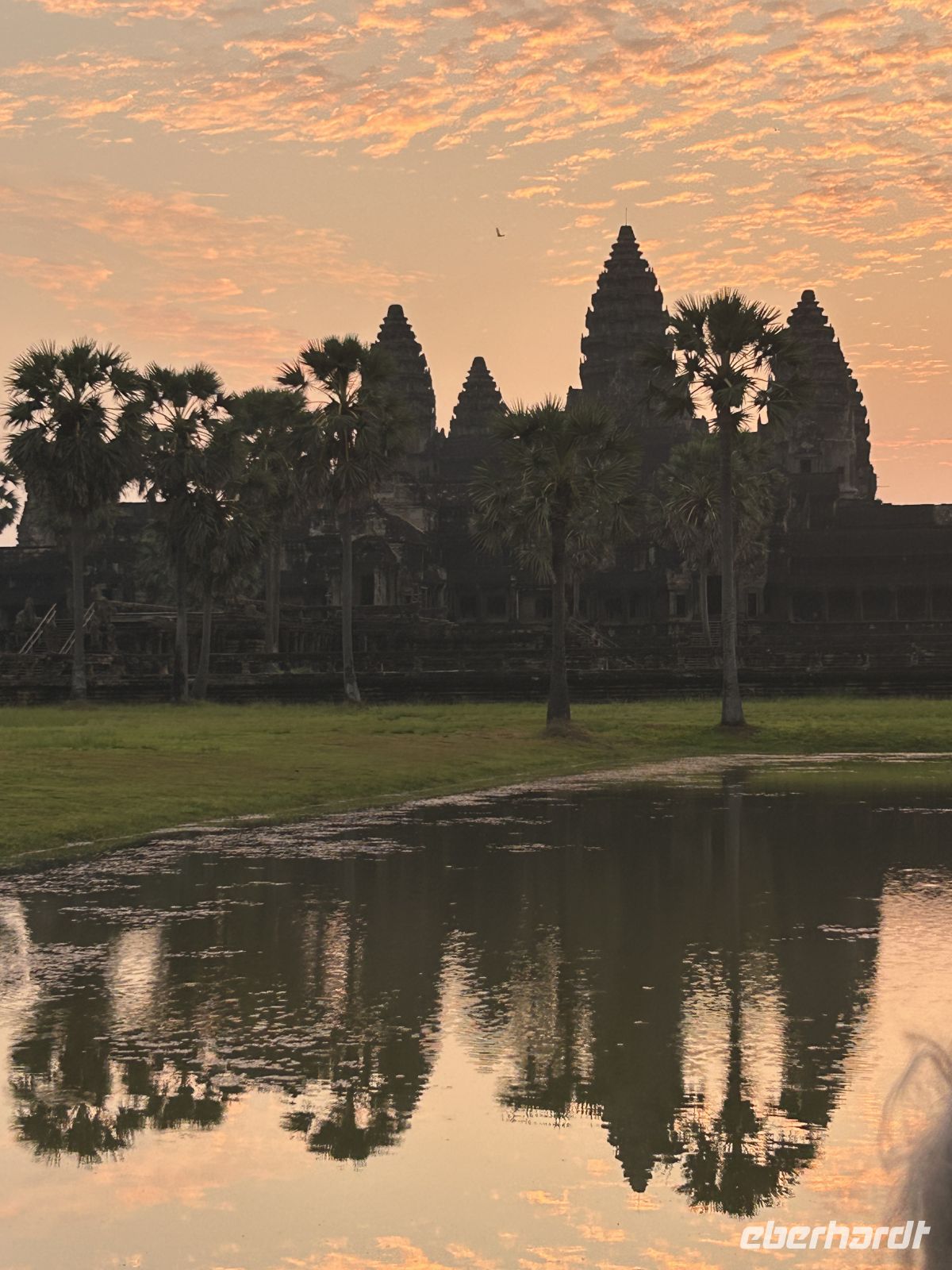Ein absoluter Höhepunkt unserer Reise: der Sonnenaufgang am Angkor Wat. Schon vor sechs Uhr rattern die ersten Tuktuks dorthin. Der Anblick der aufgehenden Sonne, die hinter der Tempelkulisse langsam in einen strahlenden Morgen übergeht - ein Weltwunder und wir durften heute teilhaben.