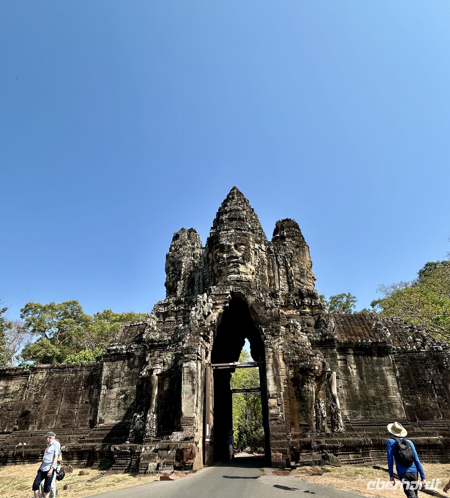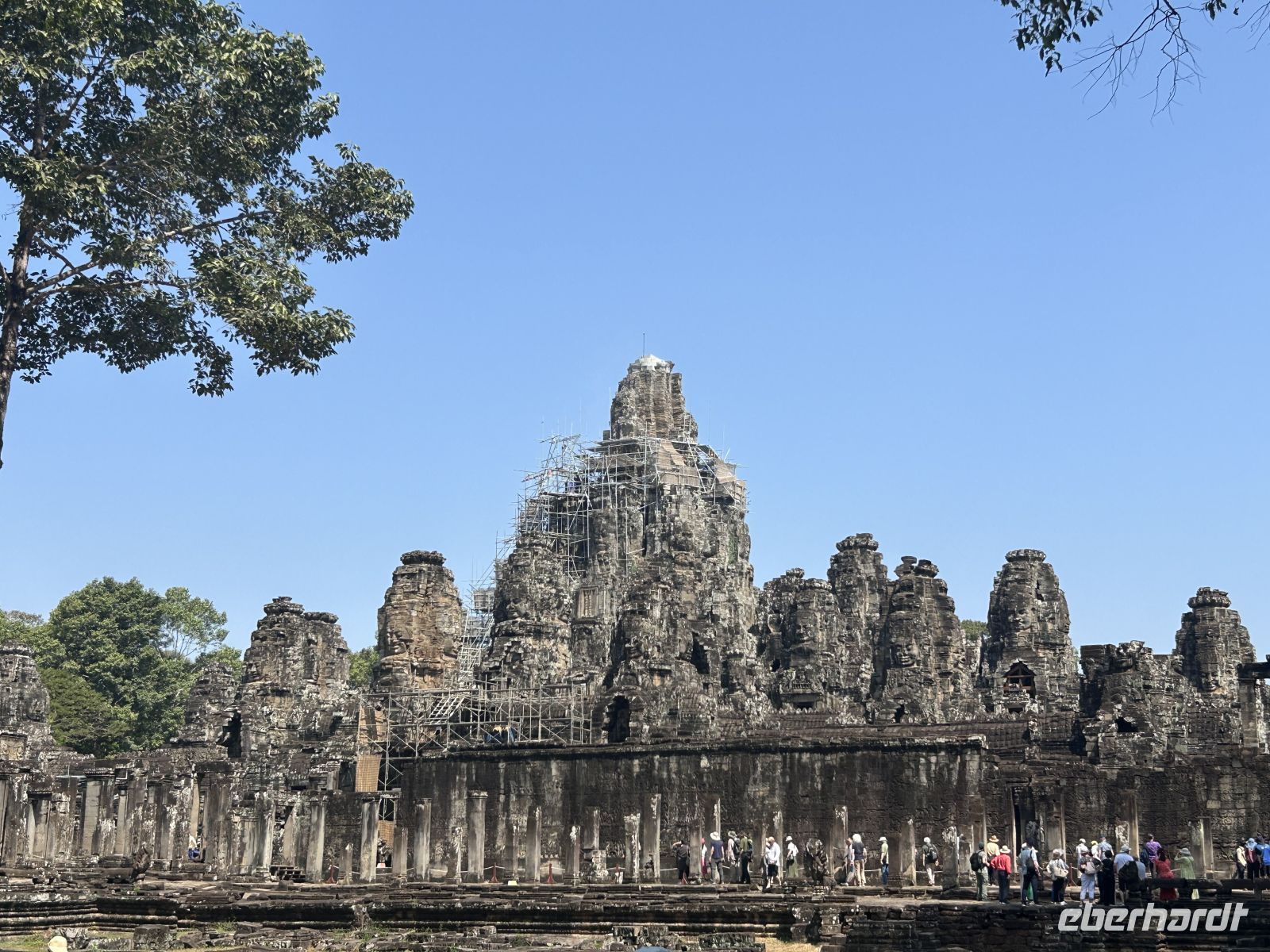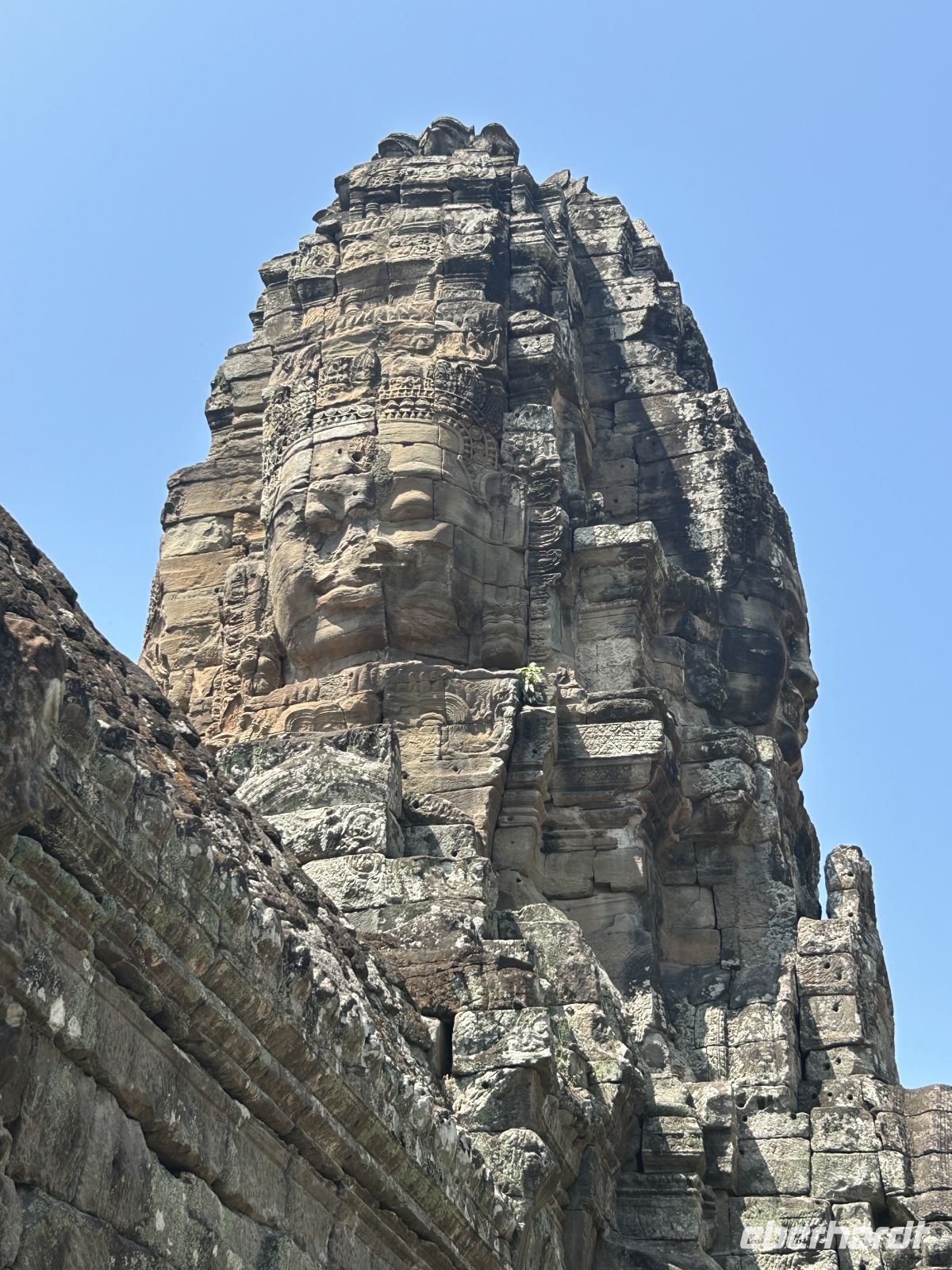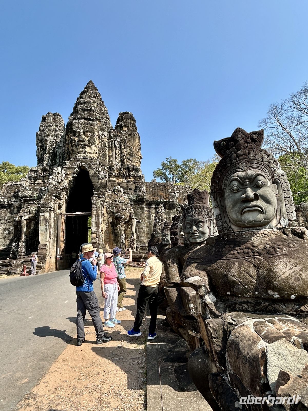 Natürlich erkunden wir auch Angkor Thom mit dem Südtor, der Elefantenterrasse und dem berühmten Bayon-Tempel, dessen lächelnde Gesichter uns überall begegnen. Vor 800 Jahren hatte sich Gottkönig Jayavarman VII dieses monumentale Denkmal mit 54 Türmen errichten lassen. Faszinierend, wie uns diese Gesichter aus allen Richtungen anschauen.