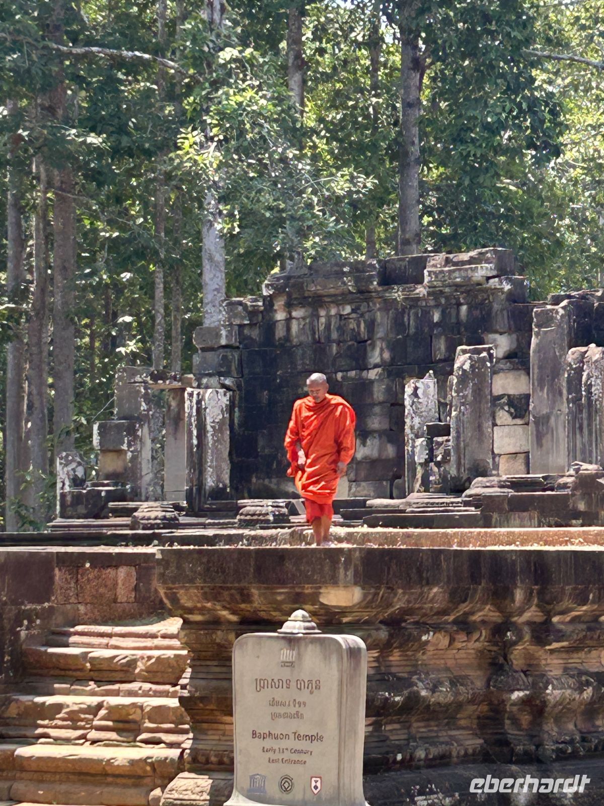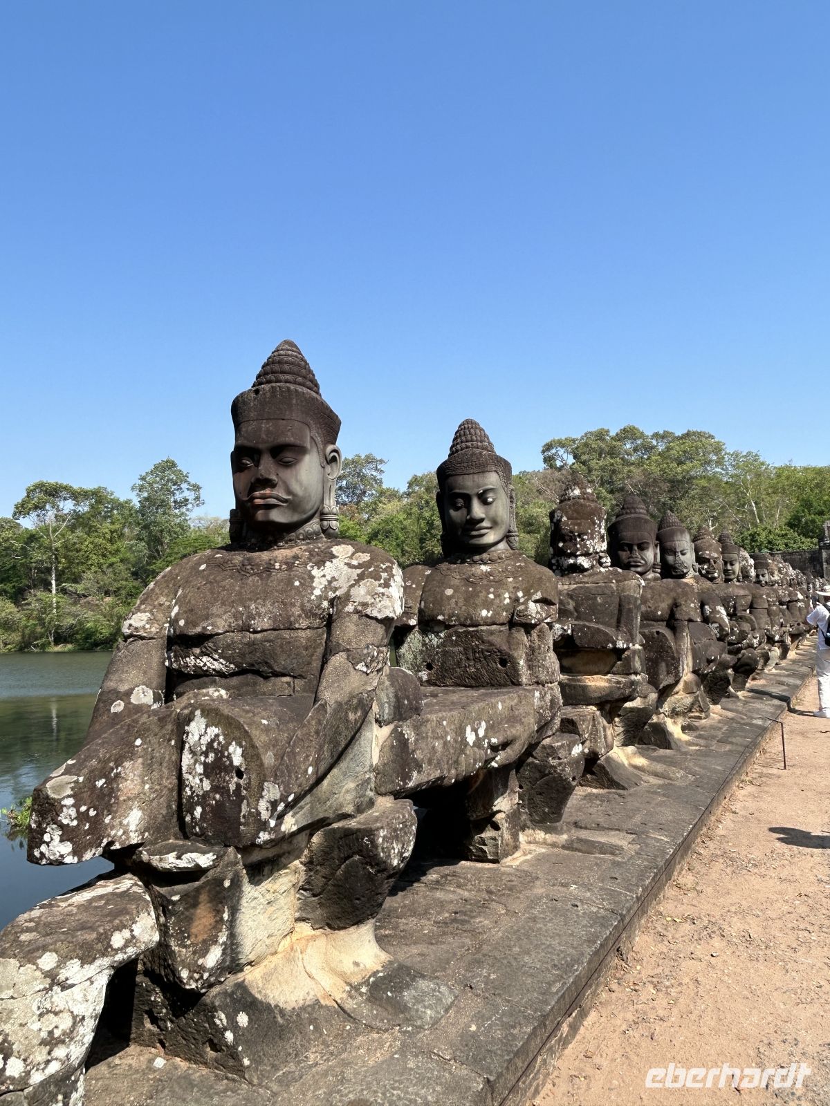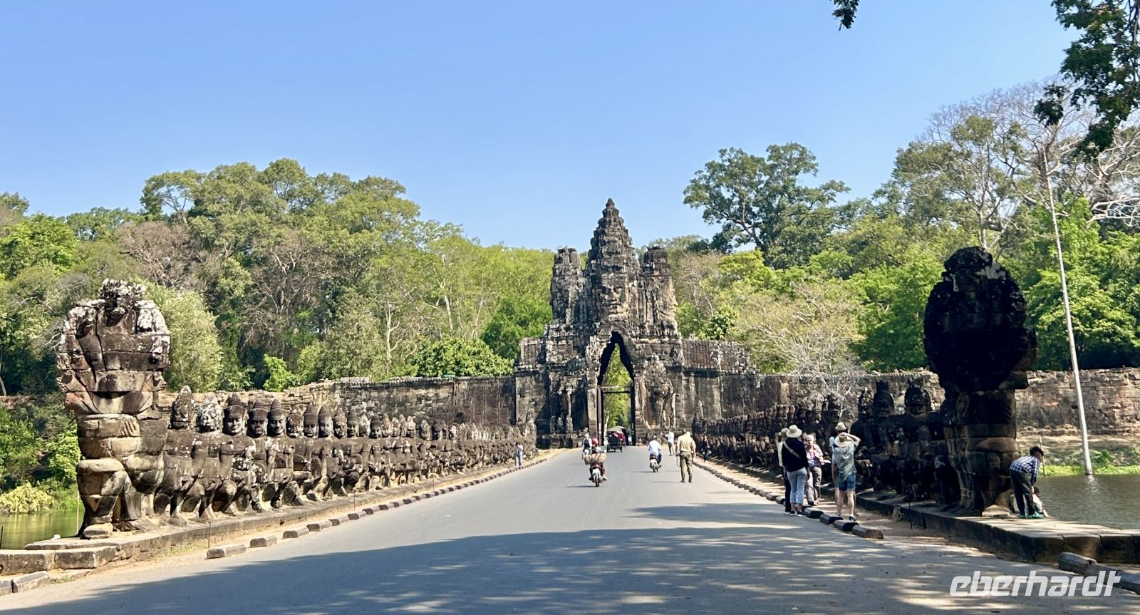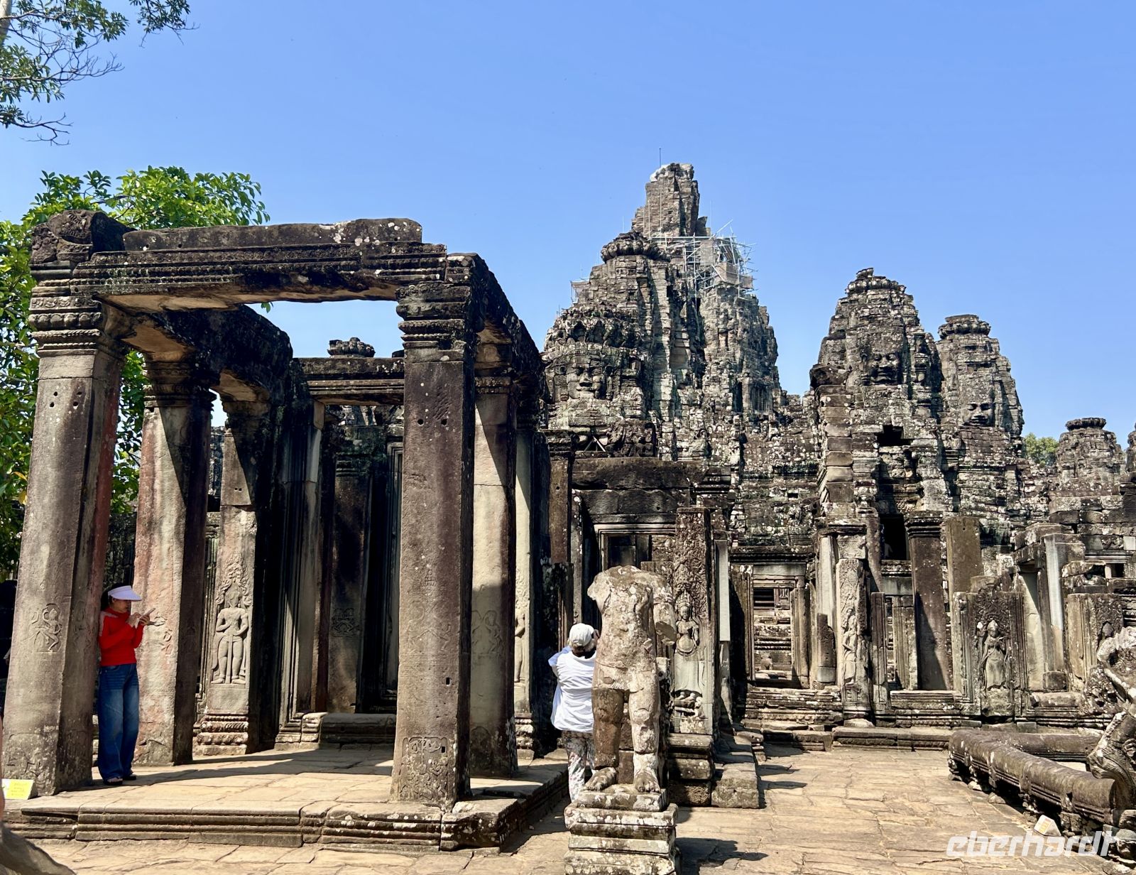 Natürlich erkunden wir auch Angkor Thom mit dem Südtor, der Elefantenterrasse und dem berühmten Bayon-Tempel, dessen lächelnde Gesichter uns überall begegnen. Vor 800 Jahren hatte sich Gottkönig Jayavarman VII dieses monumentale Denkmal mit 54 Türmen errichten lassen. Faszinierend, wie uns diese Gesichter aus allen Richtungen anschauen.