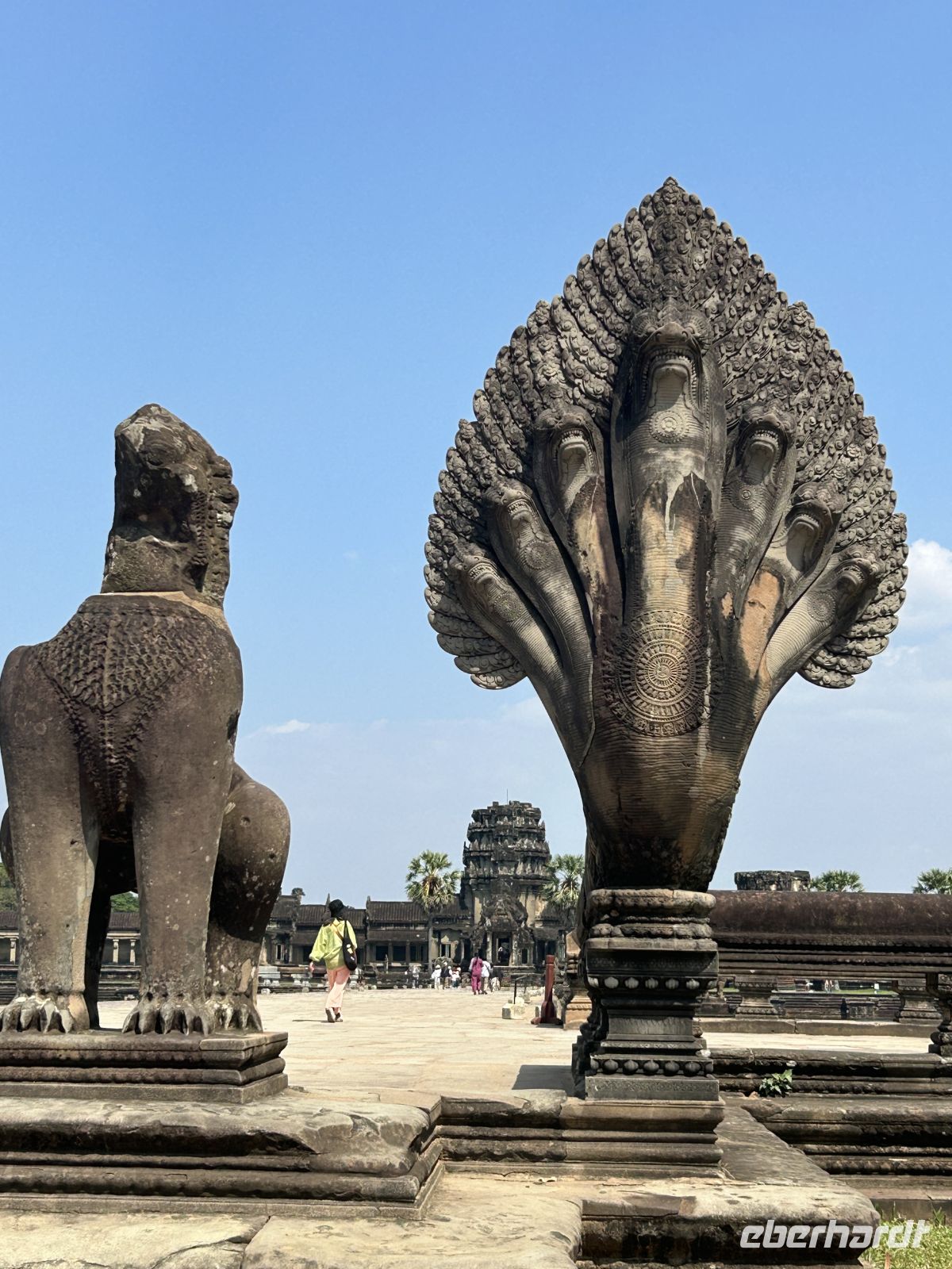 Das größte religiöse Bauwerk der Welt wurde im 12. Jahrhundert erbaut und ist das Herzstück des ehemaligen Khmer-Reiches. Die Spiegelung der fünf mächtigen Türme im Wasserbecken, das erste Licht des Tages – ein unvergesslicher Moment. Der 65m hohe Hauptturm in der Mitte unterstreicht die Erhabenheit dieses Bauwerks.