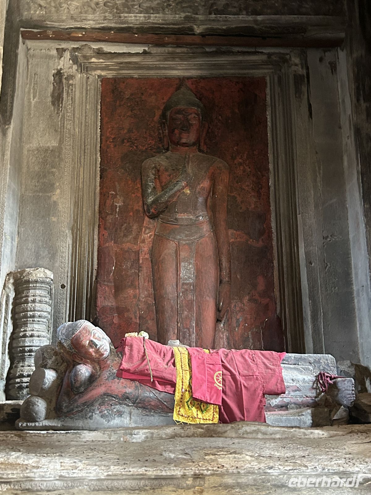 Mit dem richtigen Licht am Nachmittag erkunden wir nochmals Angkor Wat und seine verborgenen Schätze - unzählige feine Reliefs an den Wänden, die Geschichten erzählen aus längst vergangenen Zeiten. 37 Jahre benötigten mehrere tausend Arbeiter Anfang des 12. Jh. um diese gewaltige Tempelanlage fertig zustellen. Der Bauherr König Suryavarman war ein überzeugter Hindu und sah sich als irdischer Stellvertreter Gottes auf Erden, der nach seinem Tod selbst zum Gott wurde. Der Tempel war nicht nur die Wohnstätte der Gottheit, sondern wurde nach dem Tod des Herrschers zu seinem Mausoleum. Innerhalb der Tempelanlage sollen etwa 15-20Tsd. Menschen gelebt haben, Gottkönige, Adlige, Priester, Hofbeamten und Tempeldiener.