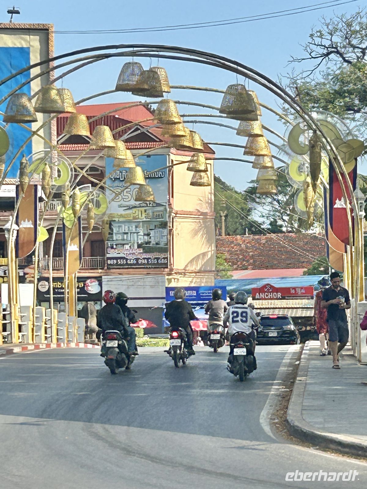 Unsere Reise führt uns per Bus weiter nach Siem Reap – die quirlige Stadt ist das Tor zu den Tempeln von Angkor. Insgesamt wurden zwischen dem 8. und 13.Jh. über 100 Sakralbauten im Umkreis der Stadt von den Khmer errichtet.