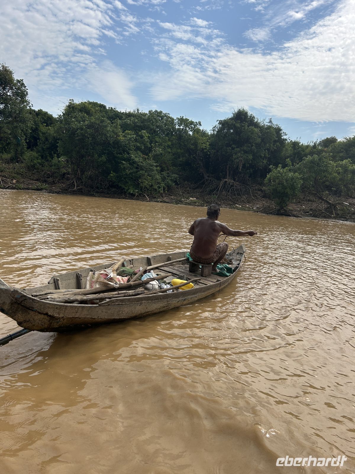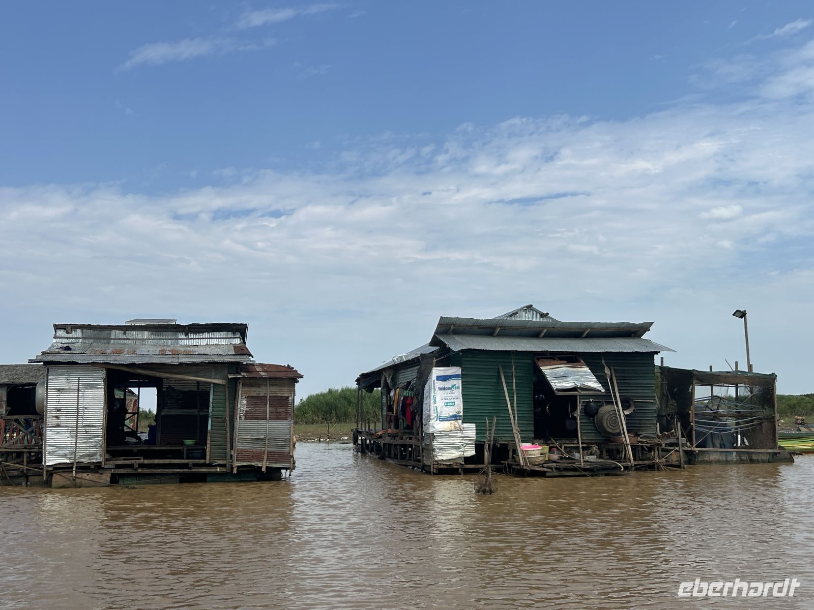 Wir sehen Stelzenhäuser entlang des Seitenarmes, schwimmende Dörfer und das Leben am Wasser – ein letzter intensiver Einblick in diese faszinierende Region.