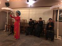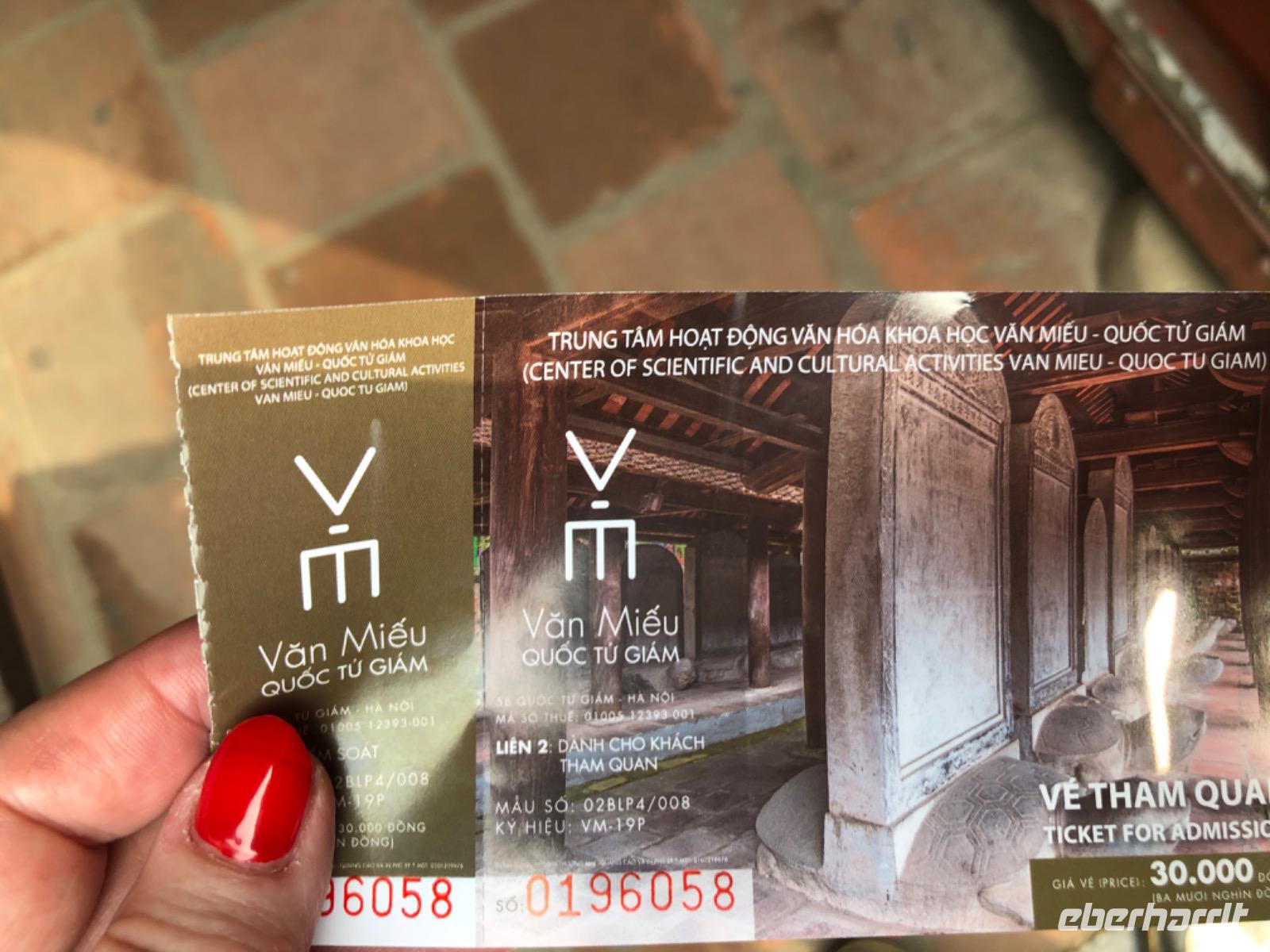 Weiter führt uns unsere Stadterkundung zur Van-Mieu-Pagode bzw. zum Literaturtempel. Er gilt als schönste Tempelanlage Hanois. Hier befand sich die erste Universität Vietnams und noch heute feiern Schulabsolventen gern hier ihren Abschluss und lassen sich in schönen Kleidern mit dem Zeugnis in der Hand fotografieren. Im Übrigen befindet sich auf dem 100.000 Dong Schein ein Abbild der Pagode. Natürlich darf auch hier ein Souvenirshop nicht fehlen und zu unserem Vergnügen haben die Verkäuferinnen gerade begonnen, ihren Verkauf anzukurbeln, in dem sie auf verschiedenen Musikinstrumenten ein Ständchen bringen.