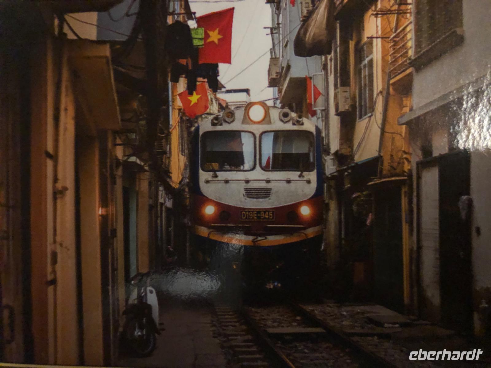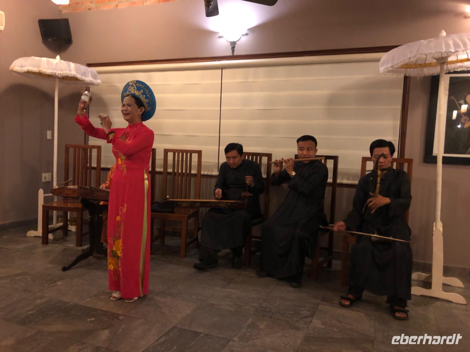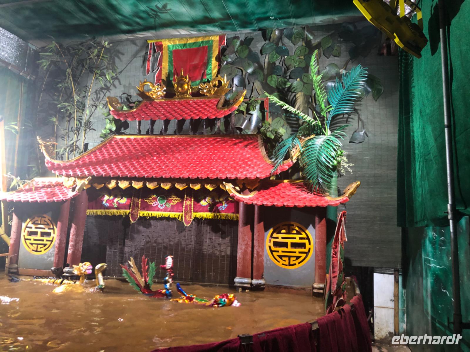 Heute erleben wir etwas ganz Besonderes. In unserem Programm der Eberhardt TRAVEL Petit-Reise ist der Besuch des Wasserpuppentheaters vorgesehen. Außerdem wollen wir einen Blick hinter die Kulissen werfen und das kann niemand, außer uns. Den Plan vor Ort umzusetzen, stellt sich jedoch als kompliziert heraus, da das offizielle Wasserpuppentheater, das alle Touristen in Hanoi besuchen, zwischen den drei Vorstellungen am Tag nur zehn Minuten Pause hat und nach der letzten Vorstellung in unserem Zeitplan wiederum bereits das Abendessen vorgesehen ist. Unsere Diep hat jedoch einen Alternativvorschlag in Petto. Sie kennt eine Familie, die in achter Generation ein Wasserpuppentheater betreibt. Durch enge Gassen gelangen wir zumindest in die Nähe des Wohnhauses der Puppenspielerfamilie. Dann müssen wir abgeholt werden. Nicht einmal die Einheimischen finden sich in dem Gewirr der Hinterhofgassen zurecht. Im Wohnhaus der Familie werden wir freundlich mit Tee und Knabberzeug empfangen. Der Herr des Hauses begrüßt uns und stellt uns die Entwicklung seiner Familie vor. Dann steigen wir die schmale Treppe bis in den fünften Stock hinauf. Hier ist tatsächlich ein kleines Wasserpuppentheater aufgebaut. In mehreren Ministücken erleben wir, wie die hölzernen Wasserpuppen tanzen oder miteinander in den Wettbewerb treten. Anschließend hebt sich der Vorhang und wir dürfen selbst Hand anlegen. Die Puppen sind ziemlich schwer und es ist gar nicht so einfach, sie zum Leben zu erwecken. Puppenspieler waren heute die Frau des Hauses und ein Neffe. Tatsächlich beteiligt ist jedoch die ganze Familie. Im anschließenden Gespräch erzählt uns der Puppenschnitzer, dass die junge Generation nicht mehr so interessiert ist, die Tradition fortzusetzen. Jede Puppe ist handgeschnitzt und mehrfach mit Farben und Lacken überzogen. Und, so wie die Puppen während der Vorstellung behandelt wurden, also gegeneinander stießen, dass es krachte, benötigen die bestimmt oft eine Reparatur, wenn nicht sogar Restauration. Wir verabschieden uns von der Familie und freuen uns, dass wir, entgegen dem Mainsteam der Touristen, einen Einblick in das Leben einer Puppenspielerfamilie nehmen durften.