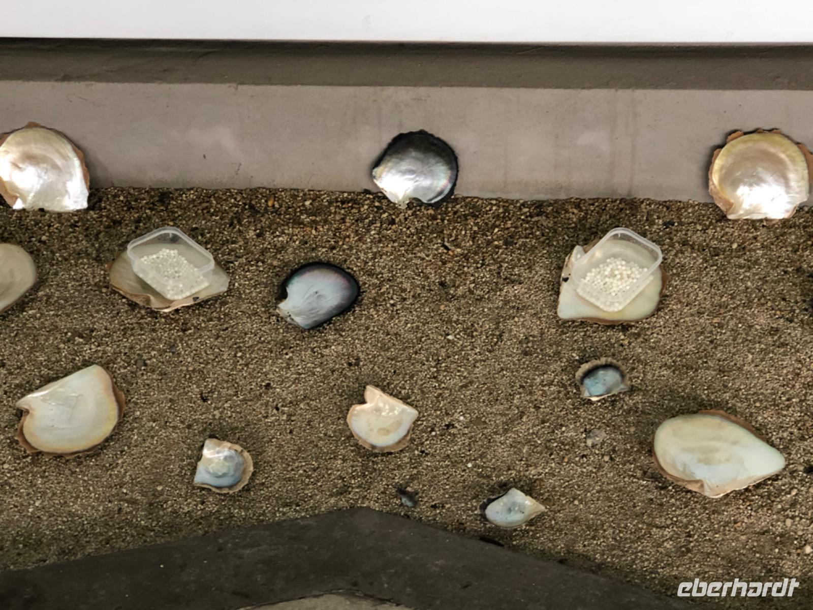 Um die Zeit bis zum Einchecken auf die Dschunke zu überbrücken, besuchen wir unterwegs eine Perlenfabrik. Wir erfahren, wie Muscheln regelrecht geimpft werden, damit in ihnen hübsche runde Perlen wachsen. Im sich anschließenden Verkaufsraum wird fantastischer Perlenschmuck zu fantastischen Preisen angeboten.