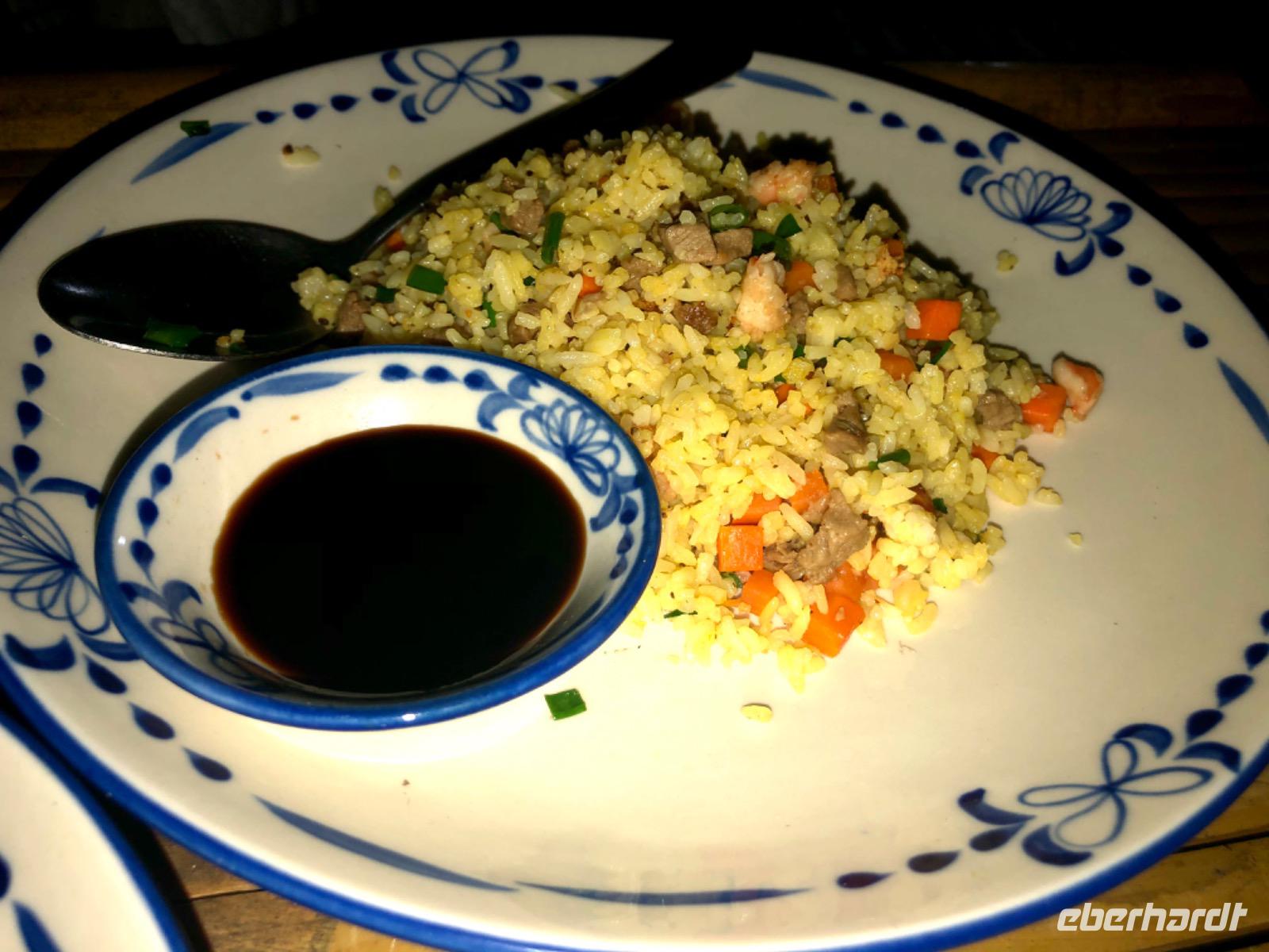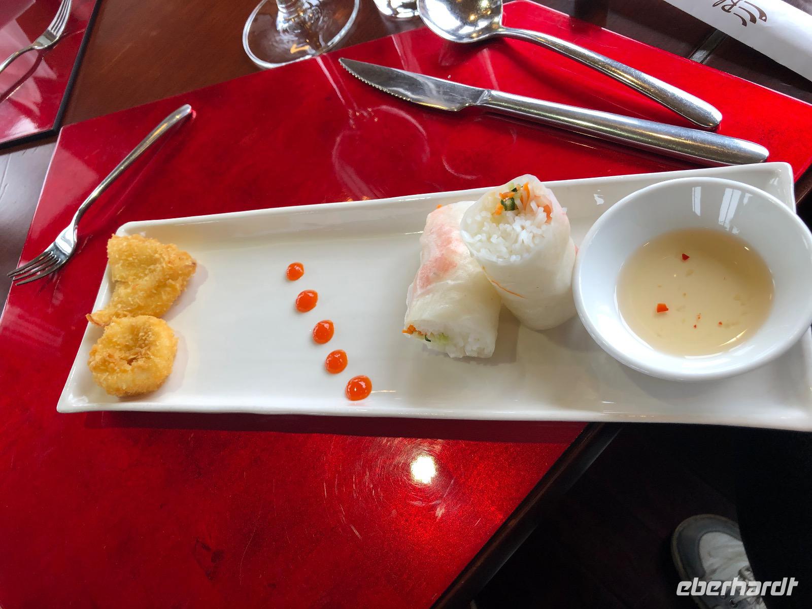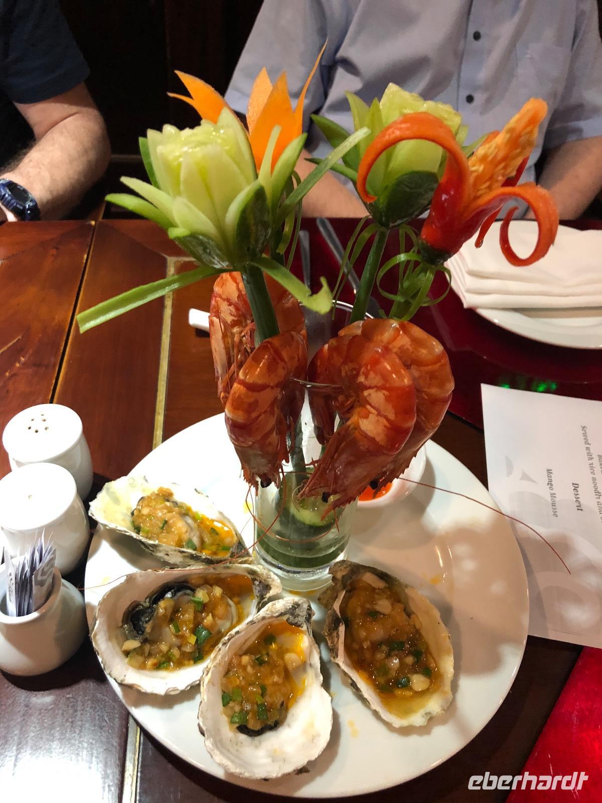 Das Abendessen nehmen wir im Luk-Lak Restaurant ein. Wir haben einen Raum für uns, in dem sich ein Tisch mit Drehscheibe befindet. Auf dieser werden die acht Gänge platziert und reihum kann sich jeder bedienen. Eberhardt TRAVEL lädt auf ein Begrüßungsgetränk ein und in lockerer Runde lernen wir uns bei netten Gesprächen kennen.
