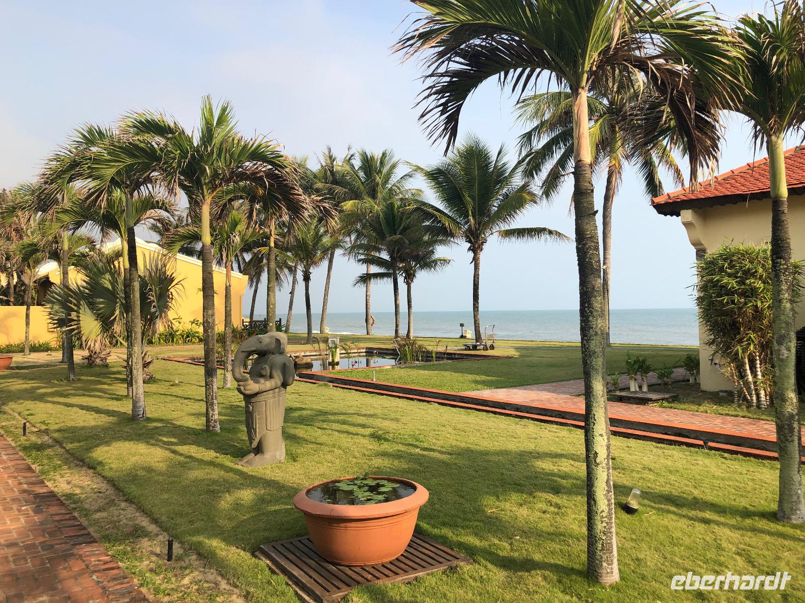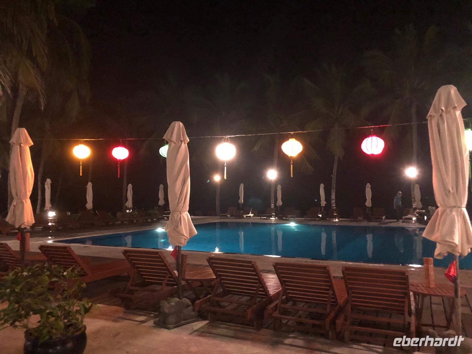 Zurück an Bord lassen wir uns den bereits kredenzten Brunch schmecken. Nachmittags um Vier fliegen wir nach Danang in Zentralvietnam, wo wir nach etwas mehr als einer Stunde landen. Mit dem Bus fahren wir nach Hoi An, wo wir unser nächstes schönes Hotel beziehen. Die laue Luft und das Rauschen des Meeres laden zu einem abendlichen Spaziergang ein.