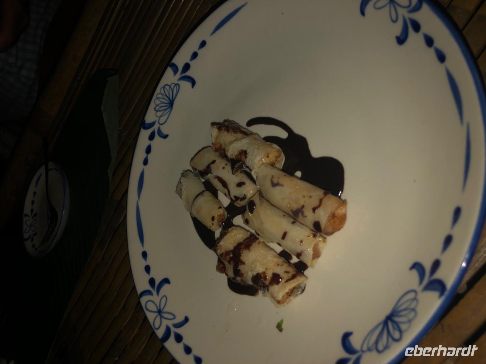 Nachmittags erwartet uns ein Kochkurswettbewerb. Wer macht die schönste Frühlingsrolle? Mit viel Engagement und Spaß sind wir dabei. So vergeht der Tag und bald schon treffen wir uns zum Abendessen, welches wieder äußerst liebevoll zubereitet wurde.