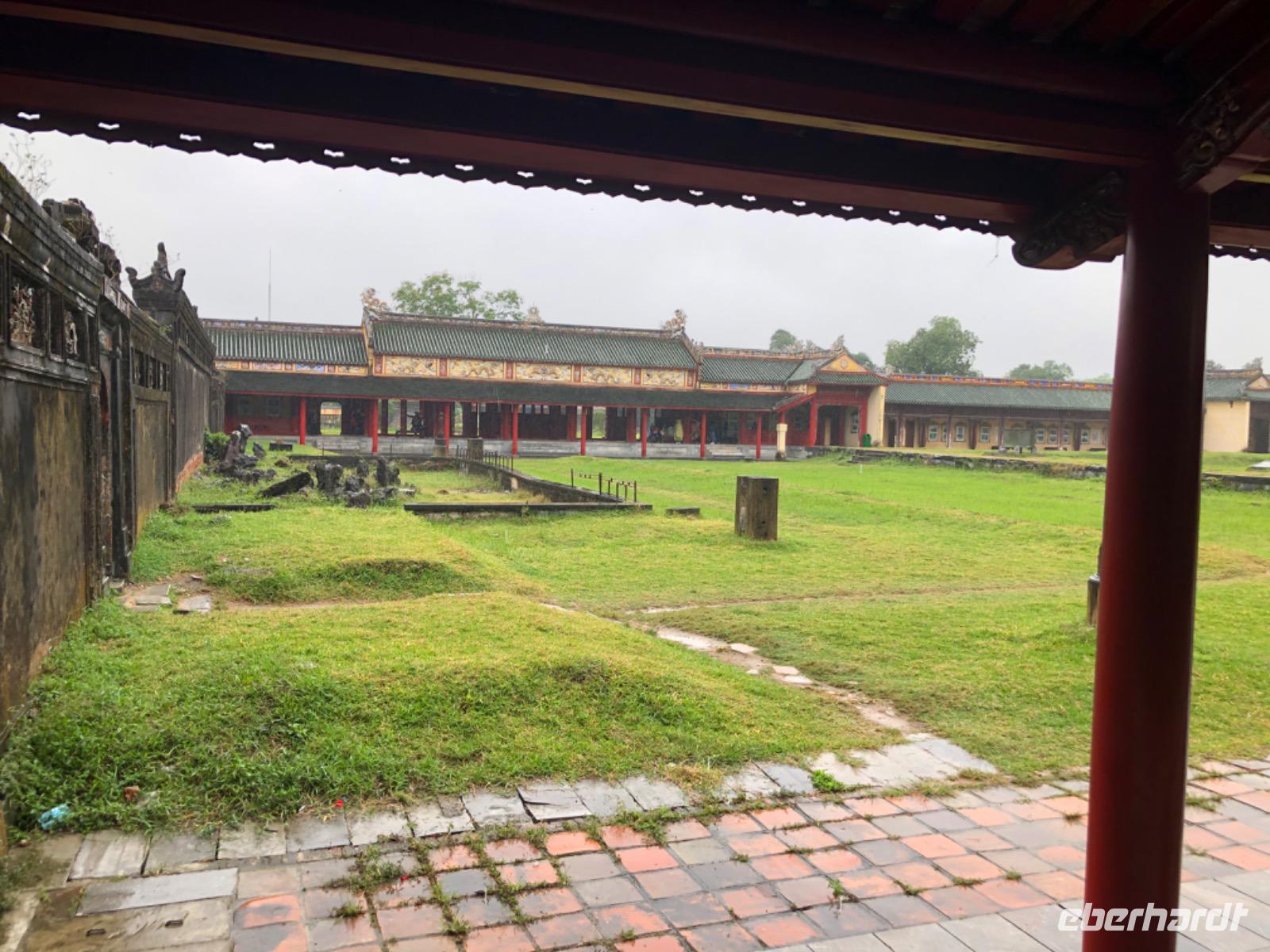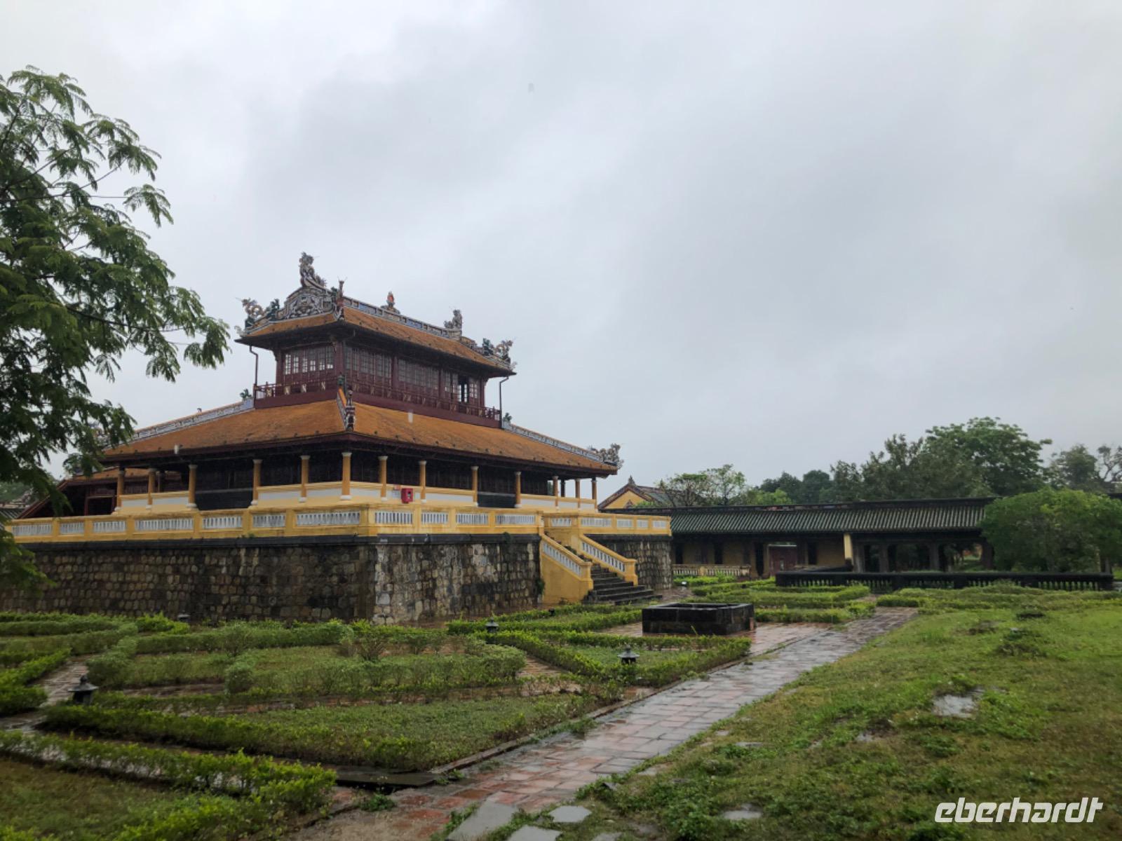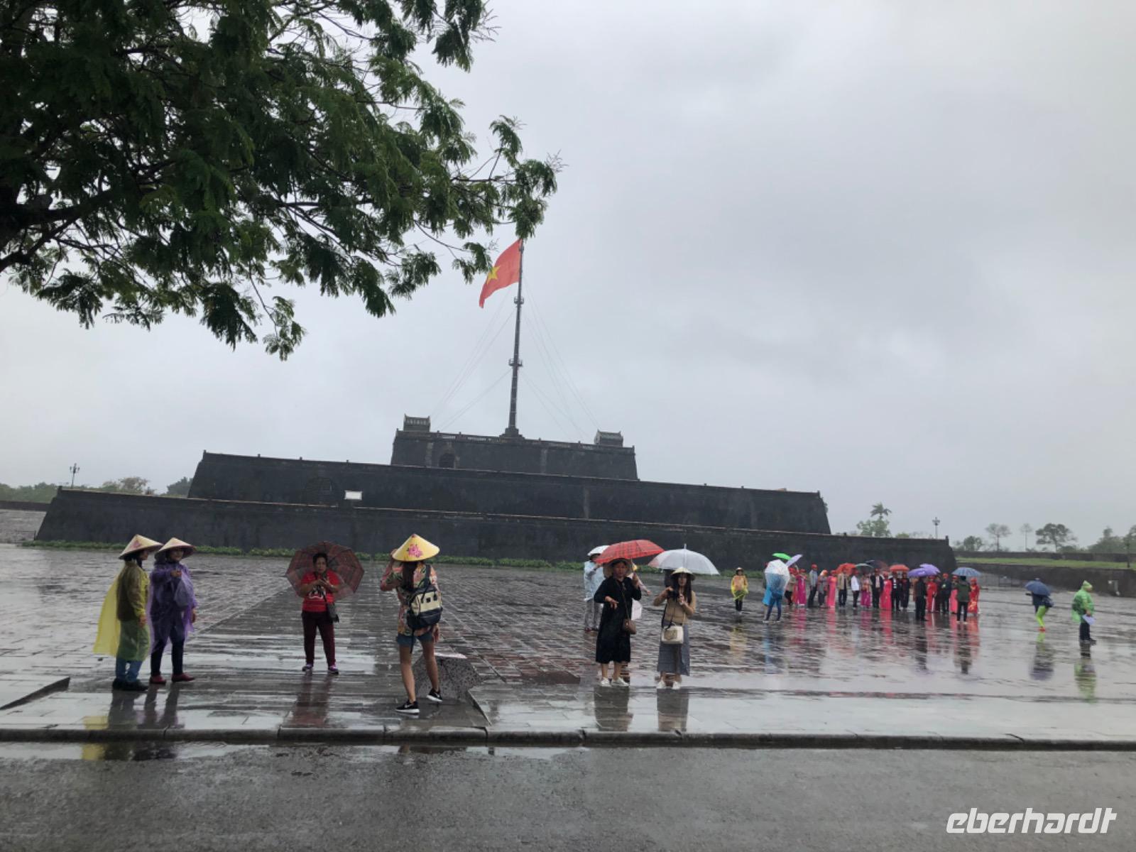 Am Vormittag besuchen wir den Kaiserpalastes, die Zitadelle, welche 1802 auf Anordnung des Kaisers Gia Long erbaut wurde. Der Kaiser wollte nicht nur eine Festung erbauen, sondern eine ganze Stadt für die kaiserliche Familie und die Beamten. Vergleichbar ist der Aufbau der Anlage mit der Verbotenen Stadt in Peking. Im Vietnamkrieg wurde auch diese Anlage bombardiert und vieles zerstört. Vietnam gibt sich große Mühe, die alten Bauten zu restaurieren, doch es ist deutlich zu erkennen, dass an manchen Stellen Zeit, Kraft und Geld fehlt.