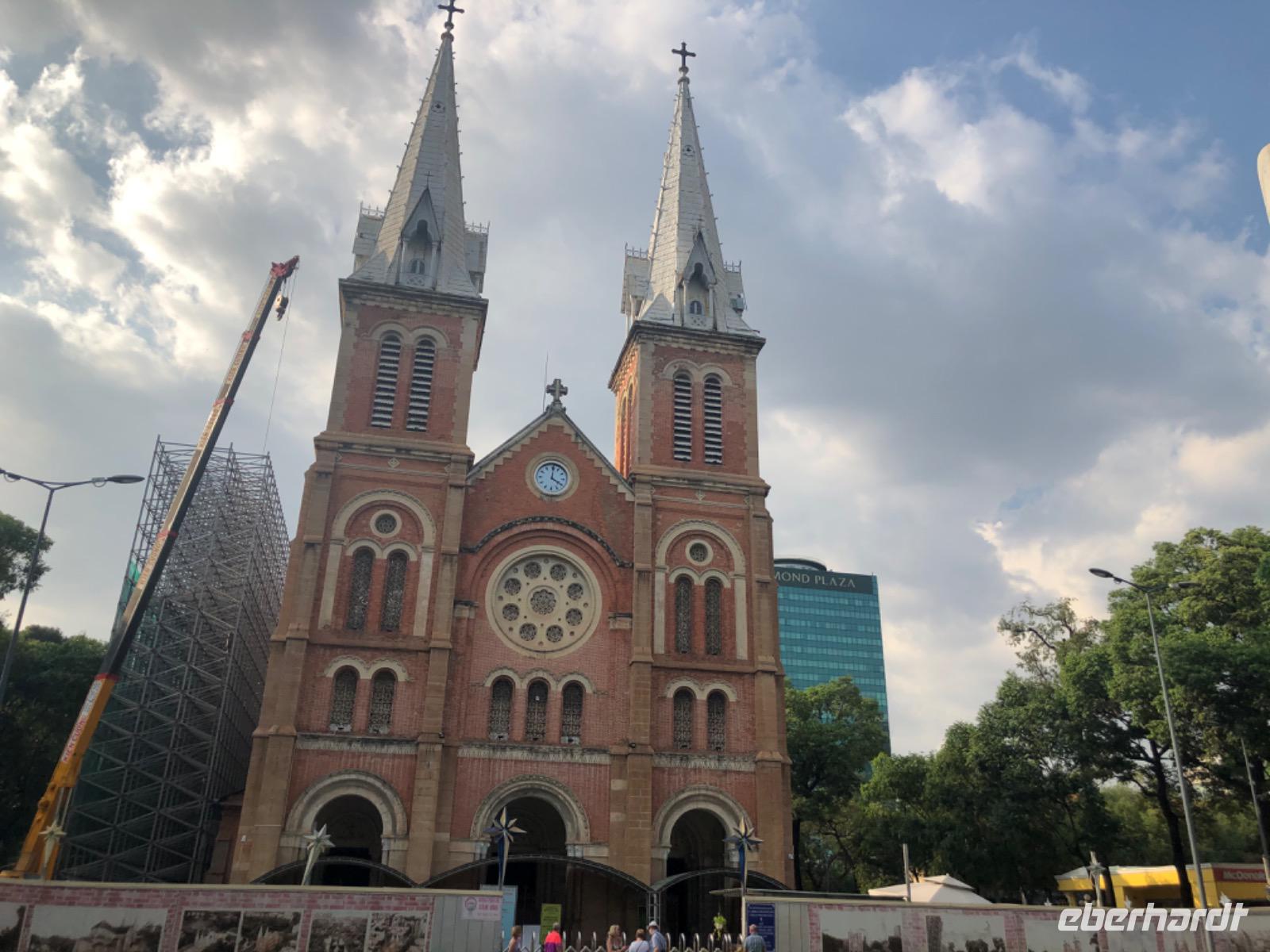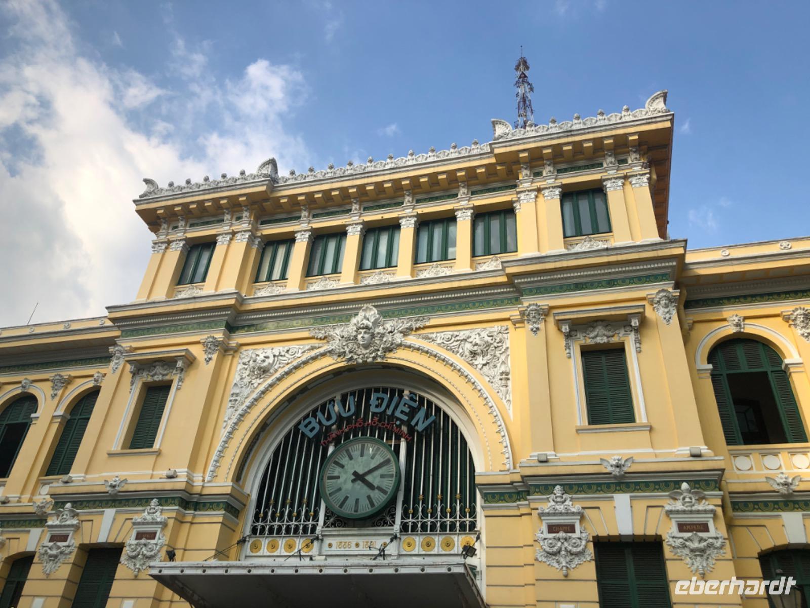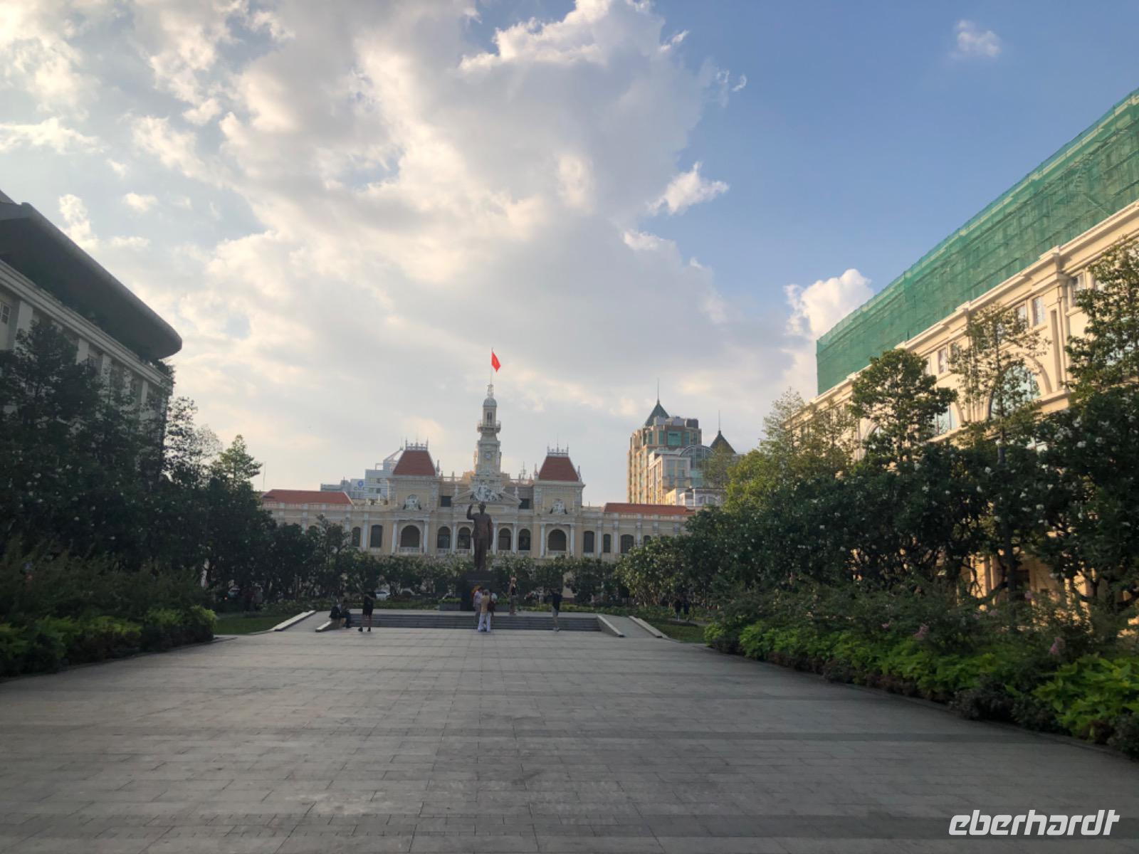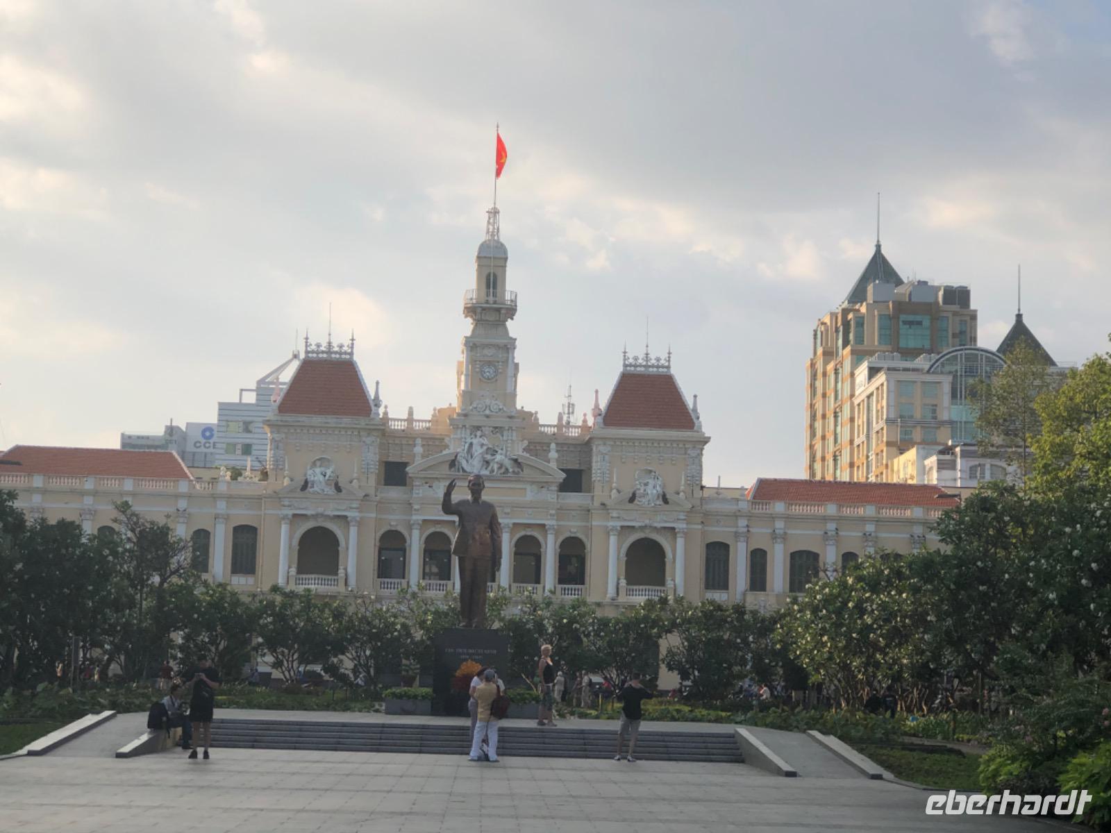 Bevor wir im Hotel einchecken, unternehmen wir einen kleinen, aber feinen Spaziergang in Saigon. Hien zeigt uns alle bedeutenden Gebäude, die sich fußläufig in der Nähe unseres zentral gelegenen Hotels befinden.