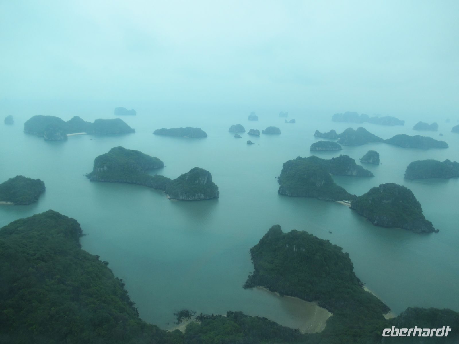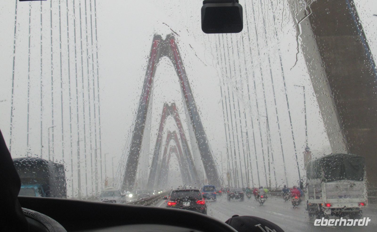 Unser heutiges Ziel ist einer der Highlights von Vietnam – das UNESCO Weltnaturerbe „Halong Bucht“, auf Vietnamesisch „V?nh H? Long“. Die Halong Bucht ist ca. 170 km von Hanoi entfernt. Durch den Bau der Autobahn hat sich die Fahrt wesentlich verkürzt, auch wenn man immer noch mehr als 2,5 Stunden benötigt. Daher starten wir recht früh. Das Wetter zeigt sich allerdings nicht besonders freundlich.