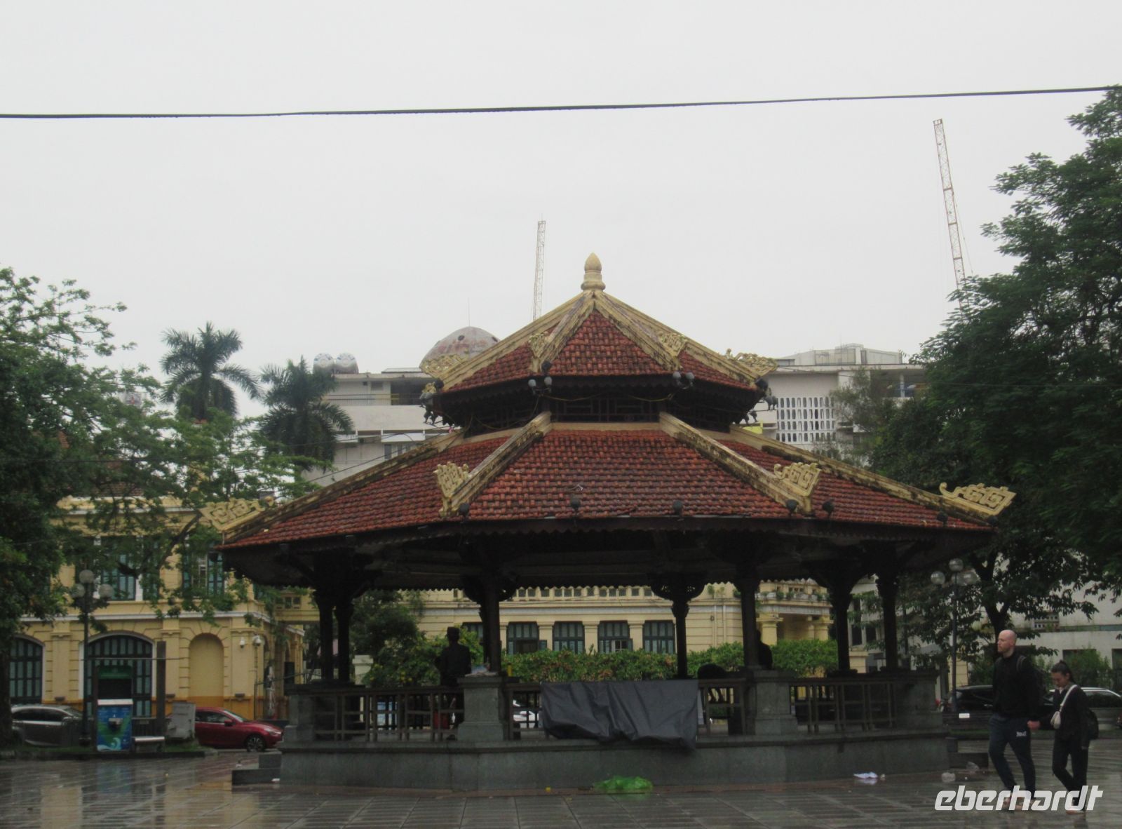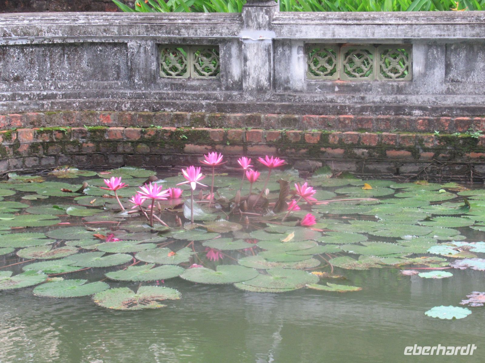Nur ein paar Schritte von hier besuchen wir noch die „Einsäulenpagode“ in nahegelegenen Park. Die Pagode, auf Vietnamesisch „Chua Mot Cot“ ist in einem viereckigen Teich in Form einer Lotusblüte auf einer Säule aufgebaut.