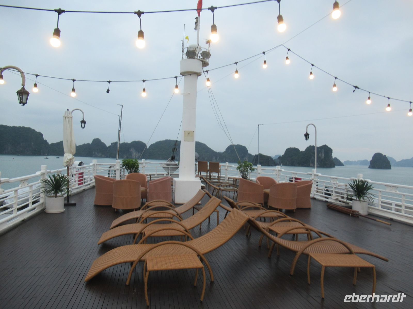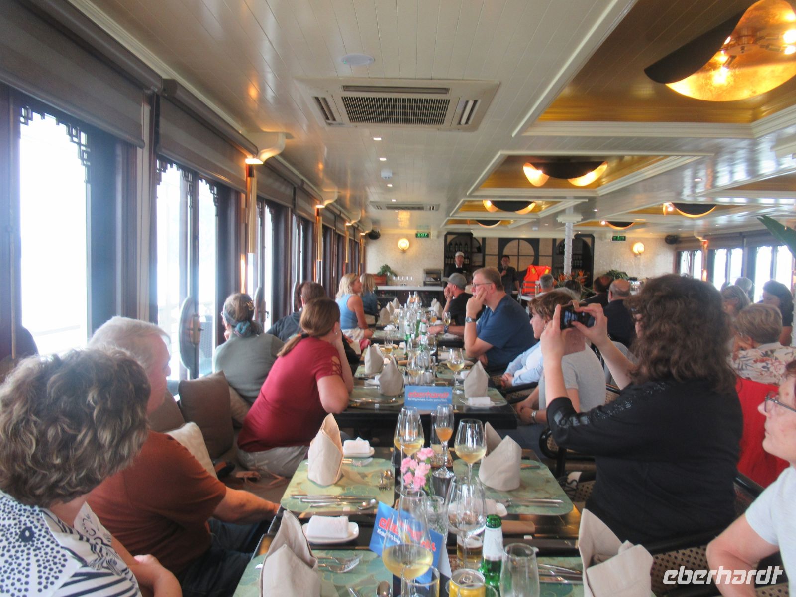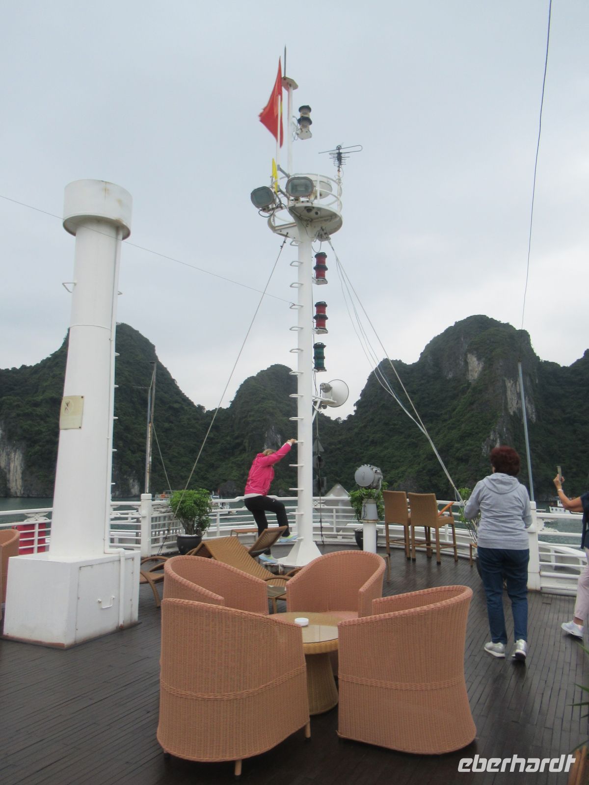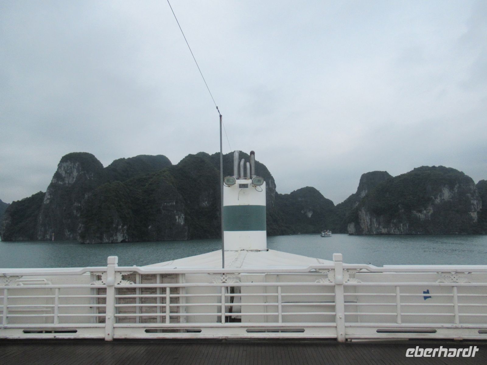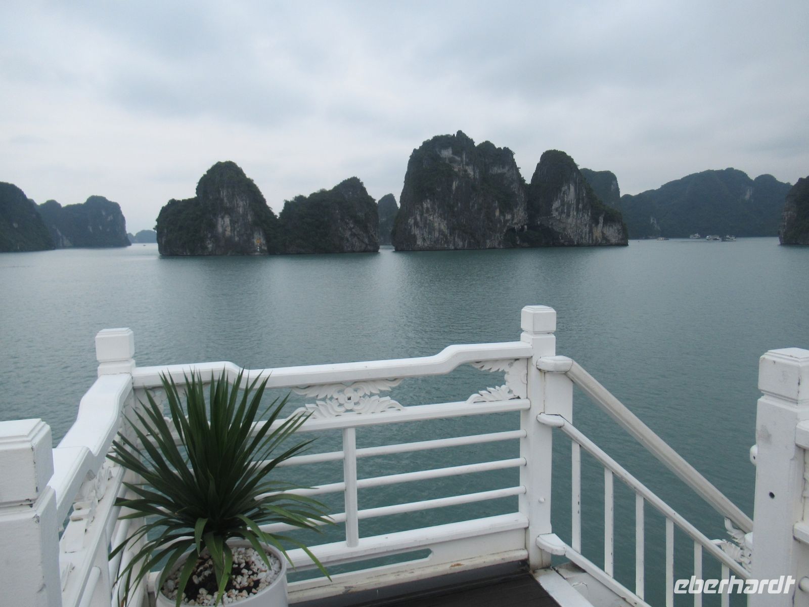 Nun haben alle einen Eindruck von der Halongbucht bekommen, aber die Zeit ist bemessen und wir müssen zurück ans Bord. Ein Abschlussbrunch erwartet uns, und dann lassen wir noch die Blicke schweifen über die unendliche Naturschönheit, die die Natur - oder doch der Drache - hier geschaffen hat. Wir könnten hier sicher noch einige Tage verweilen und einfach die wunderschöne Kulisse beobachten und die Seele baumeln lassen.