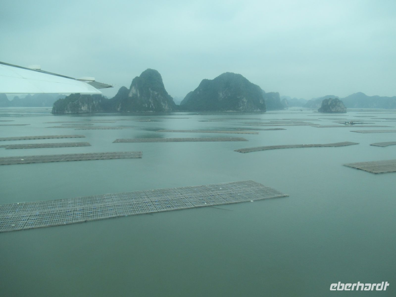 Wir fahren weiter in das Tal und erreichen Lang Co am Ufer des Sees, mit Perlenzuchtstationen.