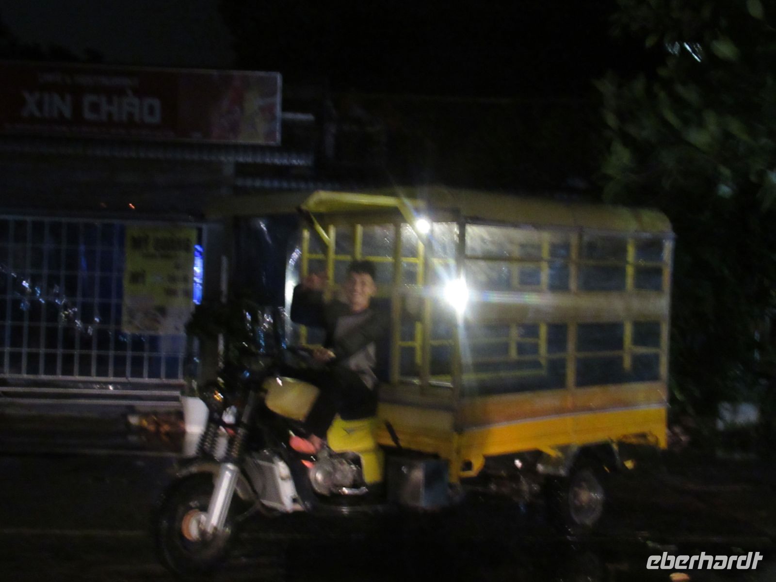 Die Koffer kommen zügig, nur der große gelbe Koffer lässt auf sich warten… Die Formalitäten verlaufen unkompliziert und in der Flughafenhalle empfängt uns schon der örtliche Reiseleiter Chau. Er spricht sehr gut Deutsch, da er teils auch noch in Deutschland lebt.