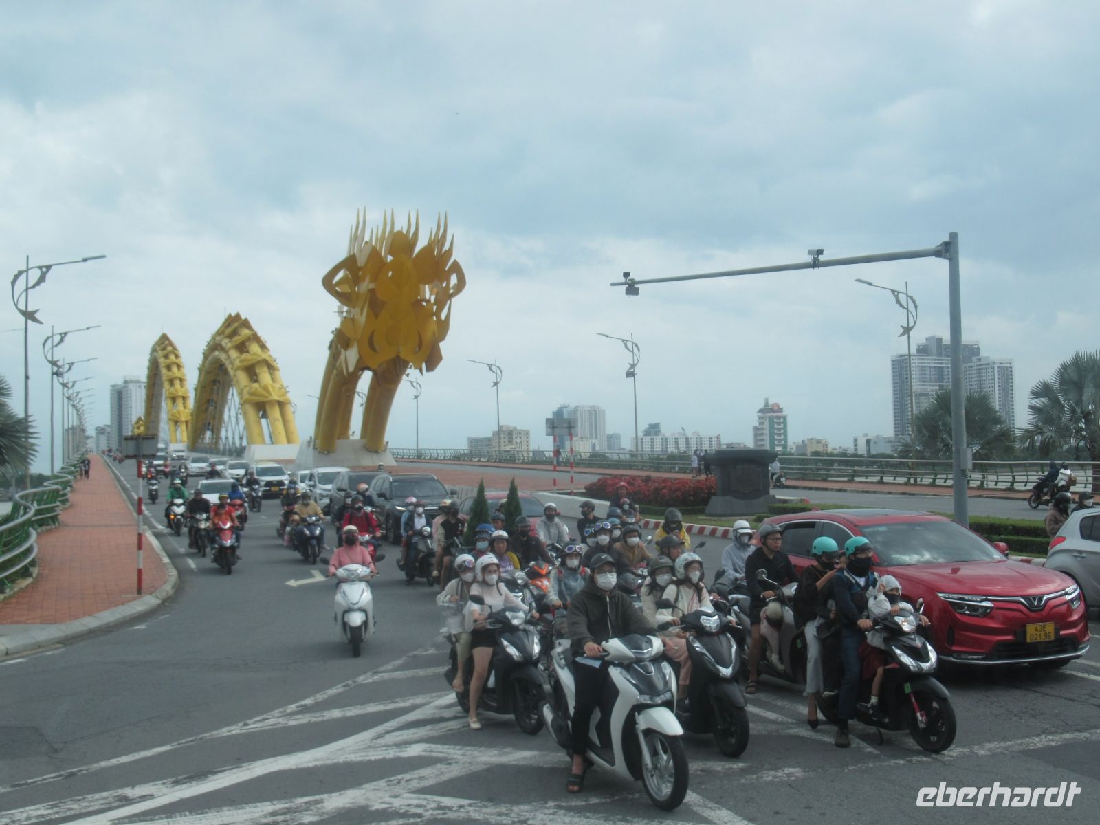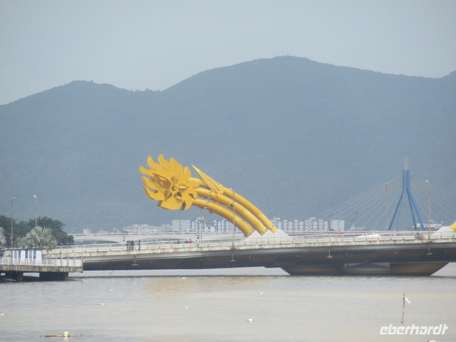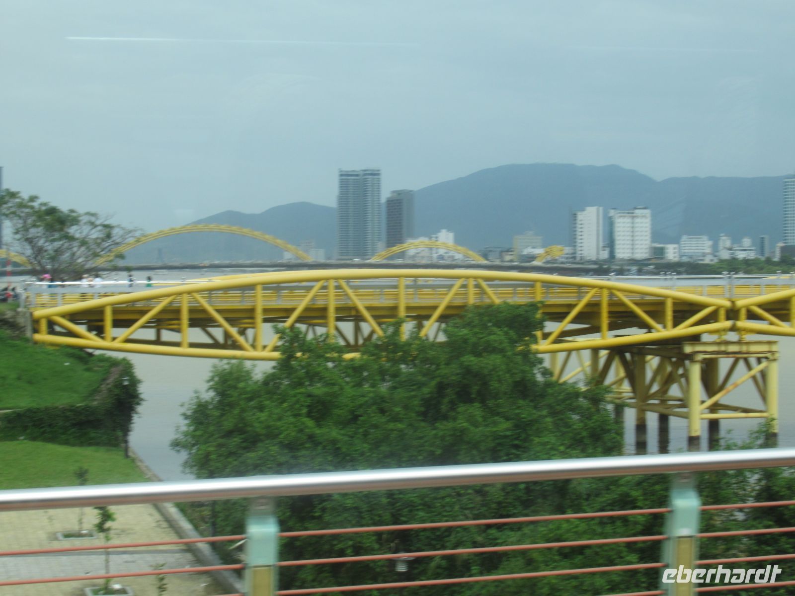 Für unsere Rundfahrt ist kein Stopp in Da Nang geplant. Wir streifen die Stadt und sehen die gigantische Drachenbrücke über den Fluss Han.