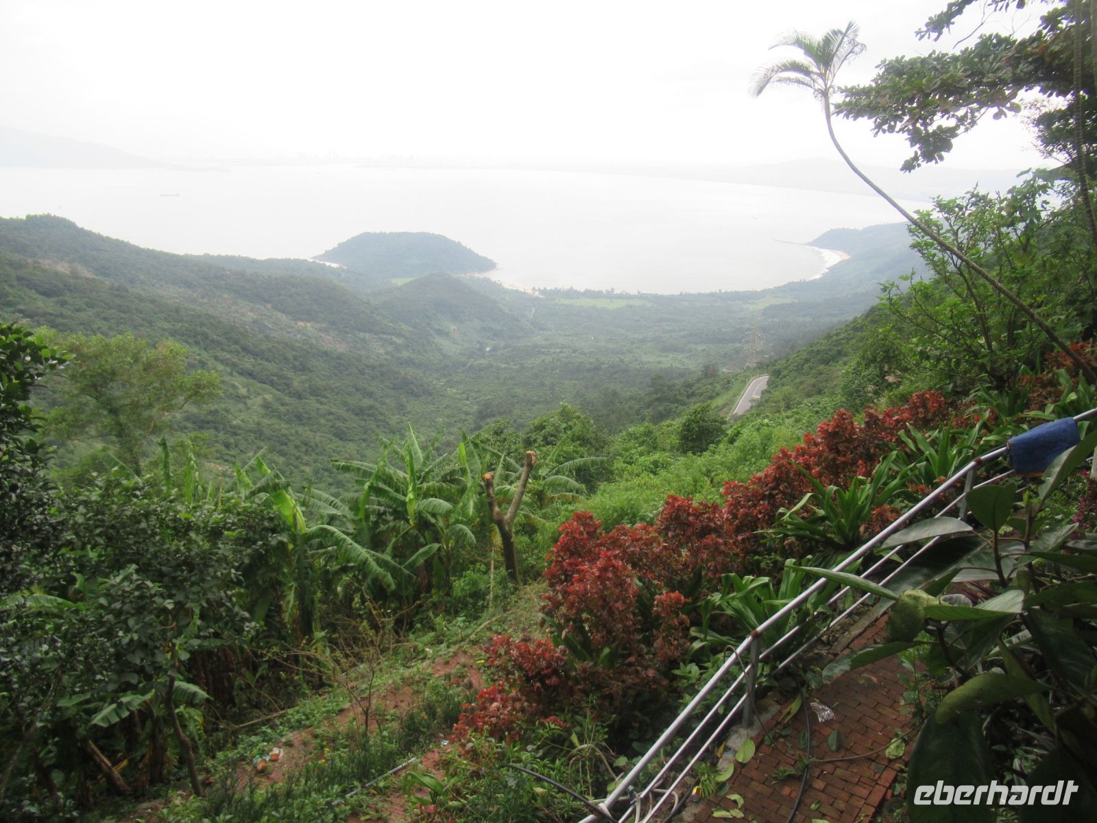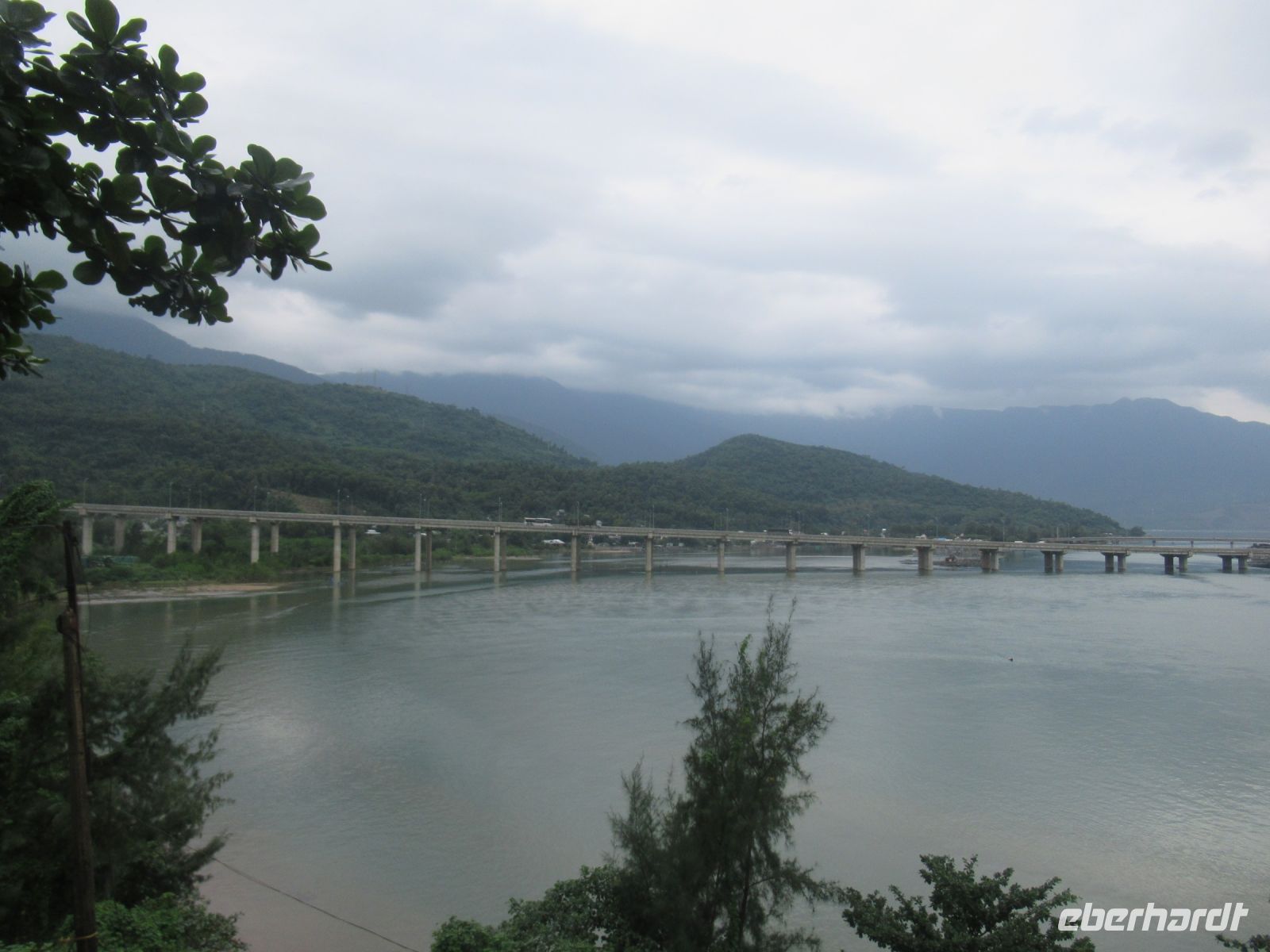 Unser Ziel heute ist die ehemalige Kaiserstadt Hue. Wir fahren über den Wolkenpass - auf vietnamesischen Hai-Van-Pass - , der sich mit 21 km über die Ausläufer des Truong-Son-Gebirges schlängelt. Jetzt geht es die Serpentinen nach oben. Wunderschöne Ausblicke eröffnen sich. Bald bleiben wir an einer Zugschranke stehen und bewundern die alte Lok mit unzähligen Wagen. Eine Szene wie aus einem alten Film…