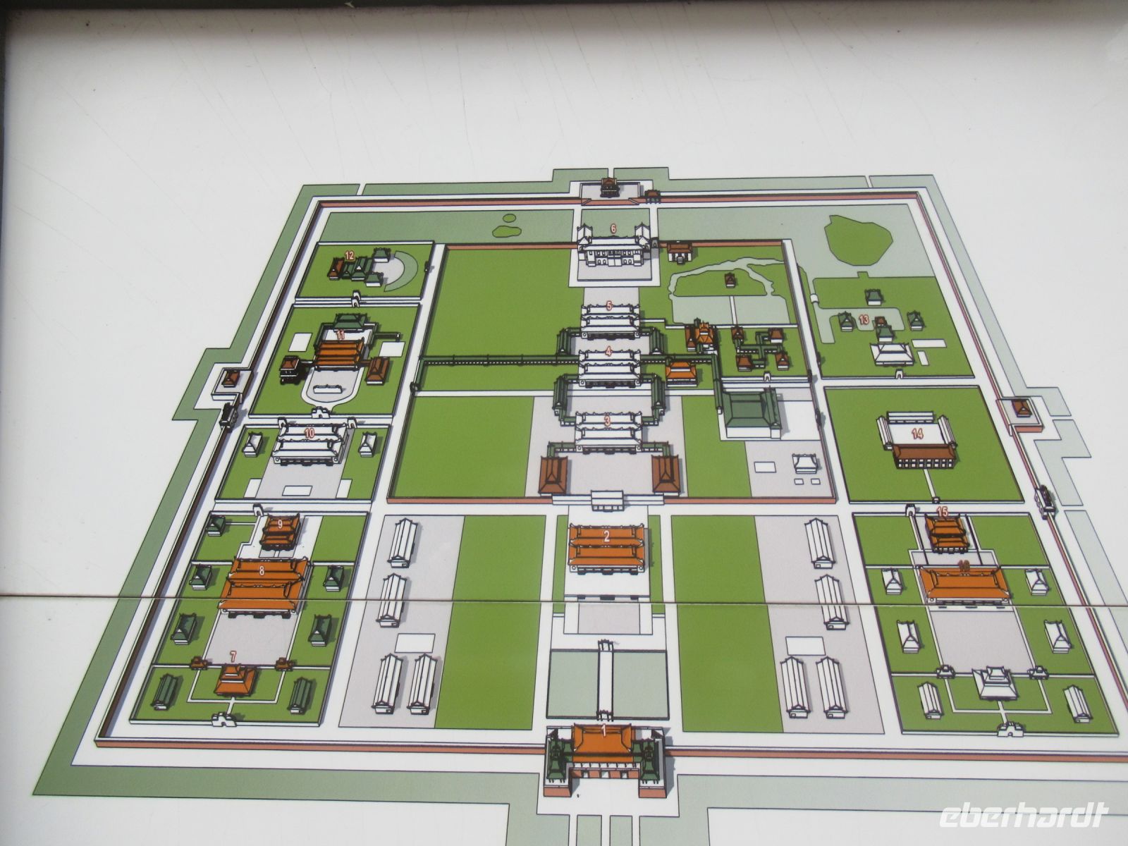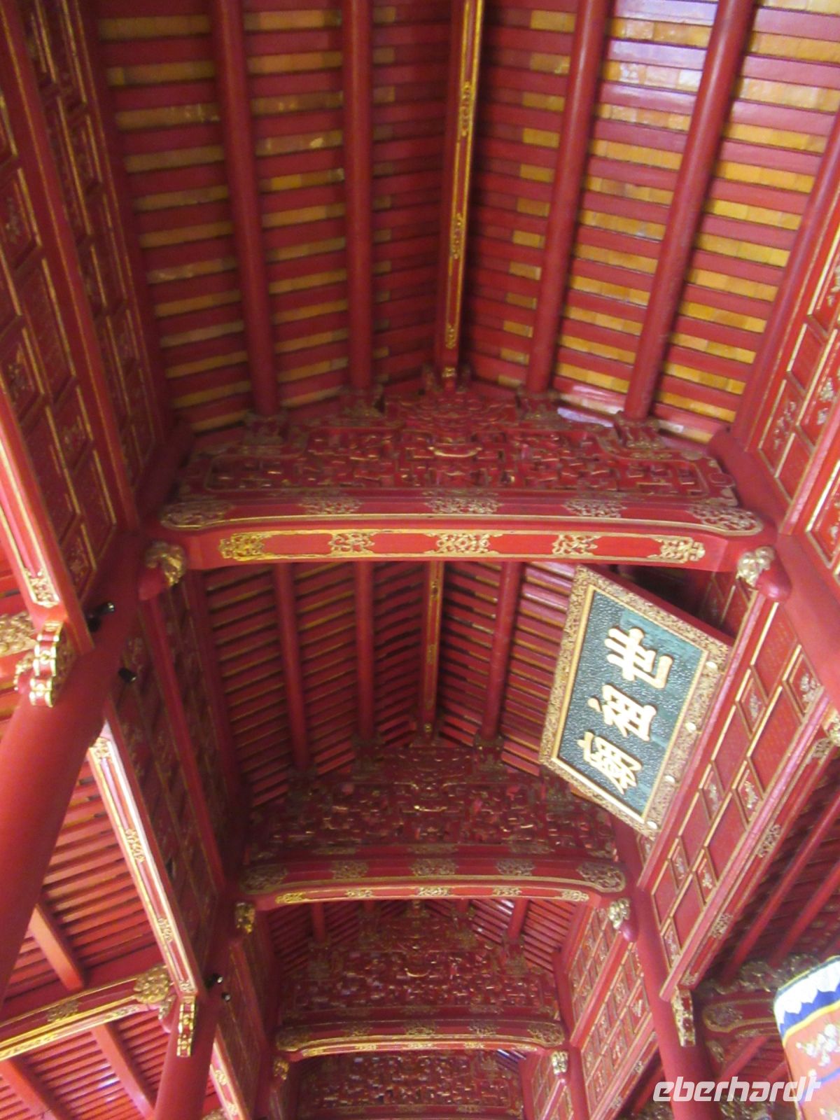 Wir durchschreiten die einzelnen Höfe, bewundern unter anderem die große Bonsaipflanzen, und die wunderschönen gold-roten Altare, die Statuen, Vasen, Glocken und Dächer.