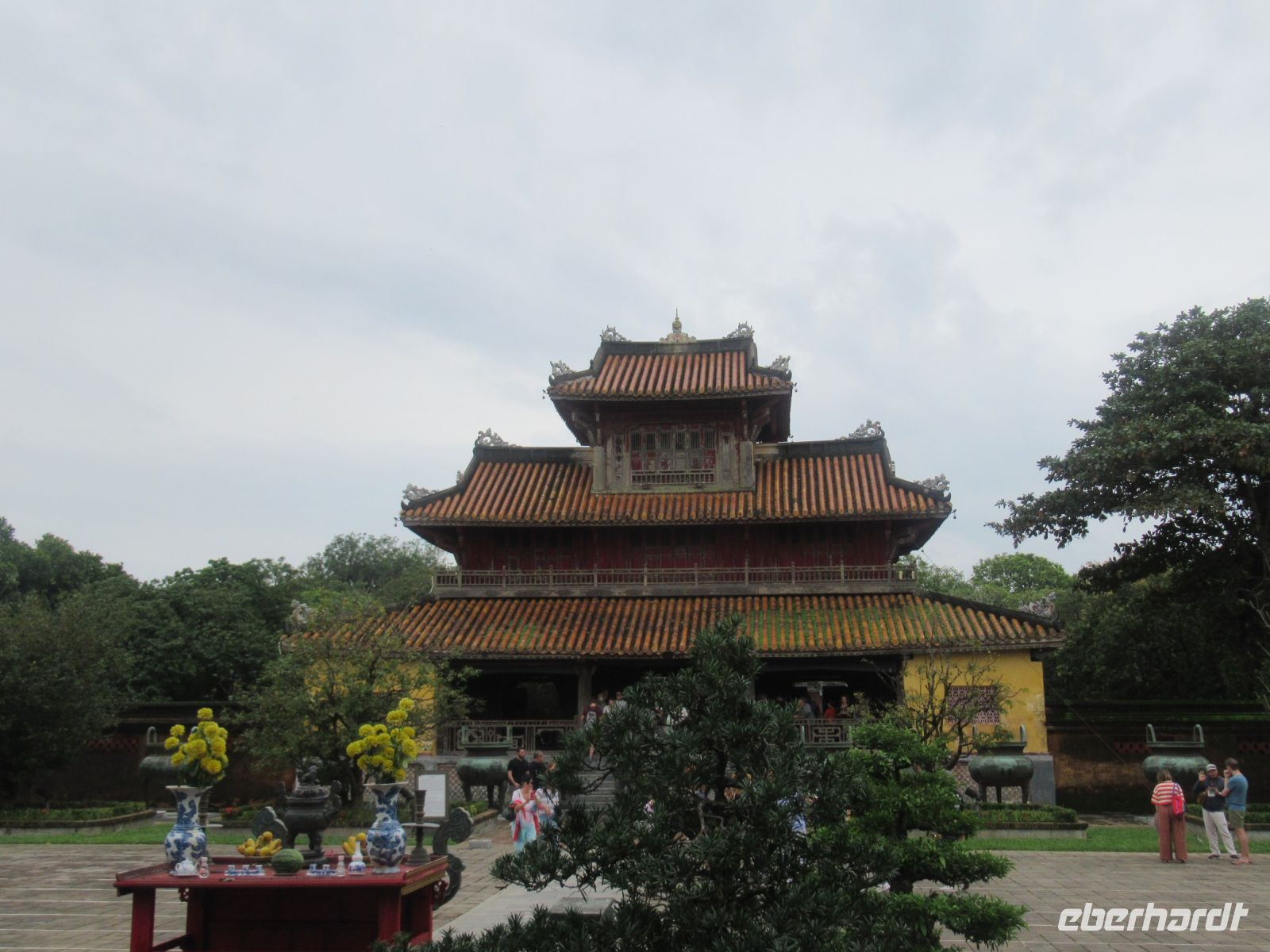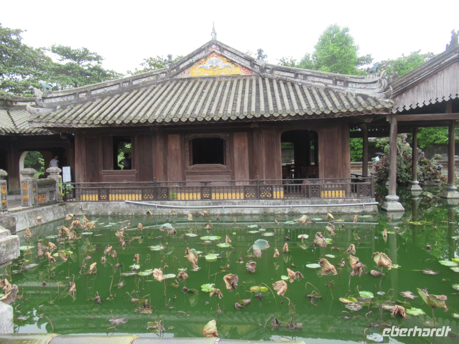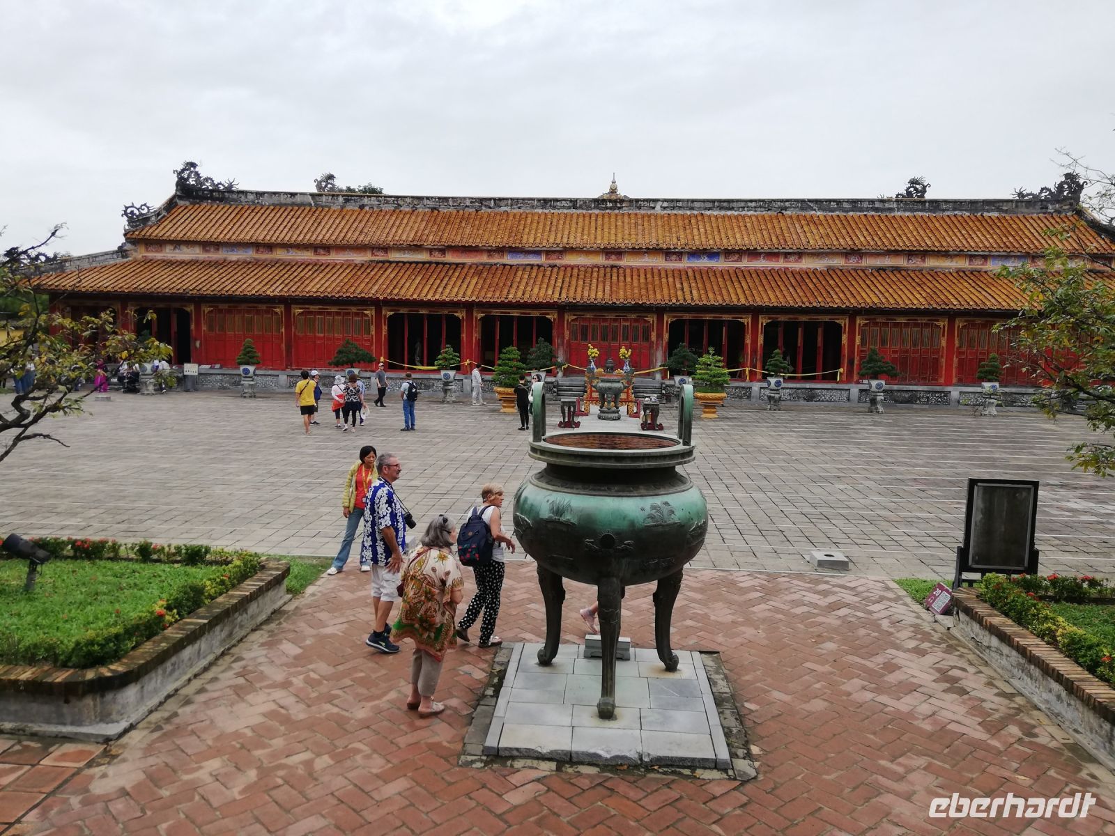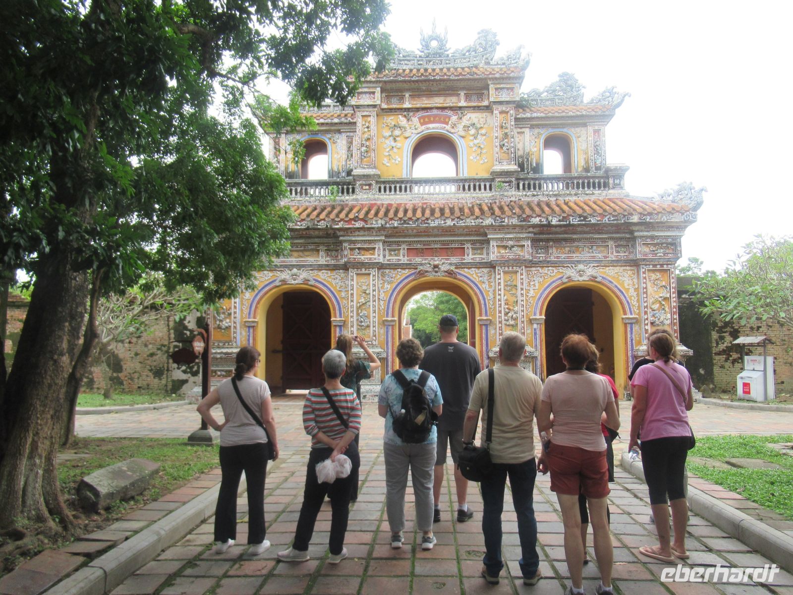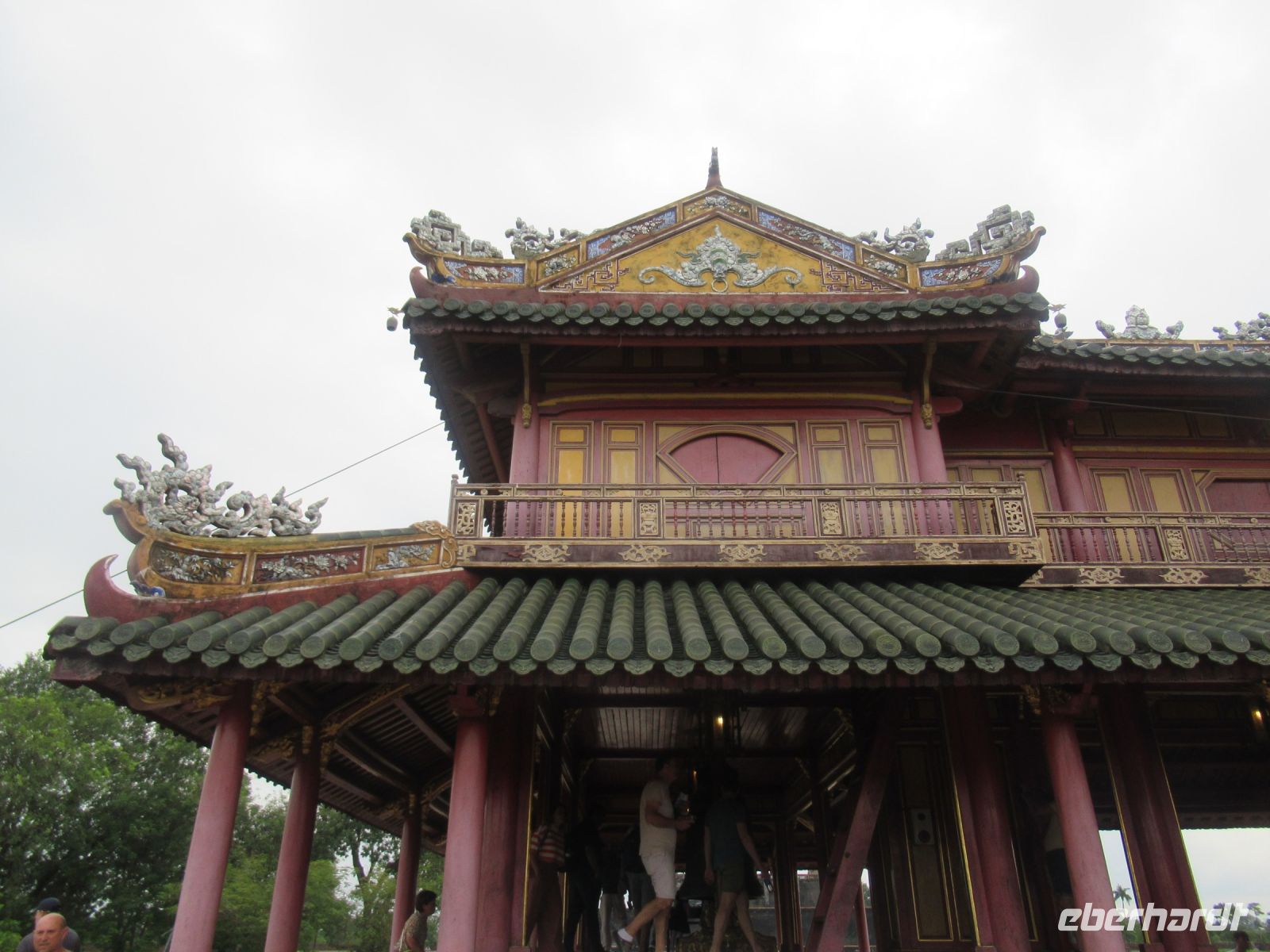 Hue - die ehemalige Kaiserstadt. Hier residierten von 1802 bis 1945 die vietnamesischen Kaiser und machten den Ort zur Hauptstadt Vietnams. Während der Herrschaft der Nguyen Dynastie entstand die „Verbotene Stadt“ – Palastanlagen nach dem Vorbild vom Peking. Die purpurne Kaiserstadt war nur Wenigen zugänglich, daher auch die Benennung „Verbotene Stadt“.