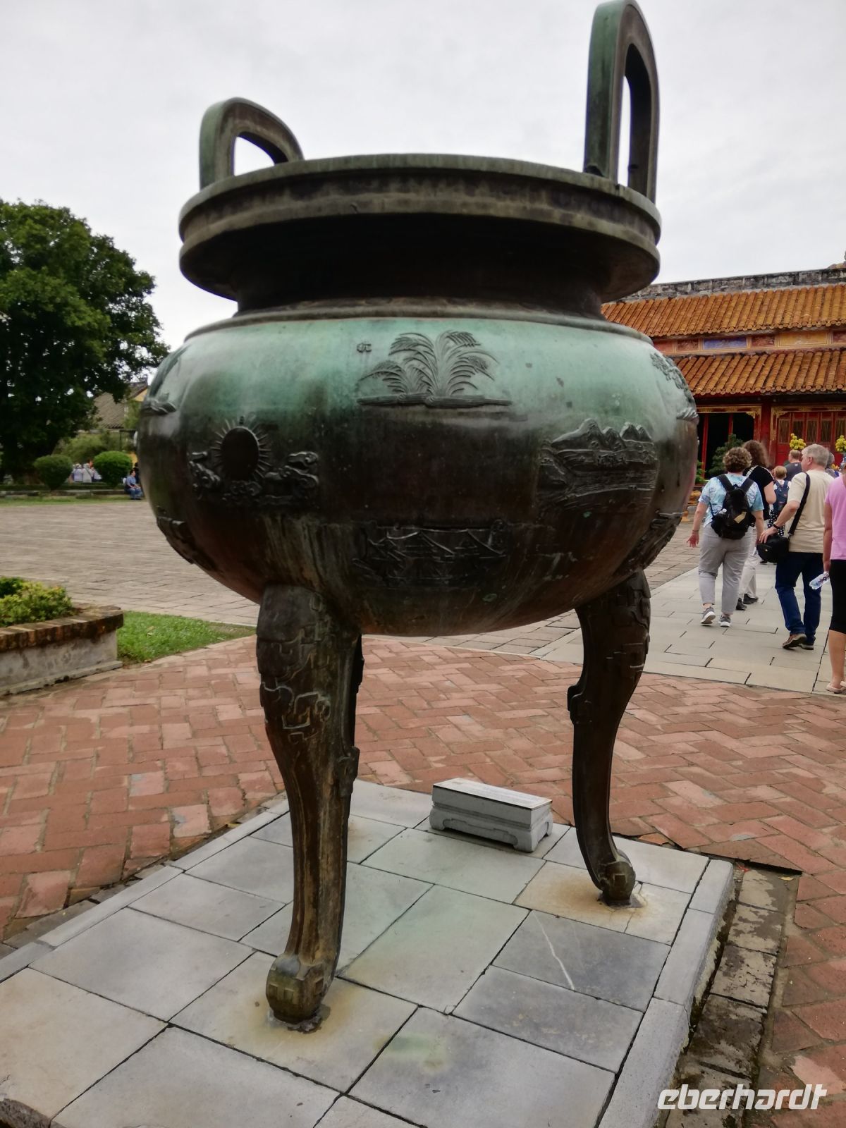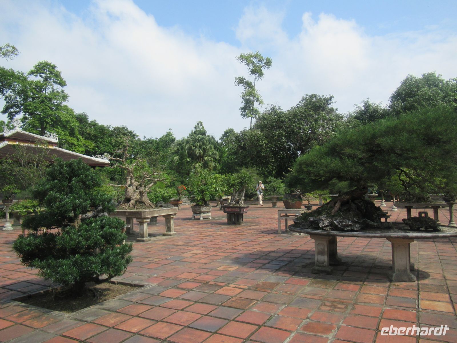 Nach und nach bewundern wir die einzelnen Höfe, Paläste in Rot-Gold, die Buddha Stauen, wunderschöne riesengroße Bonsai, Torbögen und Keramikverzierungen. An einigen Stellen sieht man nur große leere Grünflächen, dort, wo die Gebäude zerstört wurden. Wir bewundern die Werke und Pracht der Künstler und Gestalter dieser Prunkstadt der Vergangenheit. Heute ist dadurch Hue ein beliebtes Ziel der Touristen. Hue zählt heute ca. 350.000 Einwohner und laut Statistiken besuchten Hue im Jahr 2023 ca. 2,1 Millionen Touristen.
