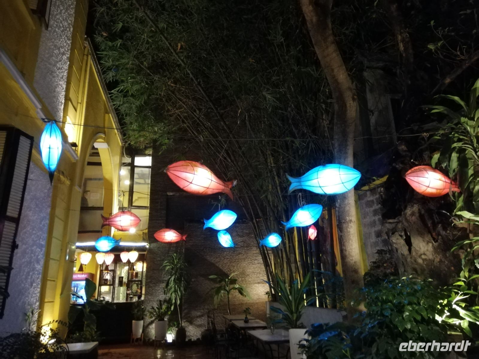 Ein lokales vietnamesisches Restaurant mit etwas französischen Touch. Hier findet jeder was für seinen Geschmack und nach dem Abendessen spazieren wir noch durch die Straßen der Innenstadt, die am Wochenende autofrei sind und sich in eine richtige Party Meile verwandeln. Viele junge Menschen feiern in den Bars und Restaurants und genießen die Urlaubsatmosphäre. Wir sind eher am Flüchten in unser ruhiges Paradies und lassen bei einem Cocktail den Abend ausklingen.