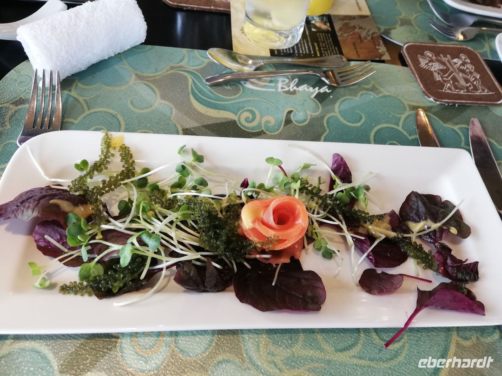 Das Essen ist wunderschön angerichtet und schmeckt auch wirklich sehr lecker.