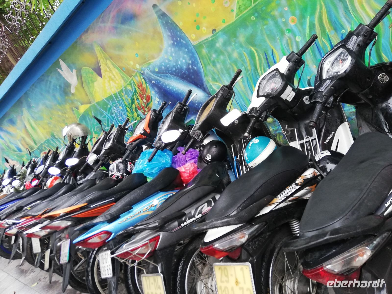 Wir bleiben kurz bei der Bank stehen und tauschen unsere Euros gegen den Vietnam Dongs – Währung –