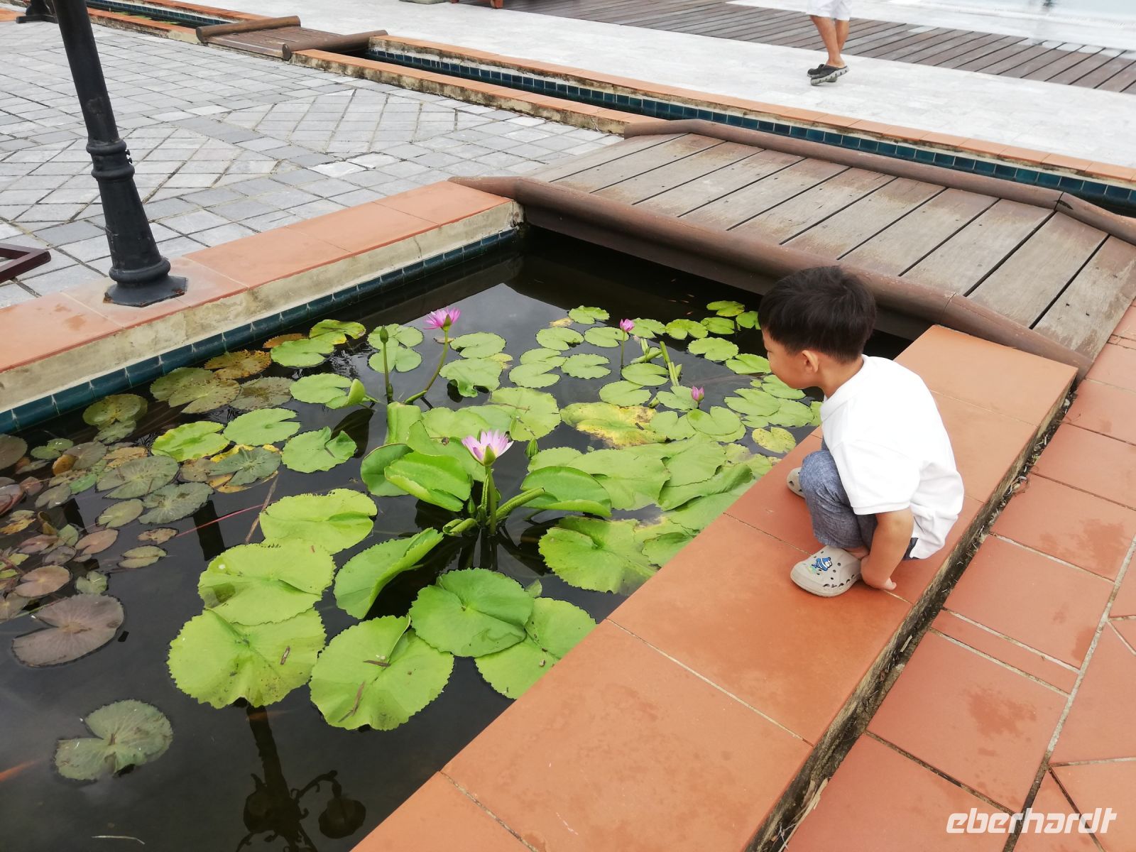 Wir warten zunächst vor dem Eingangstor, um Fotos zu machen. Wir betreten den ersten Hof und die gepflegten Gartenanlagen mit Teich und schönen Seerosen.