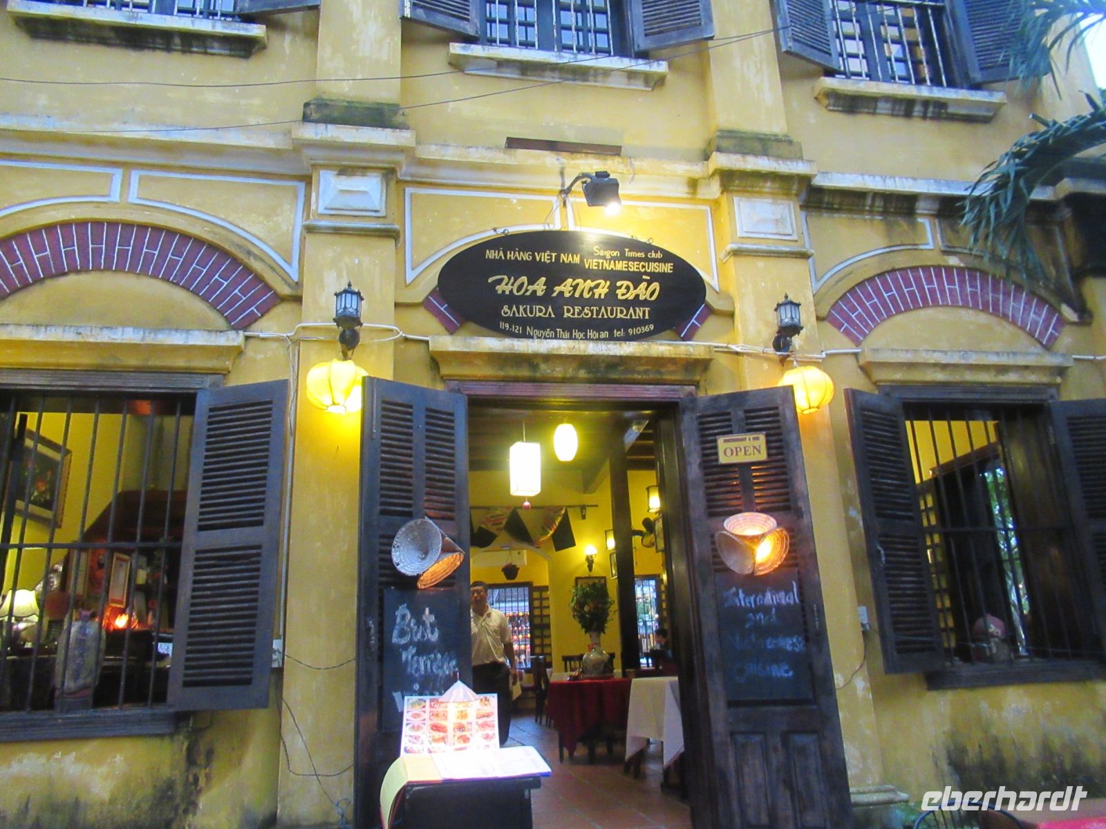 Wir finden ein Lokal und machen in der Kühle etwas Pause. Der Reiseleiter Hung und ich schauen uns in der Umgebung nach einem geeignetem Abendlokal. Letztendlich finde ich eine schöne Location in der Nähe des Flusses und reserviere die Plätze für heute Abend.
