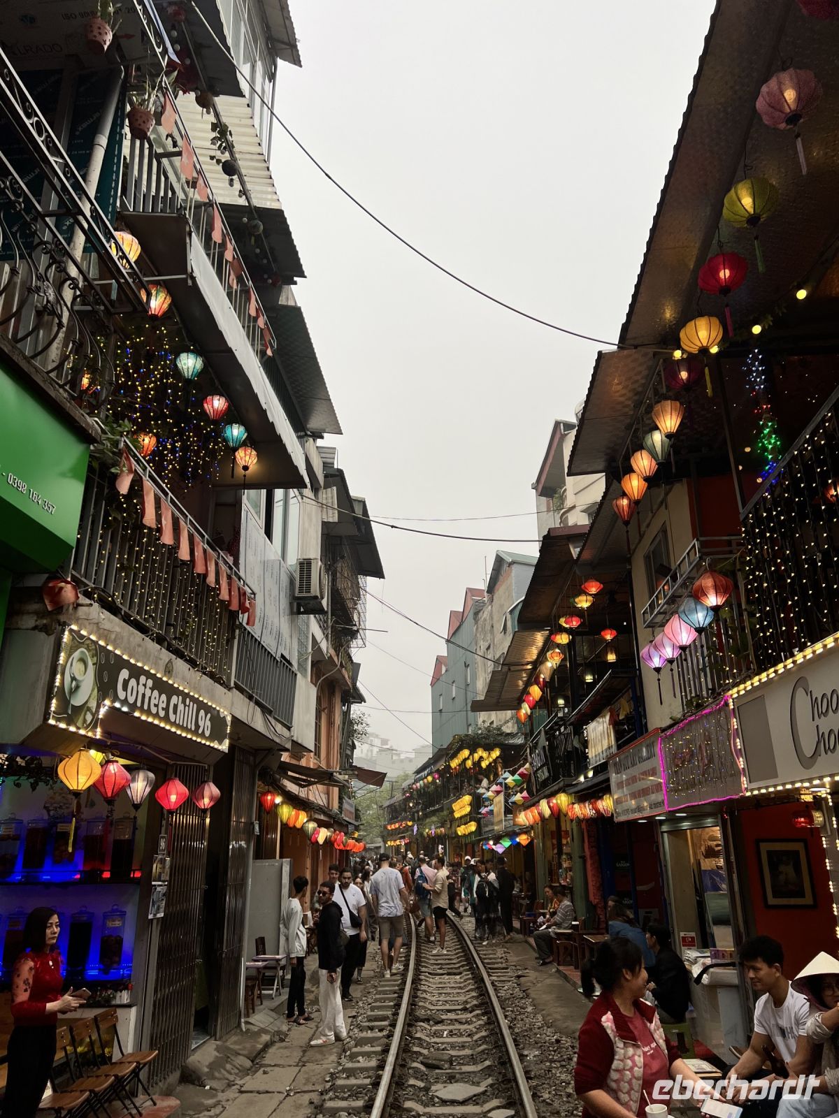Wir checkten in das Luxushotel Sofitel M Gallery ein und machten uns kurz frisch, bevor wir einen Stadtspaziergang durch die Altstadt unternahmen. Wir wechselten Geld und wurden sehr schnell Millionäre! Danach sind wir zu den berühmten Eisenbahnschienen von Hanoi gefahren und haben dort einen traditionellen Kaffee mit süßer Kondensmilch und einen vietnamesischen Eierkaffee getrunken. Nachdem wir die abenteuerliche Atmosphäre genossen haben, sind wir dann zum Willkommensdinner gefahren und ließen den ersten Tag in Vietnam mit leckeren Speisen und Getränken ausklingen.