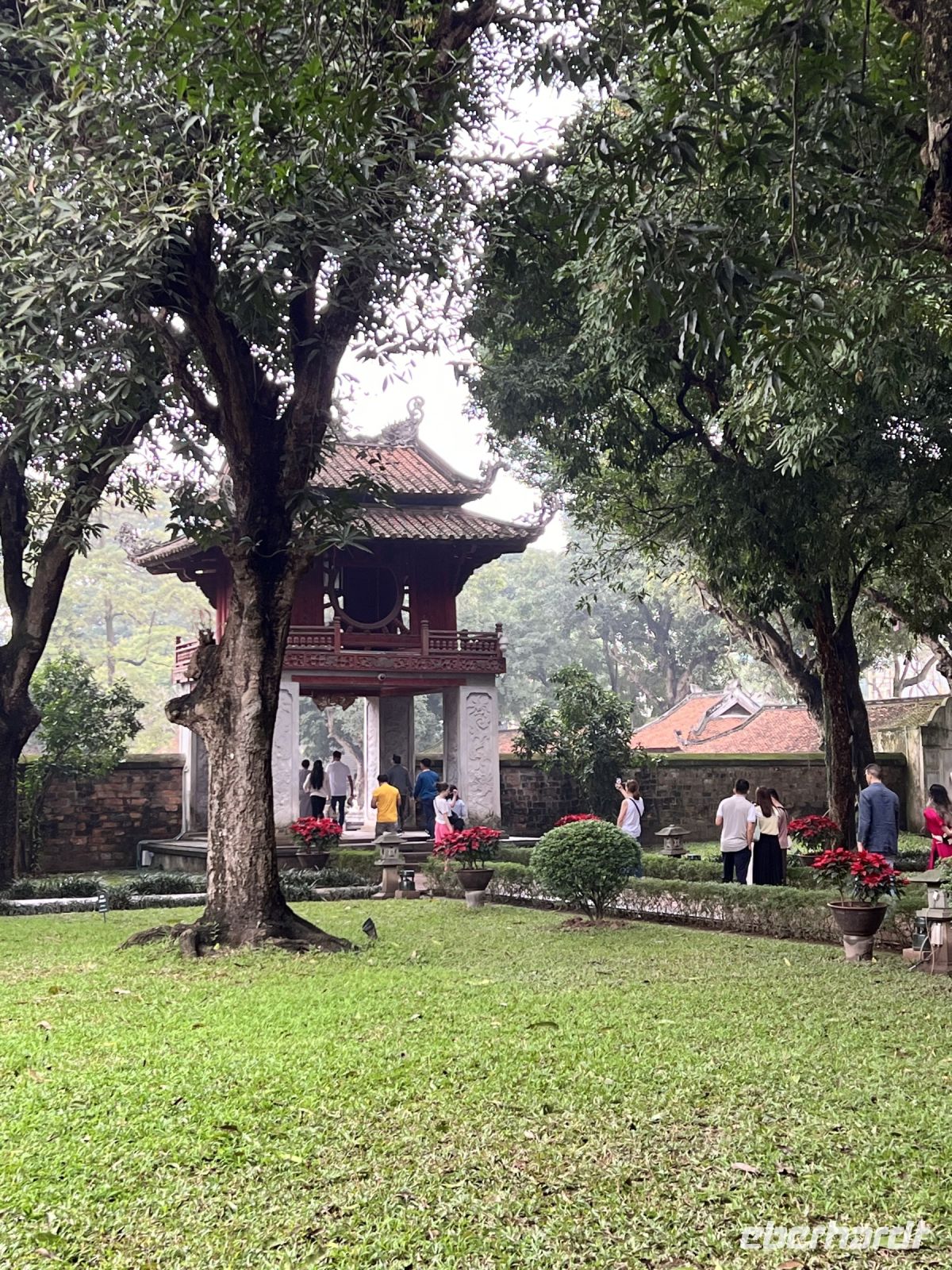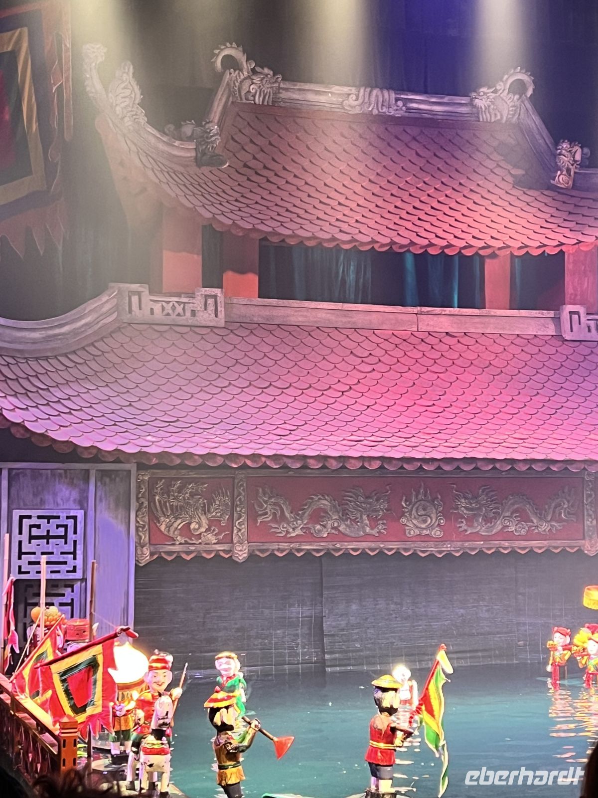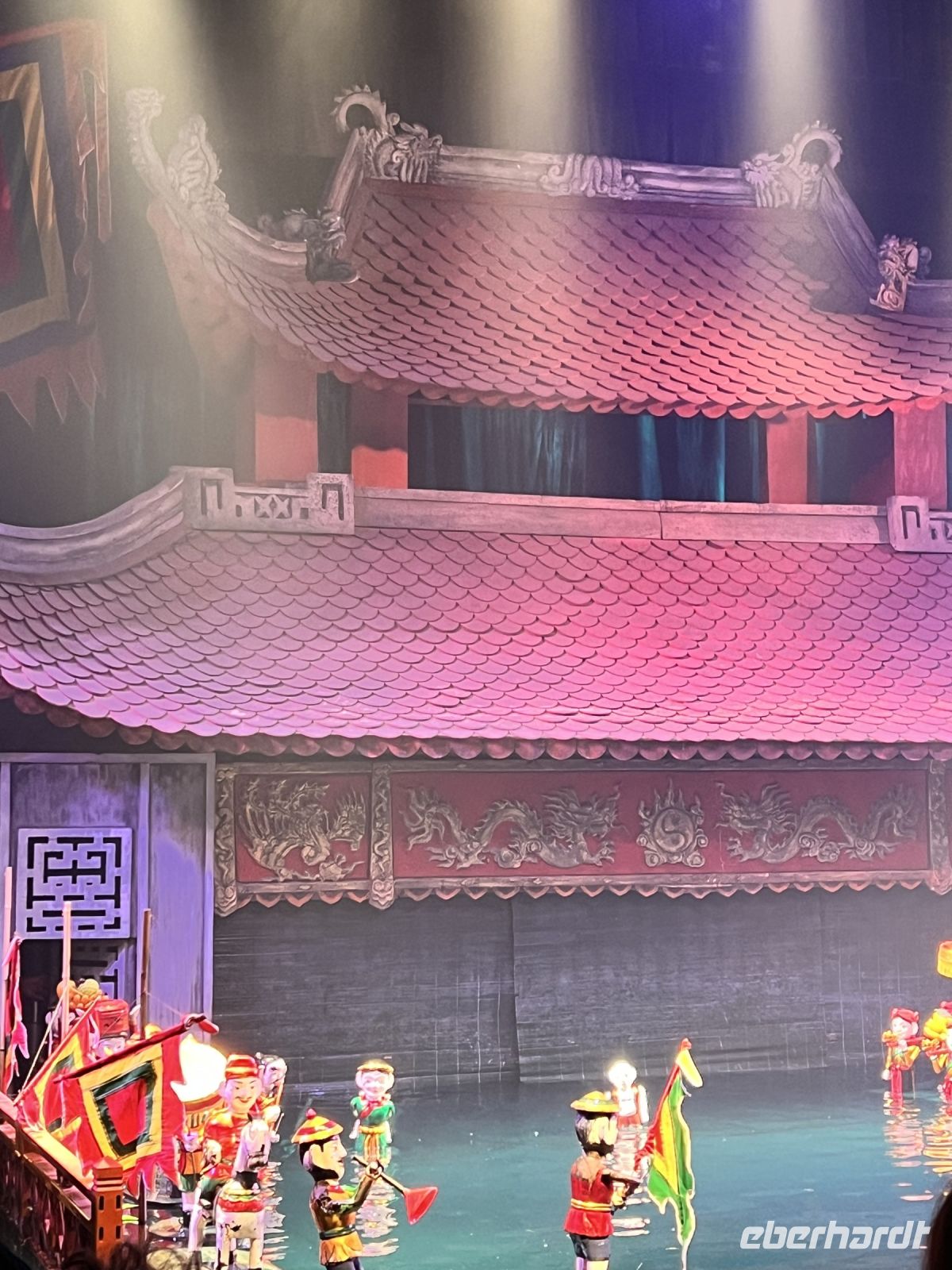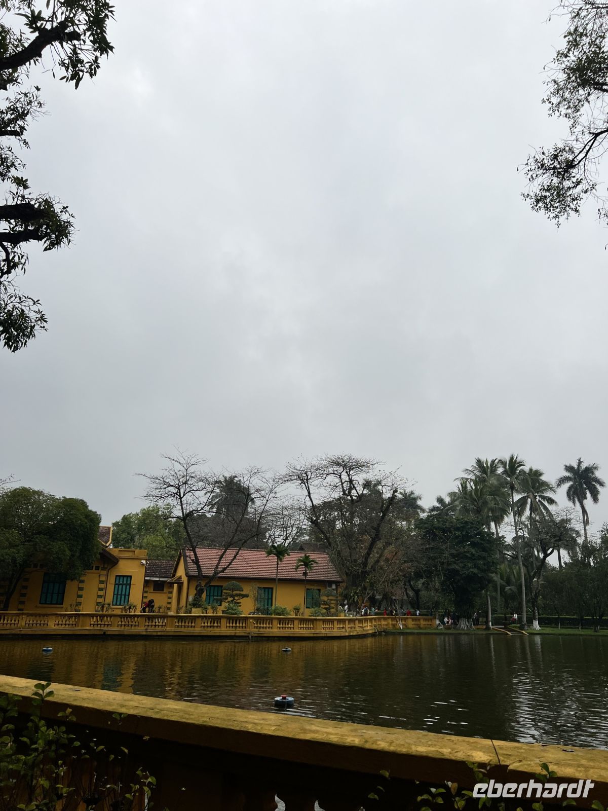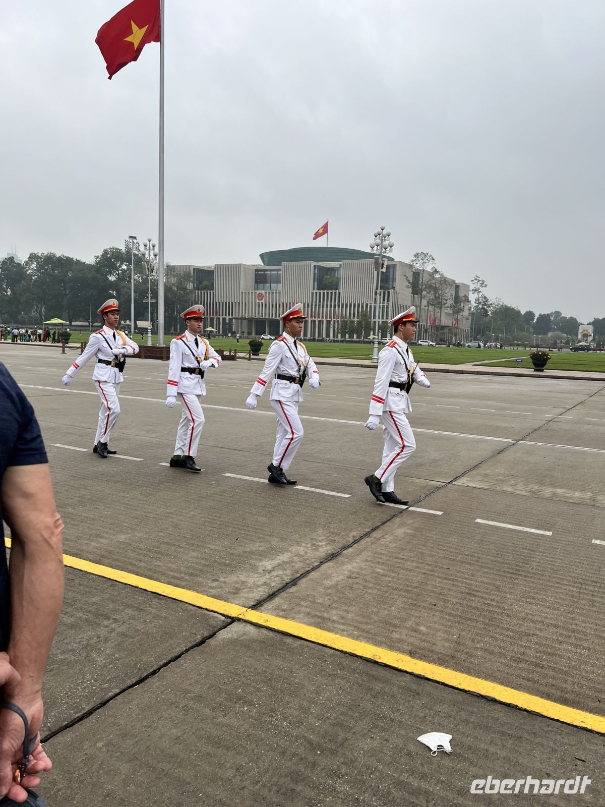 Wir begannen unsere Stadtführung gegen 08:30 Uhr, nach einem leckeren Frühstück. Wir besuchten zunächst das Ho Chi Minh Mausoleum mit dem Wohnhaus des ehemaligen Präsidenten (verstorben 1969) und die Eins-Säulen-Pagode. Aufgrund des riesigen Andrangs von Besuchern, koordinierten die Sicherheitskräfte den Besuch sehr streng und wir standen ca. 1 1/2 Stunden an, bis wir Onkel Ho sehen durften. Nach dem wir den Komplex besichtigt haben, fuhren wir zum Literaturtempel. Die Anlage ist ein konfuzianischer, als Vietnamesische Universität erbauter Komplex im Jahre 1070. Dabei stießen wir auf viele Altäre, wie unter anderem wird dort der Philosoph Konfuzius (551 v. Chr. – 479 v. Chr.) verehrt. Wir genossen dann am Rand der Straße, eine schmackhafte Pho-Suppe oder schmackhafte gebratene Pho-Nudeln. Gestärkt fuhren wir dann weiter zum Ethnologischen Museum - das Museum, dass 1997 erbaut wurde, steht auf der Rangliste aller Museen auf Platz 25 der attraktivsten Museen auf der ganzen Welt und zeigt die einzigartige Geschichte der ethnischen Minderheiten aus ganz Vietnam. Dort entdeckten wir die Kultur, das Leben und den Wohnstil der ethnischen Minderheiten von beispielweise den Weißen Thais. Als weiteren Programmpunkt, fuhren wir mit einer traditionellen Rikscha durch die belebten Straßen der Altstadt Hanois, wodurch wir den trubel und das Chaos der Straßen der Hauptstadt erlebten. Unser Ziel war es in der nähe des Wasserpuppentheaters auszusteigen und dann einen kleinen Rundgang durch die Essensstraße von Hanoi zu laufen, bis die Vorstellung begann. Gegen 18:30 Uhr genossen wir die Vorstellung Thang Long Wasserpuppentheater. Der Ursprung des Theaters liegt im 11. Jahrhundert und entstand in den ländlichen Gebieten Vietnams.