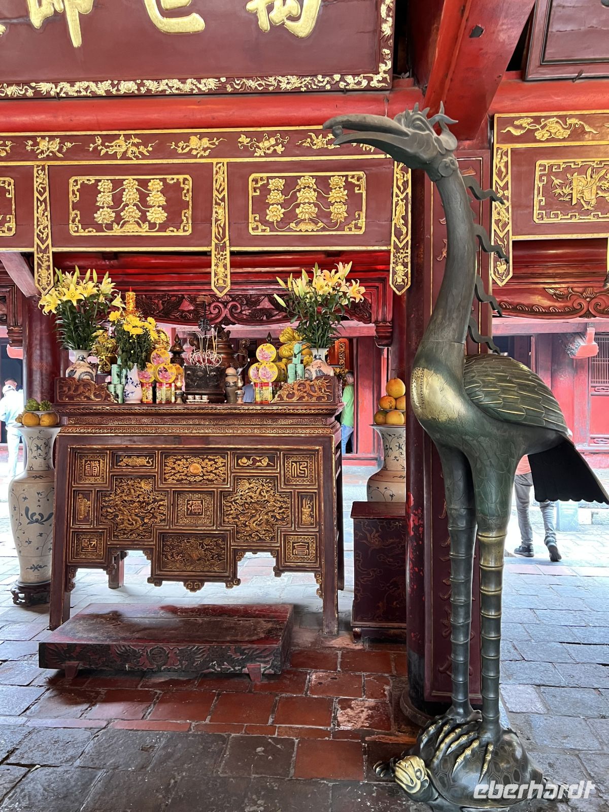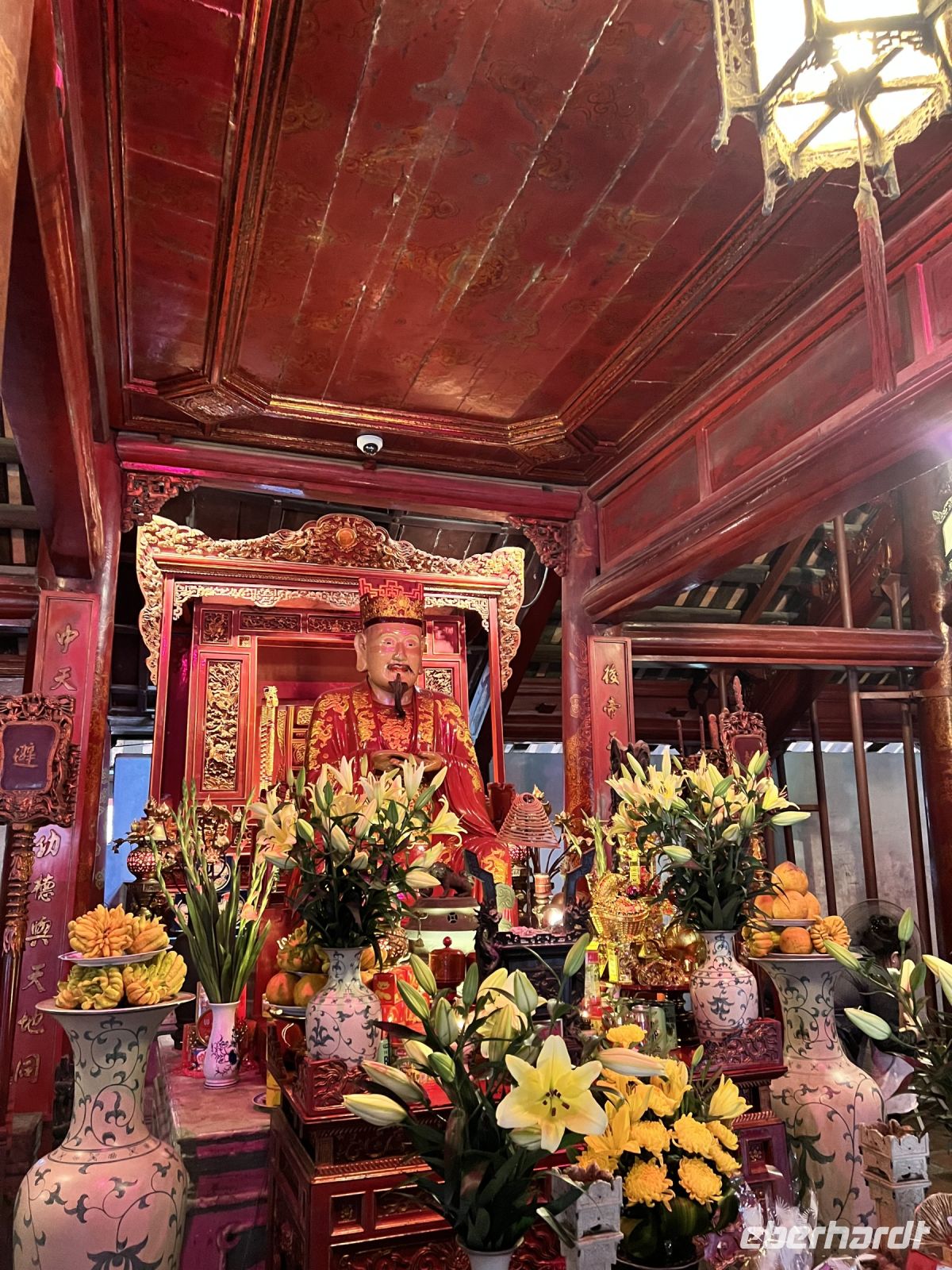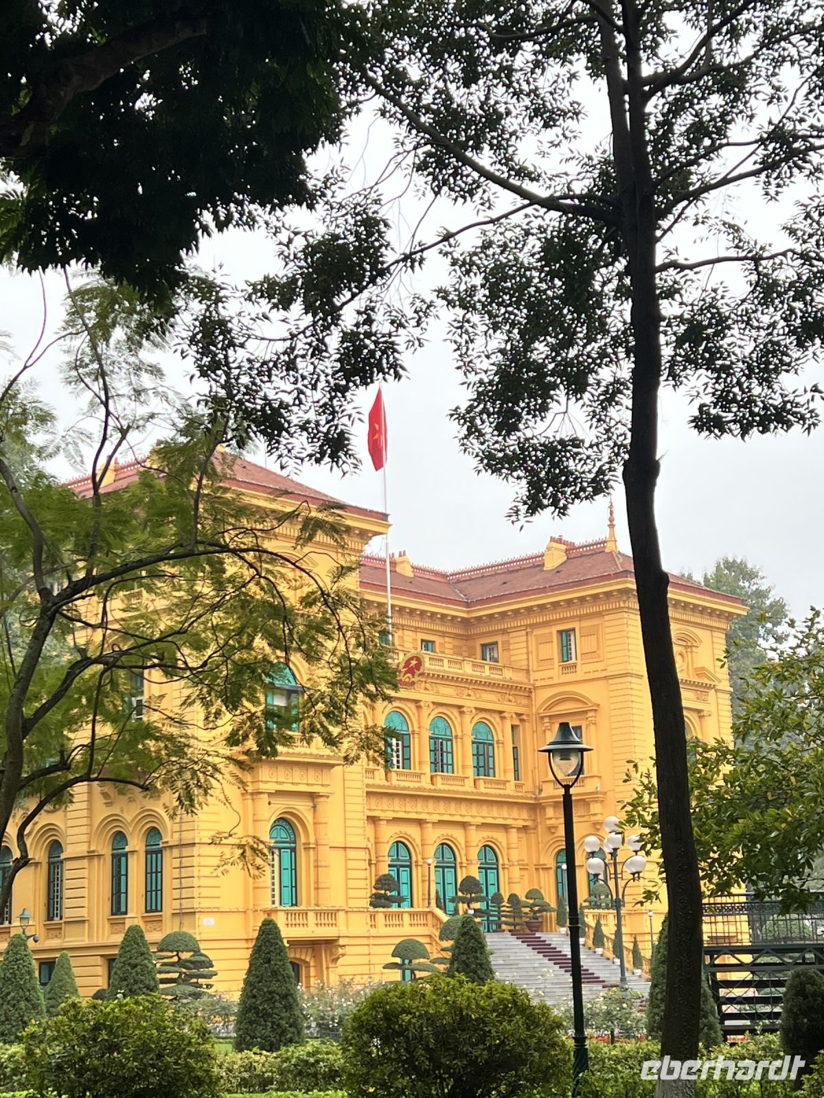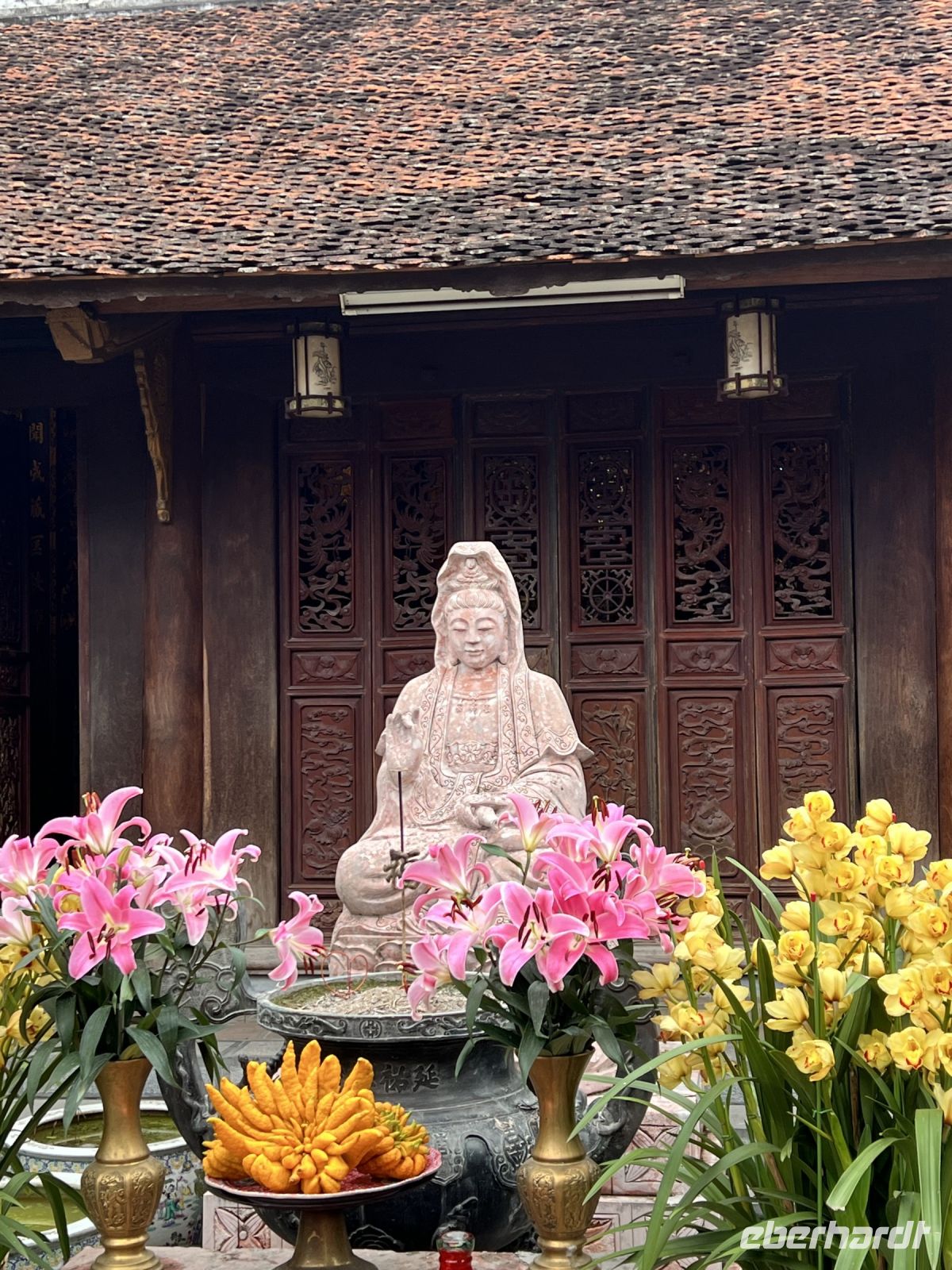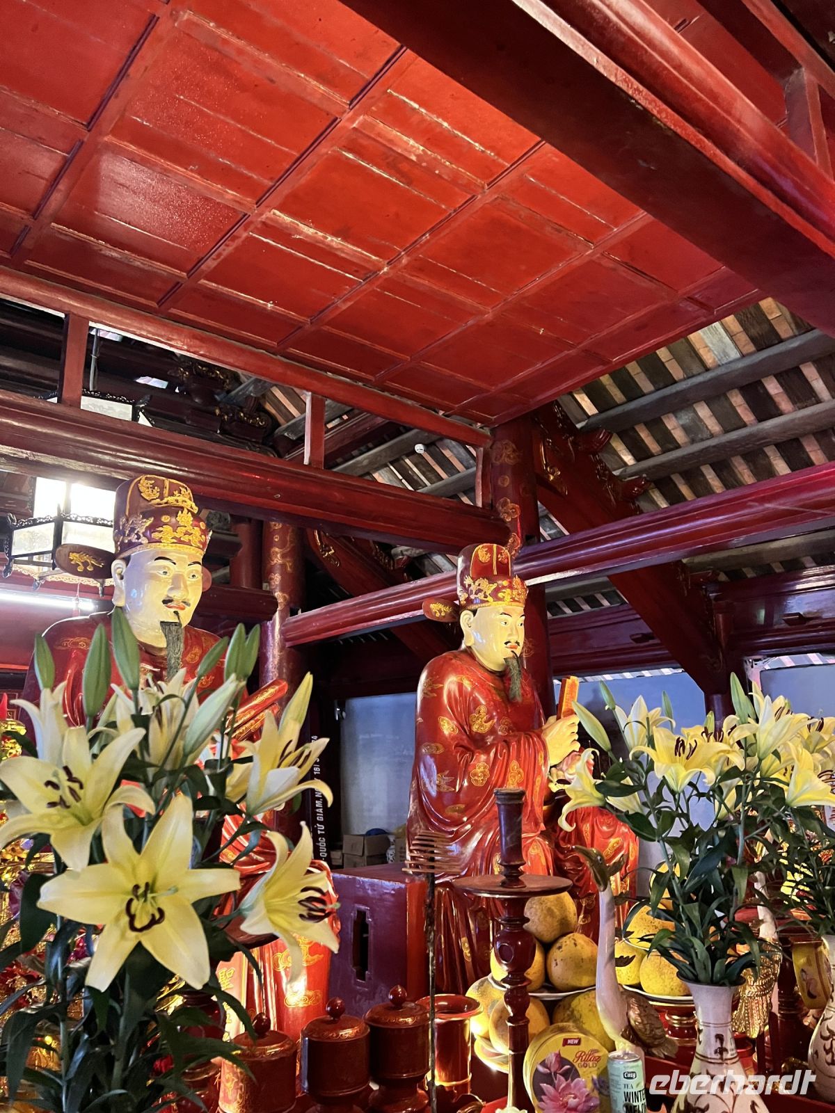 Wir begannen unsere Stadtführung gegen 08:30 Uhr, nach einem leckeren Frühstück. Wir besuchten zunächst das Ho Chi Minh Mausoleum mit dem Wohnhaus des ehemaligen Präsidenten (verstorben 1969) und die Eins-Säulen-Pagode. Aufgrund des riesigen Andrangs von Besuchern, koordinierten die Sicherheitskräfte den Besuch sehr streng und wir standen ca. 1 1/2 Stunden an, bis wir Onkel Ho sehen durften. Nach dem wir den Komplex besichtigt haben, fuhren wir zum Literaturtempel. Die Anlage ist ein konfuzianischer, als Vietnamesische Universität erbauter Komplex im Jahre 1070. Dabei stießen wir auf viele Altäre, wie unter anderem wird dort der Philosoph Konfuzius (551 v. Chr. – 479 v. Chr.) verehrt. Wir genossen dann am Rand der Straße, eine schmackhafte Pho-Suppe oder schmackhafte gebratene Pho-Nudeln. Gestärkt fuhren wir dann weiter zum Ethnologischen Museum - das Museum, dass 1997 erbaut wurde, steht auf der Rangliste aller Museen auf Platz 25 der attraktivsten Museen auf der ganzen Welt und zeigt die einzigartige Geschichte der ethnischen Minderheiten aus ganz Vietnam. Dort entdeckten wir die Kultur, das Leben und den Wohnstil der ethnischen Minderheiten von beispielweise den Weißen Thais. Als weiteren Programmpunkt, fuhren wir mit einer traditionellen Rikscha durch die belebten Straßen der Altstadt Hanois, wodurch wir den trubel und das Chaos der Straßen der Hauptstadt erlebten. Unser Ziel war es in der nähe des Wasserpuppentheaters auszusteigen und dann einen kleinen Rundgang durch die Essensstraße von Hanoi zu laufen, bis die Vorstellung begann. Gegen 18:30 Uhr genossen wir die Vorstellung Thang Long Wasserpuppentheater. Der Ursprung des Theaters liegt im 11. Jahrhundert und entstand in den ländlichen Gebieten Vietnams.