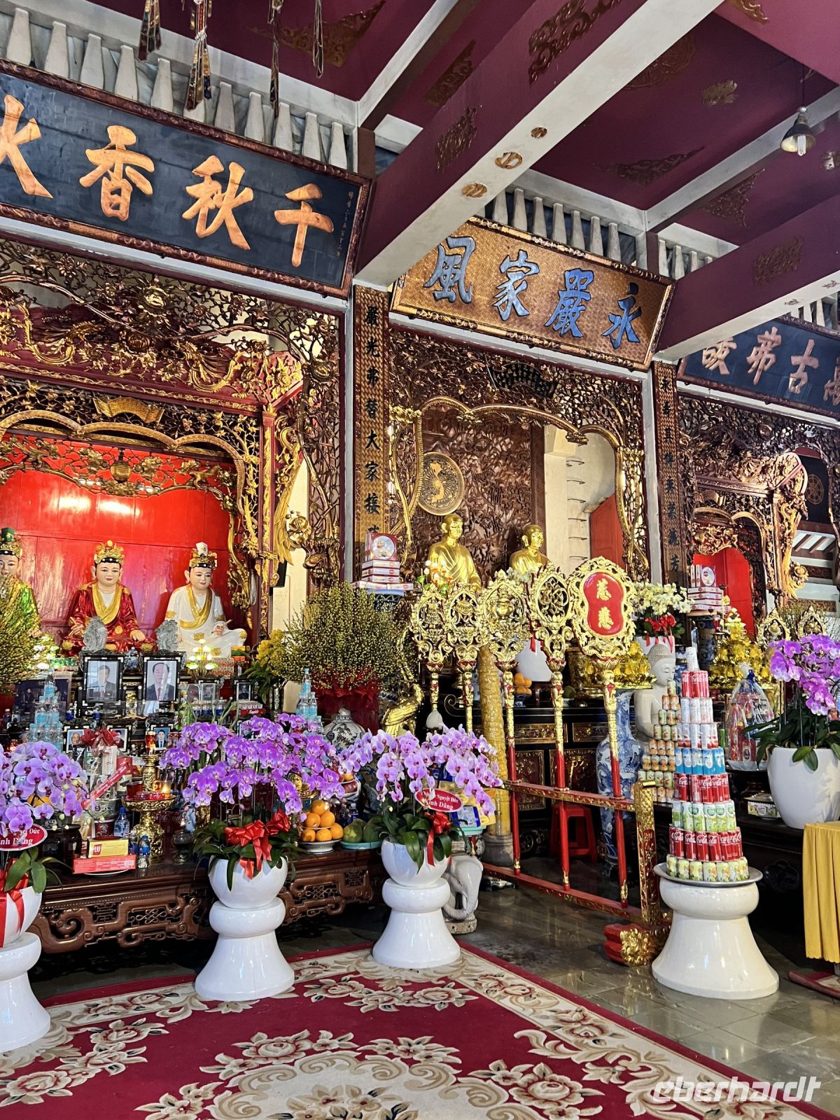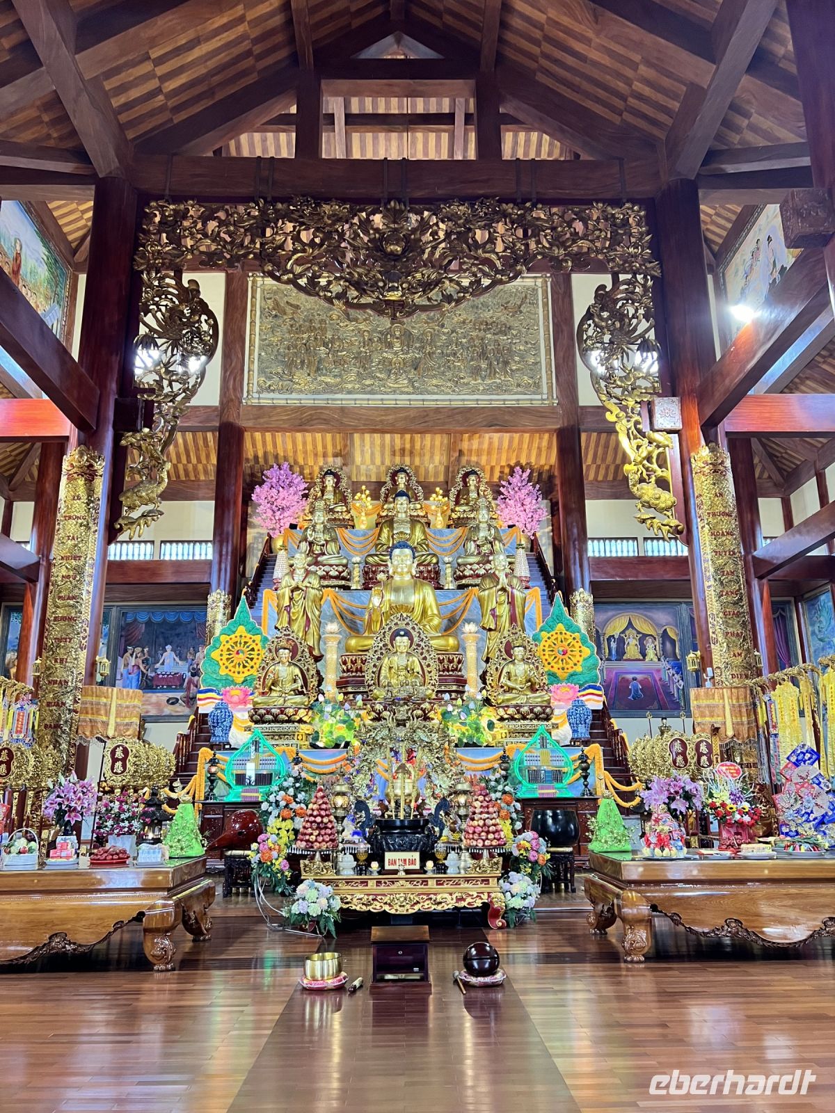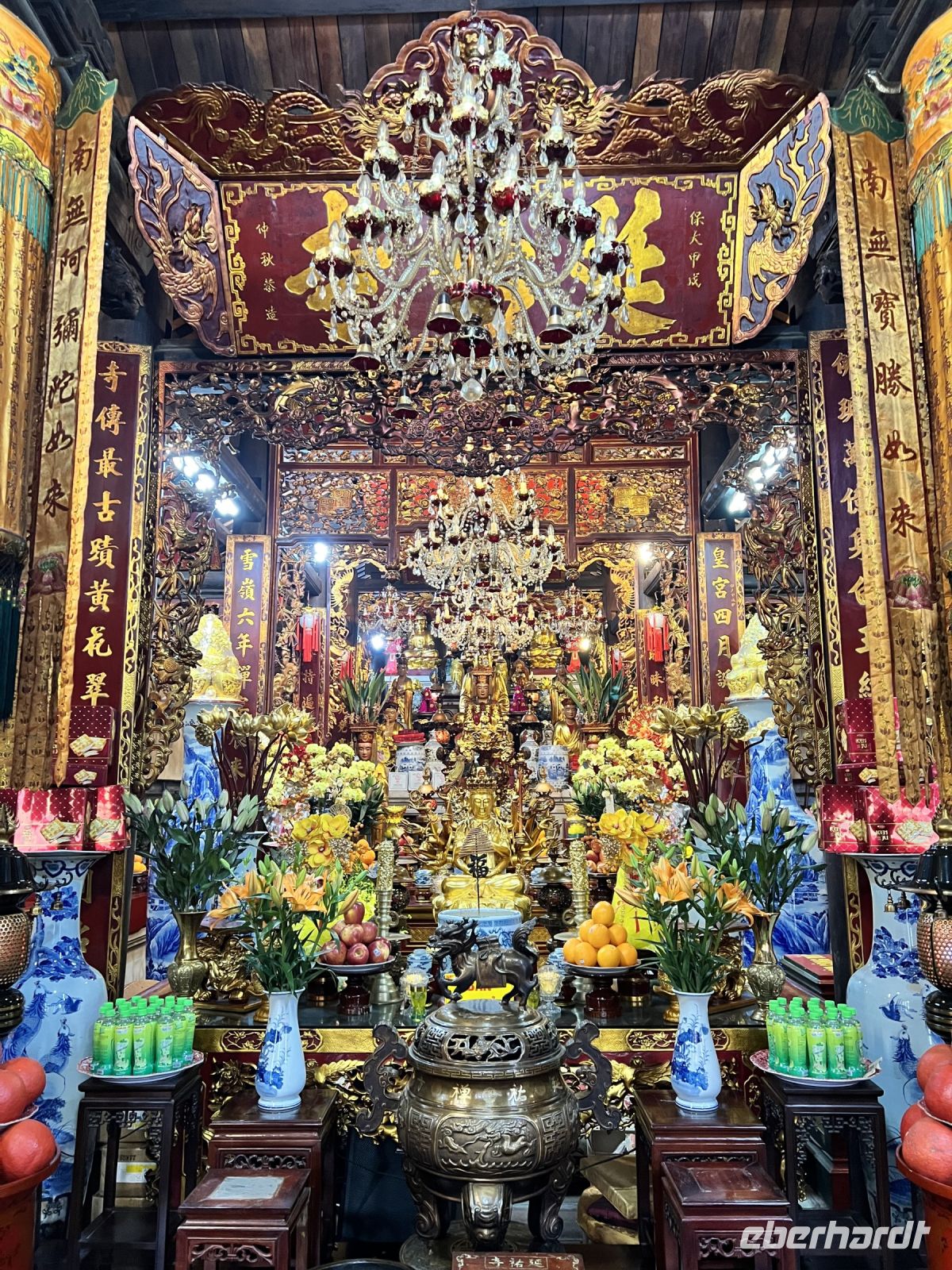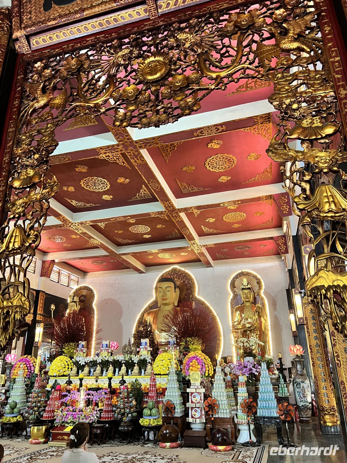 Nach einer Mittagspause spazierten wir noch durch den Kaiserkomplex, bis wir den Ausgang erreichten und weiter zum Mausoleum von Khai Dinh fuhren. Der Kaiser regierte zwischen 1916 und 1925 und liegt am Hang am Chau Chu Berg. Die Bauzeit betrug 11 Jahre und der Komplex besteht aus reinem Beton.