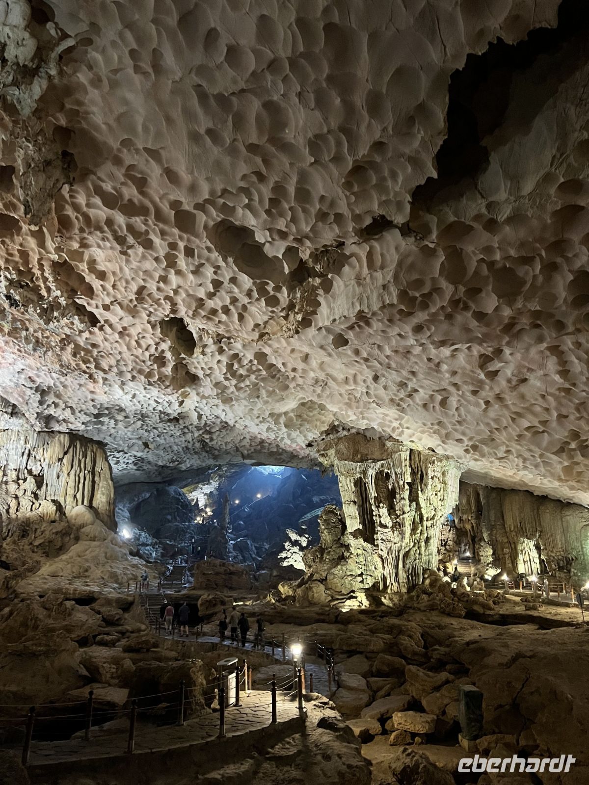 Heute wachten wir mitten in der Ha Long Bucht auf und unser Tag begann mit einem leichtem Frühstück. Nach dem wir ein Kaffee, Tee und ein Crossaint gegessen haben, ging es zur Überraschungshöhle. Diese befindet sich auf der Insel Bo Hon und ist von schattigen Bäumen gesäumt. Die Höhle verfügt über drei Kammern und die äußere wird oft als Wartezimmer genannt. Nach dem wir die Höhle entdeckt haben, ging es zurück an Board unsere Schiffes und wir bekamen ein schmackhaften Brunch - währenddessen fuhren wir zurück ans Land. Normalerweise stand ein Rundflug über der Ha Long Bucht mit einem Wasserflugzeug noch an. Aufgrund des Wetters, konnten wir diesen nicht durchführen und sind stattdessen zu einer besonders Pagode gefahren. Die Ba Vang Pagode ist das größte buddhistische Zentrum Nordvietnams und ist für die ruhige Atmosphäre und faszinierende Architektur bekannt. Dieser Komplex liegt eingebettet im Berg Thanh Dang, auf einer Höhe von 340 Metern über den Meeresspiegel. Das buddhistische Zentrum liegt in der Provinz Quang Ninh, in der Stadt Uong Bi. Im Anschluss sind wir dann wieder in Richtung Hanoi gefahren und passierten ein Reisfeld - dort lernten wir die Arbeitsweise und Vorgehensweise des Reisanbau kennen. Nach der Mittagspause haben wir dann nach wenigen Stunden den Flughafen Hanoi erreicht. Wir checkten ein und flogen von Hanoi nach Zentralvietnam, in die viertgrößte Stadt Vietnams: Da Nang. Wir wurden entsprechend von unserem neuen örtlichen Reiseleiter herzlich empfangen und zum Strandhotel in Hoi An transferiert. Somit endete der Tag Nummer 5.